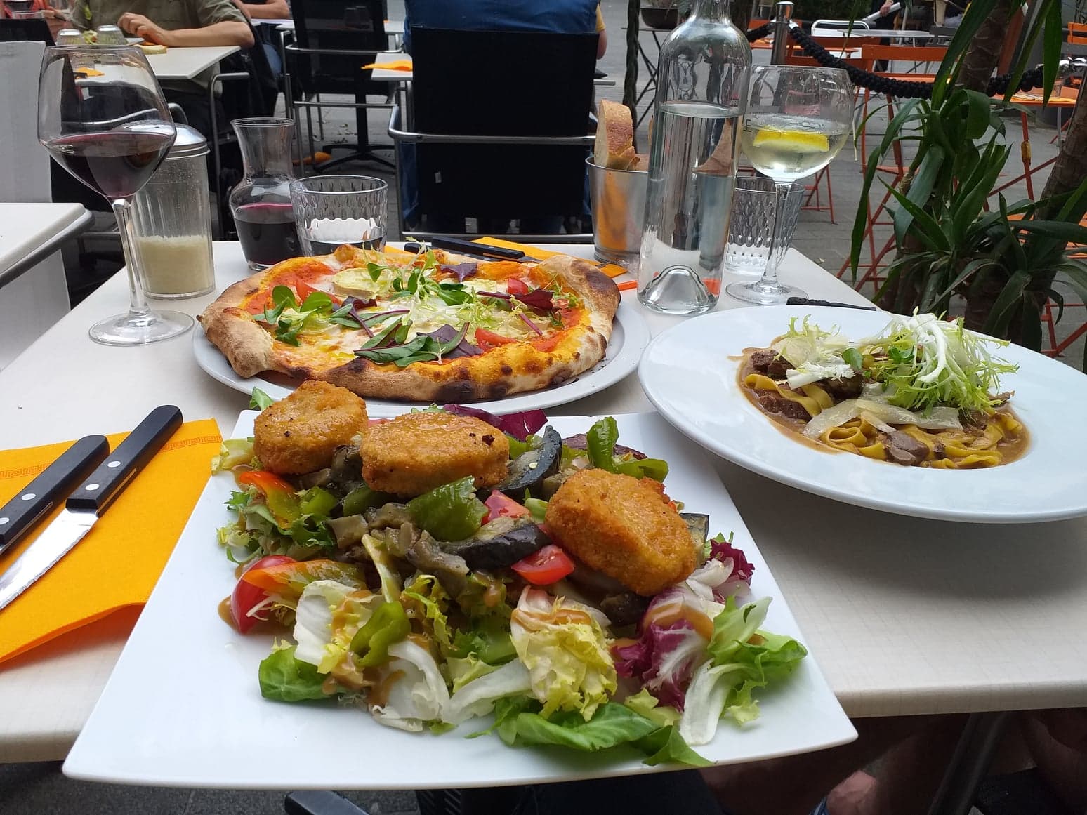 On était 4, dont un enfant. Le serveur, très prévenant, a demandé si on voulait le nourriture de la fille d'abord (elle était affamée). Sa pizza est venue bien avant les autres, ce qu'elle a beaucoup apprécié! Sinon on a commandé des pizzas et des pâtes, toutes très bonnes!