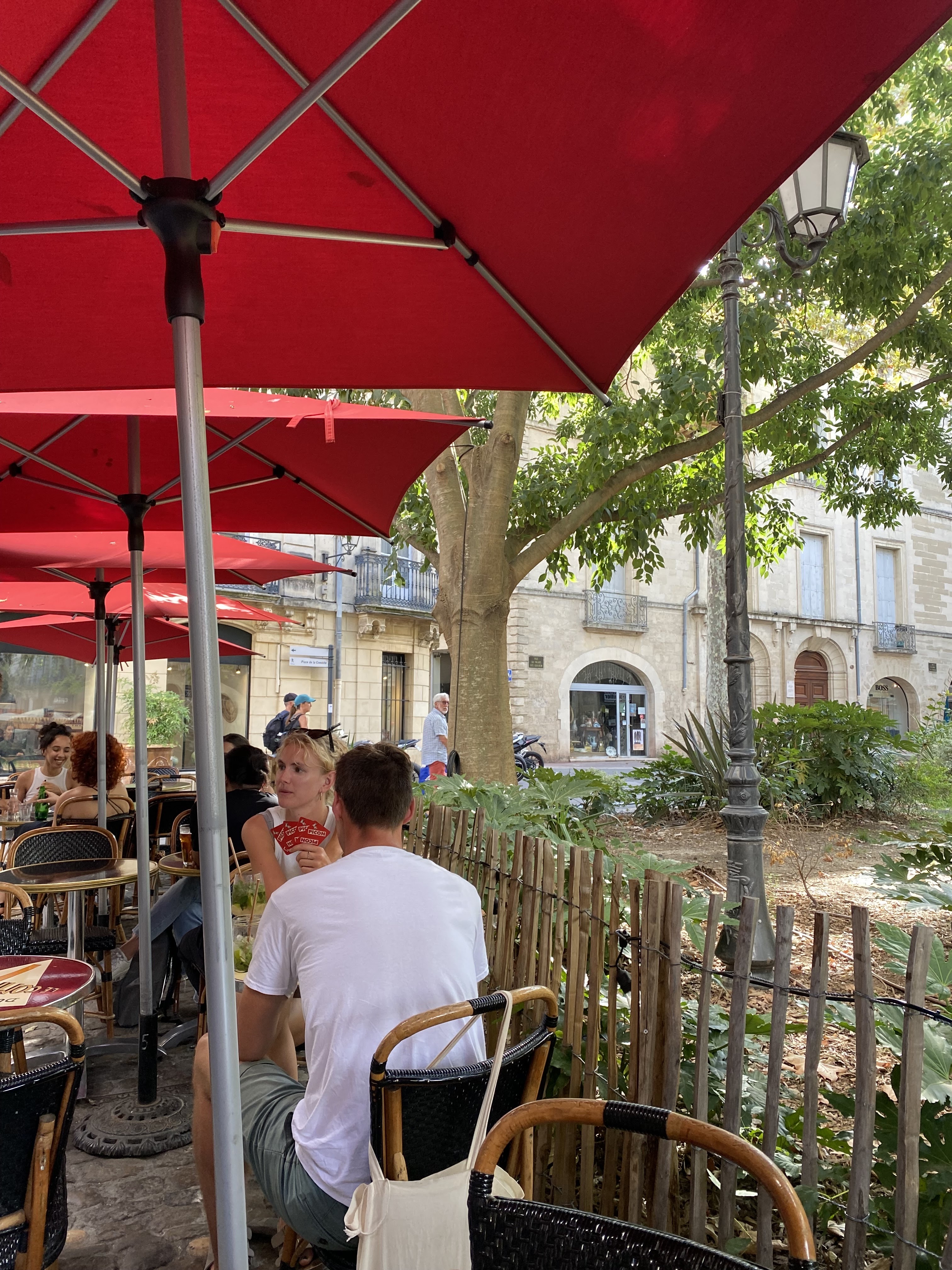 On y est bien en terrasse avec un emplacement privilégié place de la Canourgue. On se sent on calme en retrait des grands axes piétons Montpellierains...