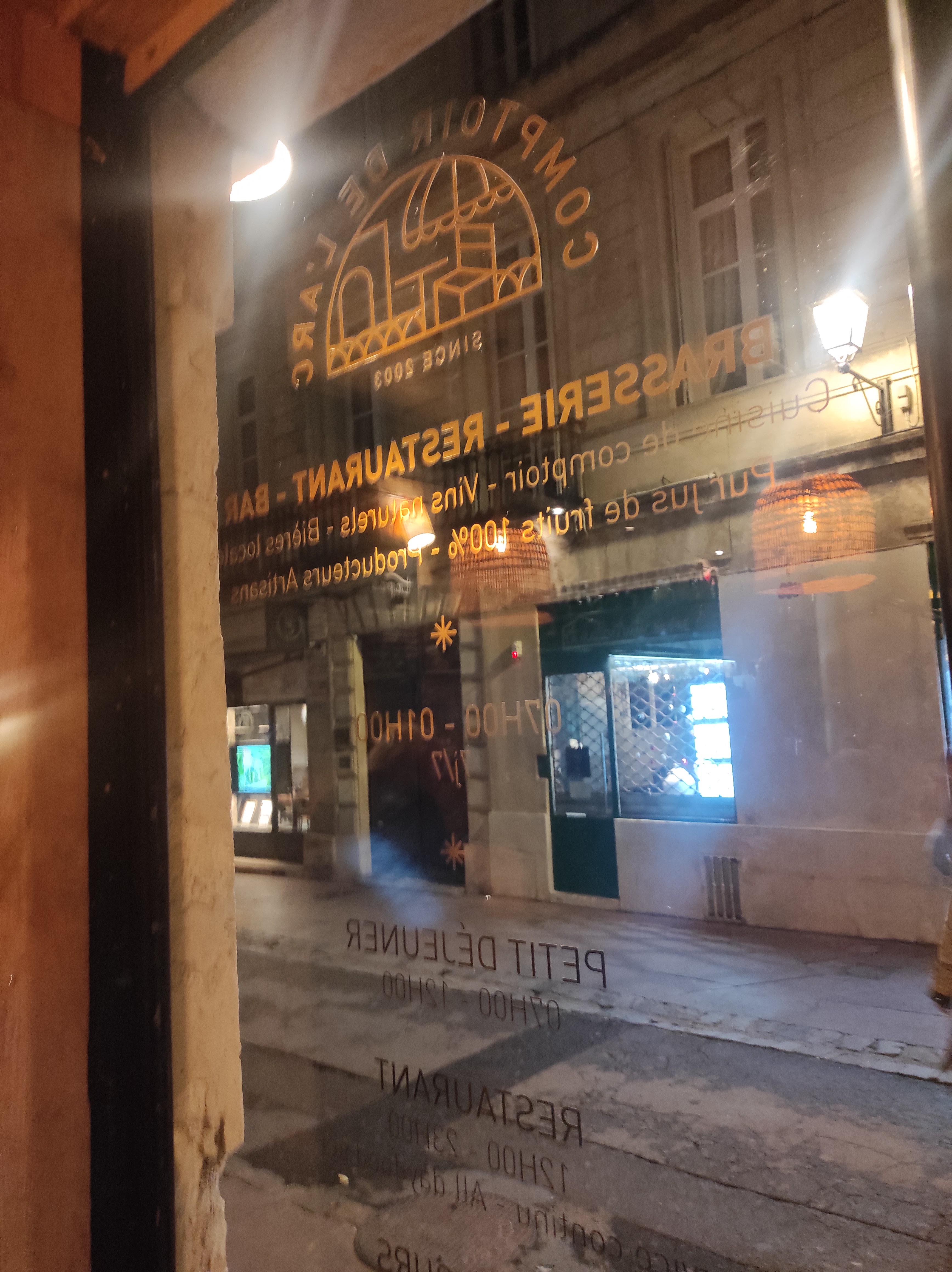 Ce que j’apprécie le plus : c’est l’ambiance « populaire, simple et sans chichi » d’un comptoir qui aurait pu tomber dans une démarche « bourgeoise ou bobo » pour augmenter les prix. Au contraire, notre serveuse a montré de la personnalité, à été pro et précise. Du côté de l’assiette, c’est du même acabi. Pas de chichi mais de l’application, portions plutôt généreuses. Les saveurs sont améliorables mais simples et assez goûteuses. Ah et puis la place Canourgue… comment s’en lasser ?