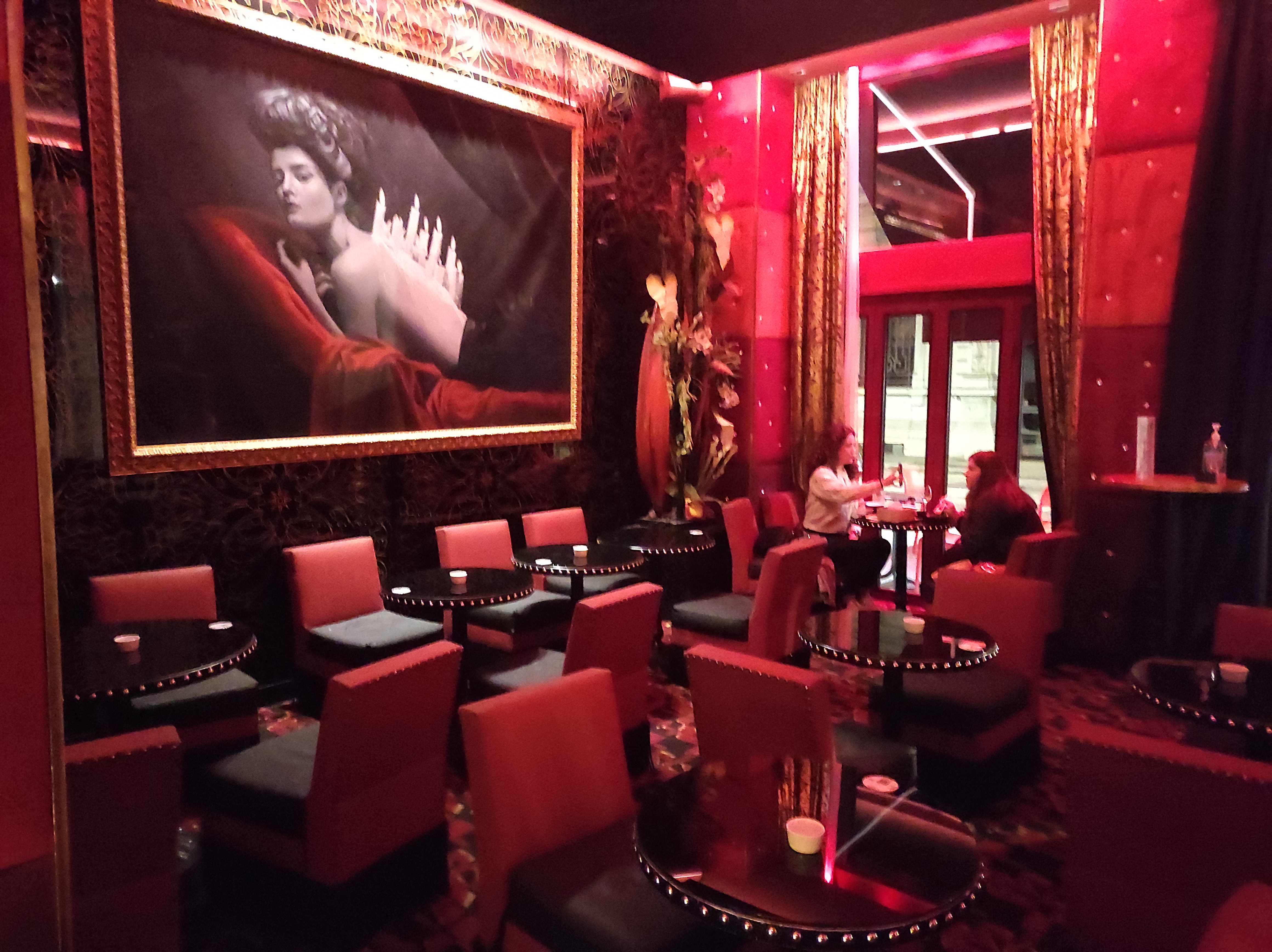 Juste un mot : j'adore 💕, malgré le fait que nous ayons pris un verre en terrasse, l'intérieur est juste magnifique ! Ambiance chaude, de rouge très théâtre, cosy, on se sent bien, je rêviendrai c'est sur ! Personnel extrêmement sympathique, aux petits soins, en plus ils sont à votre disposition jusqu'à 3h du matin