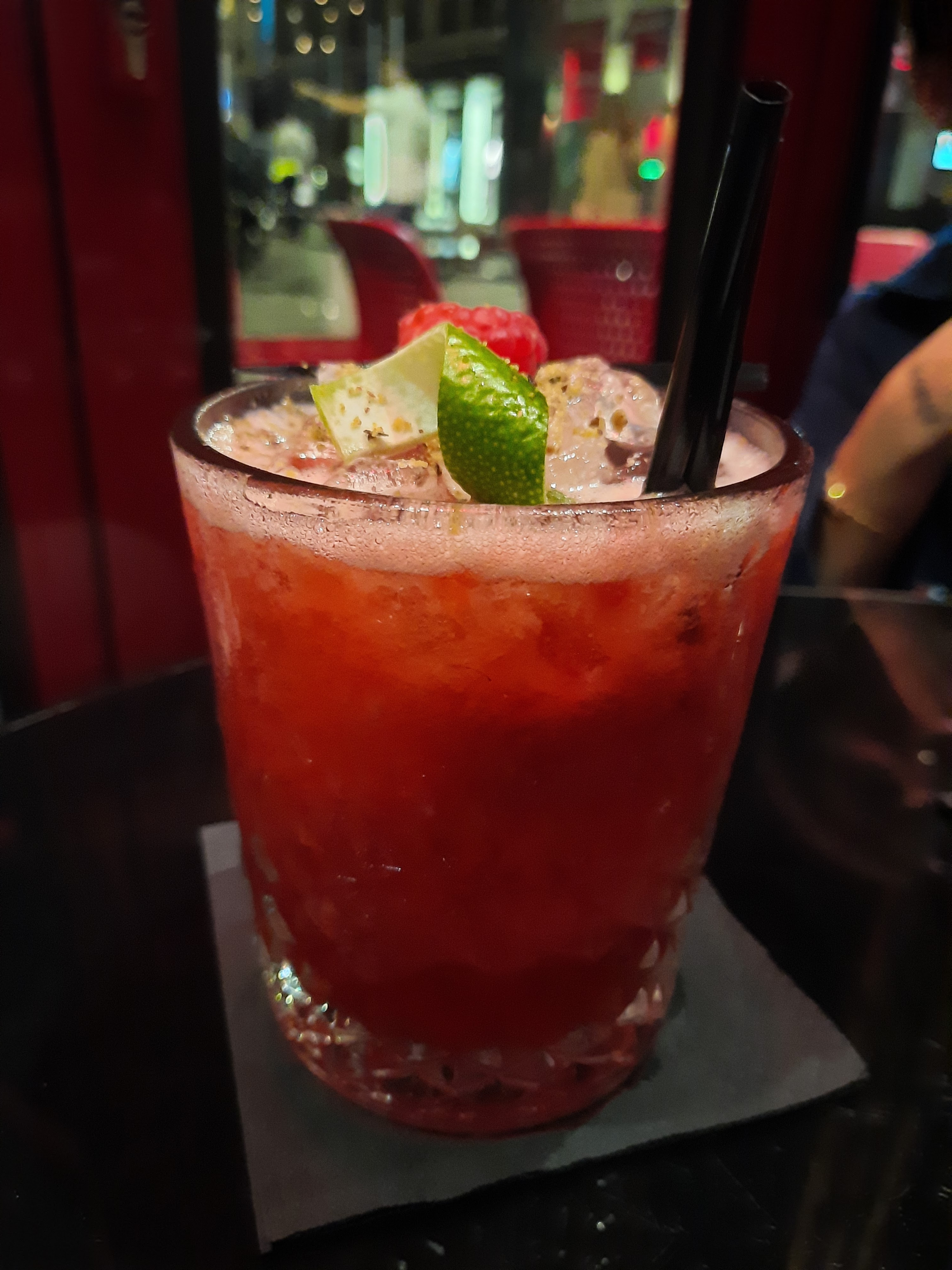 Bons cocktails. Plus bar à tapas en bonne quantité.Tables un peu petites. Faut aimer le rouge !