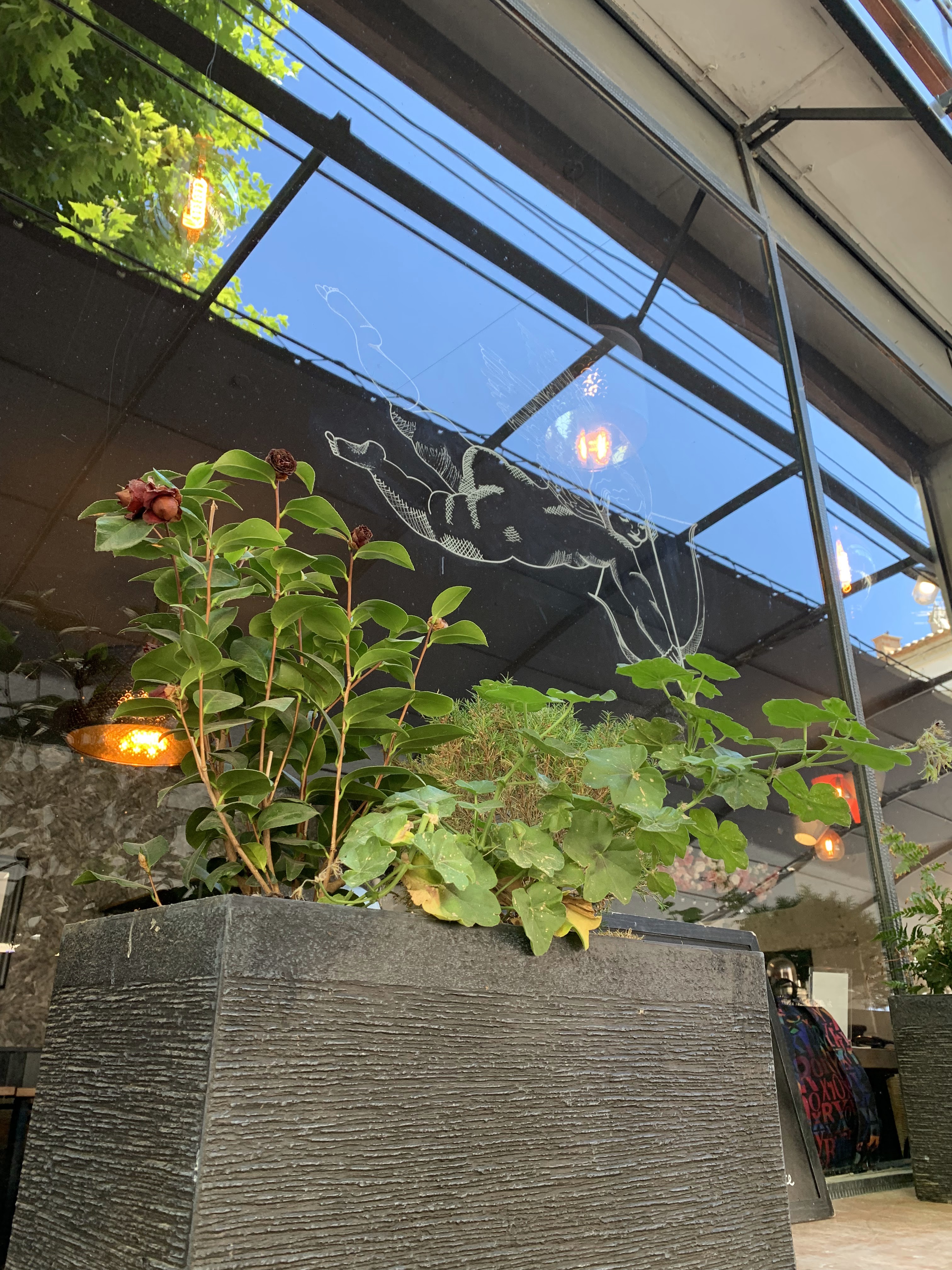 salle intérieure très jolie Très déçus par l assiette, en quantité (très peu) et le prix (très cher, nous avions pris tomates anciennes burrata 19 e l assiette et un dessert 8 e chaque dessert )