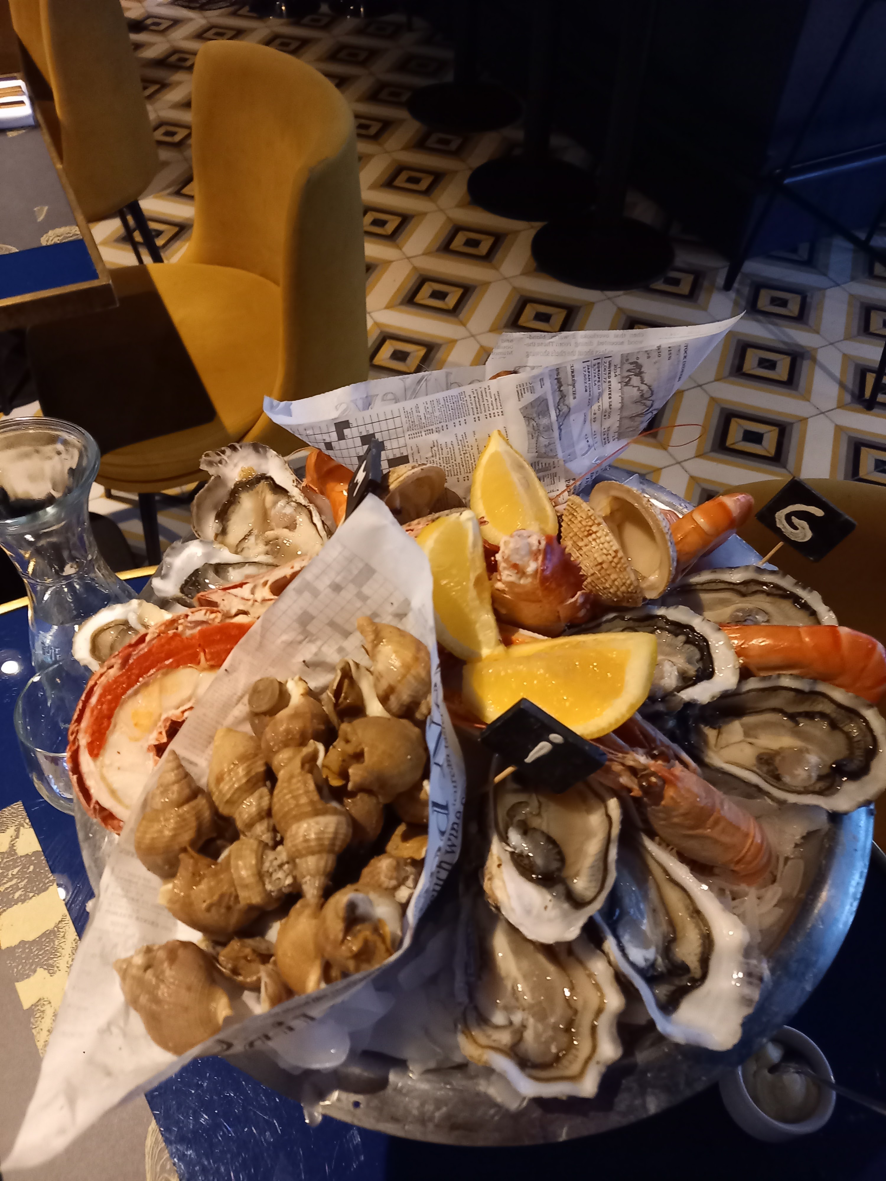 Plateau de fruits de mer copieux et frais...mais cher... Cadre sympa. Serveuse agréable.