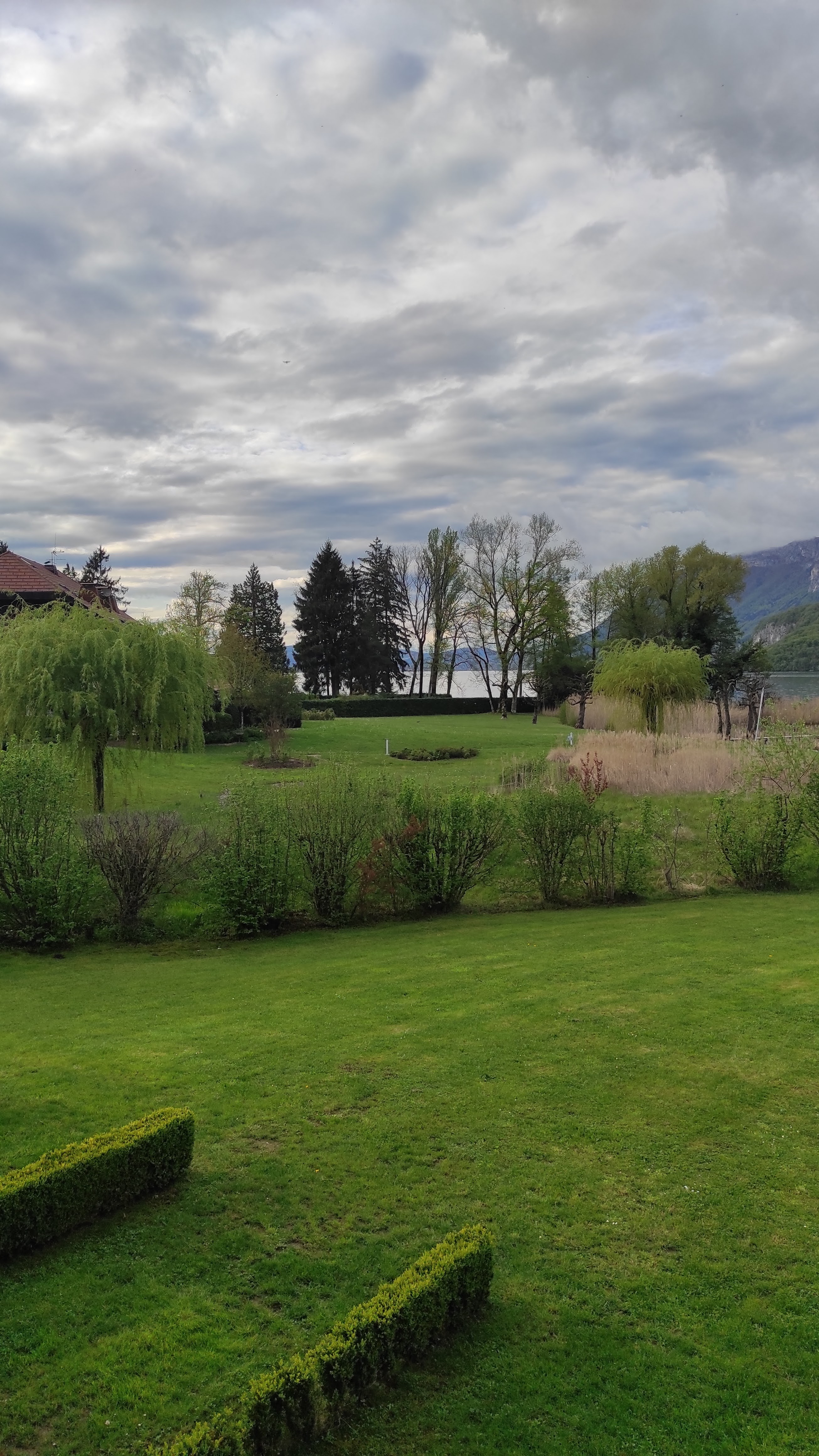 Vue magnifique sur lac et montagne, jardin reposant. Dîner excellent, à faire absolument.