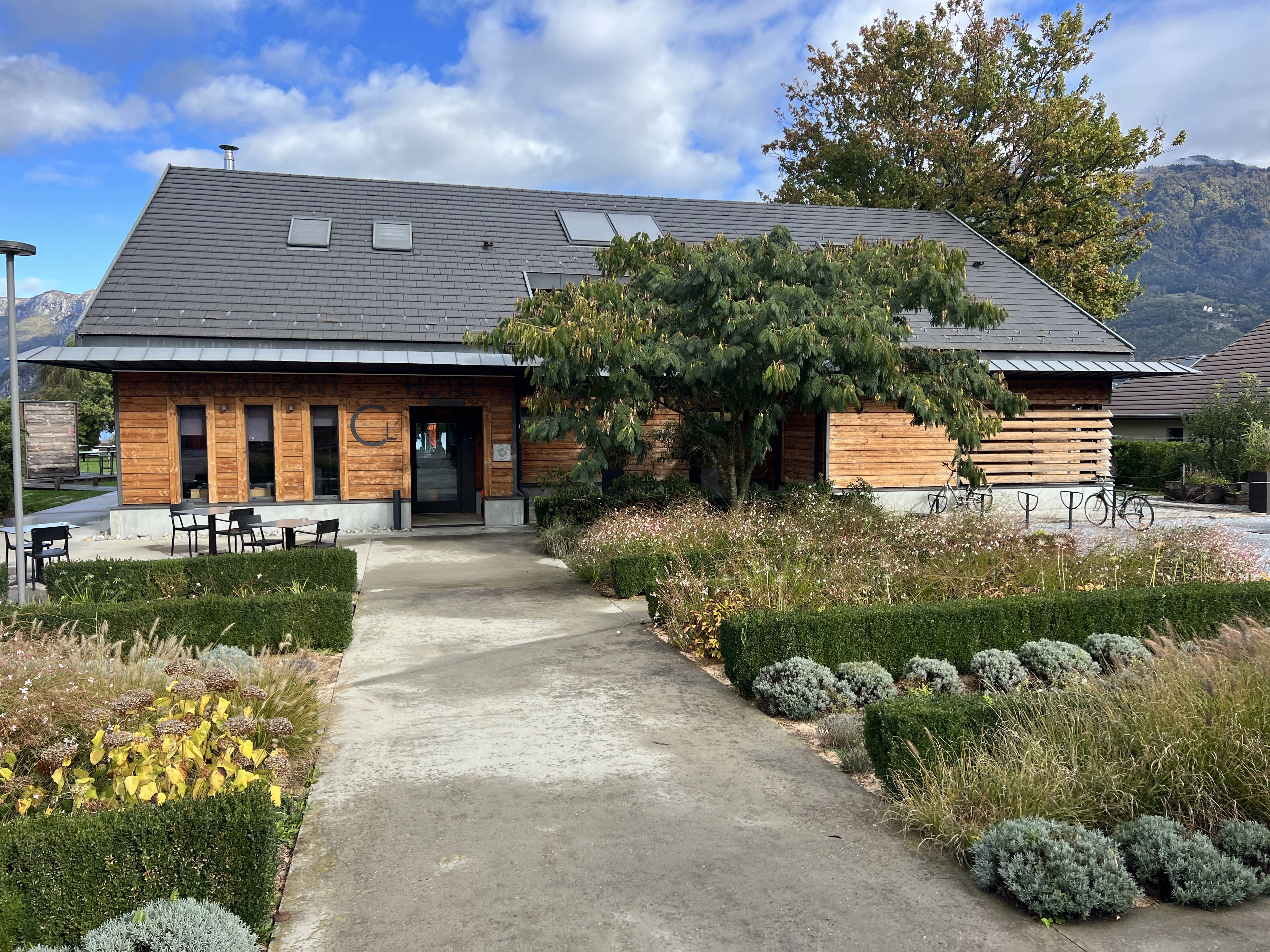Beau restaurant moderne dans un emplacement privilégié au bord du lac d'Annecy ! Nourriture délicieuse!