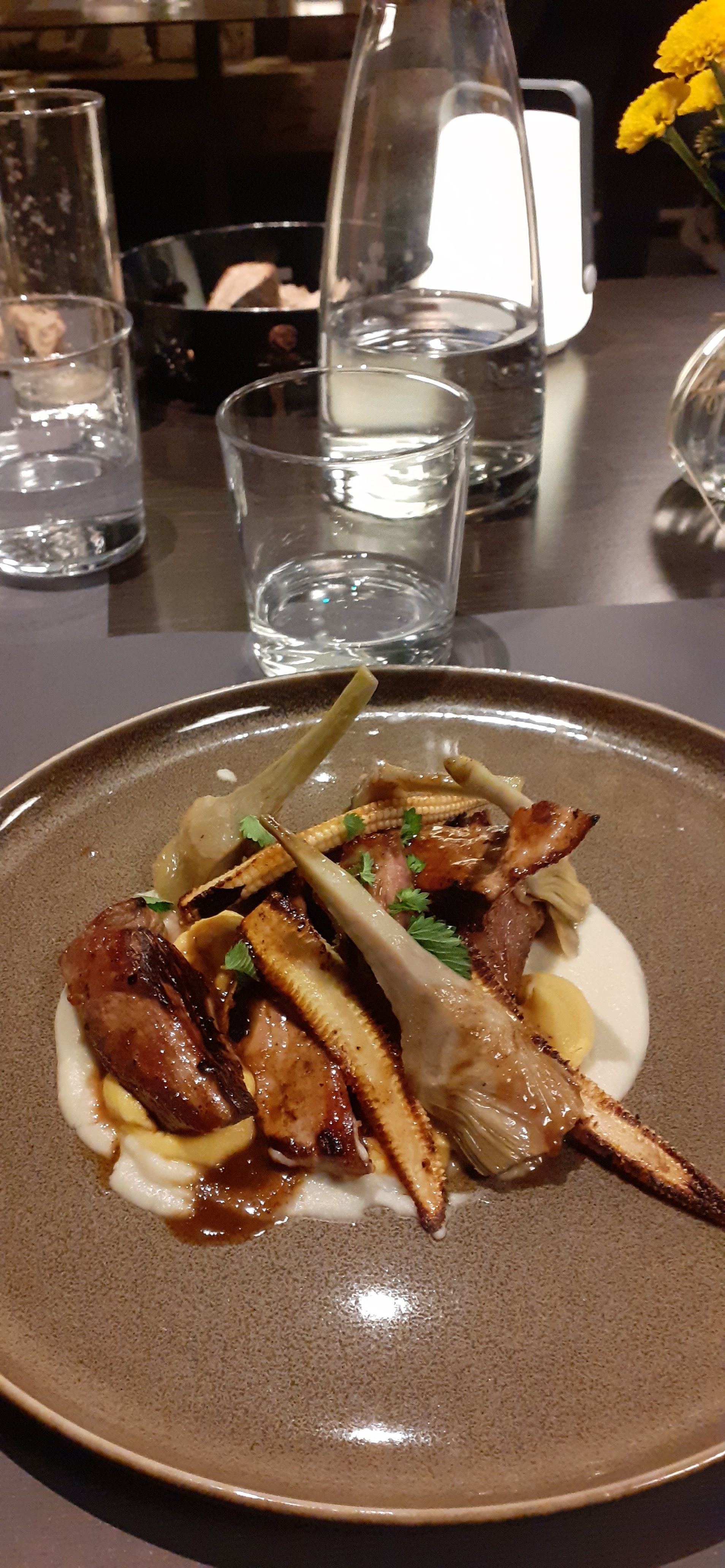 Mon meilleur restaurant à ce jour 🧡 Il n'est pas étoilé pourtant il mérite largement sa place dans la liste des grands ! Un cadre exceptionnel et une carte bichonnée pour nous faire voyager gustativement autour de mariage de saveurs aux notes incroyablement originales. Très belle signature d'un Chef talentueux et innovant !