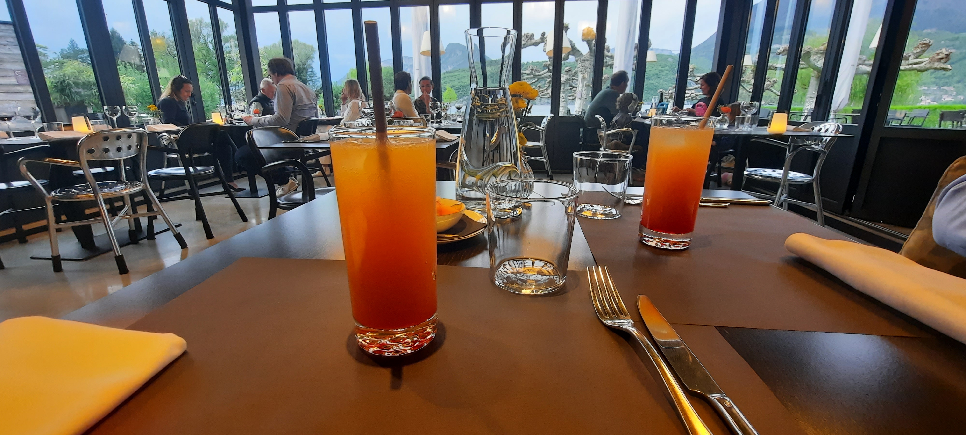 Très joli cadre avec une vue dégagée et magnifique sur le lac, et une terrasse encore ensoleillée ( mais protégée) à 21h. Les serveurs sont sympathiques (quoiqu'il a fallu 2 relances pour obtenir enfin une carafe d'eau). La cuisine n'est pas particulièrement gourmande et les quantités sont microscopiques. Nous sommes repartis délestés de plusieurs dizaines d'euros mais en ayant encore faim. Parfait pour un apéritif mais guère plus.