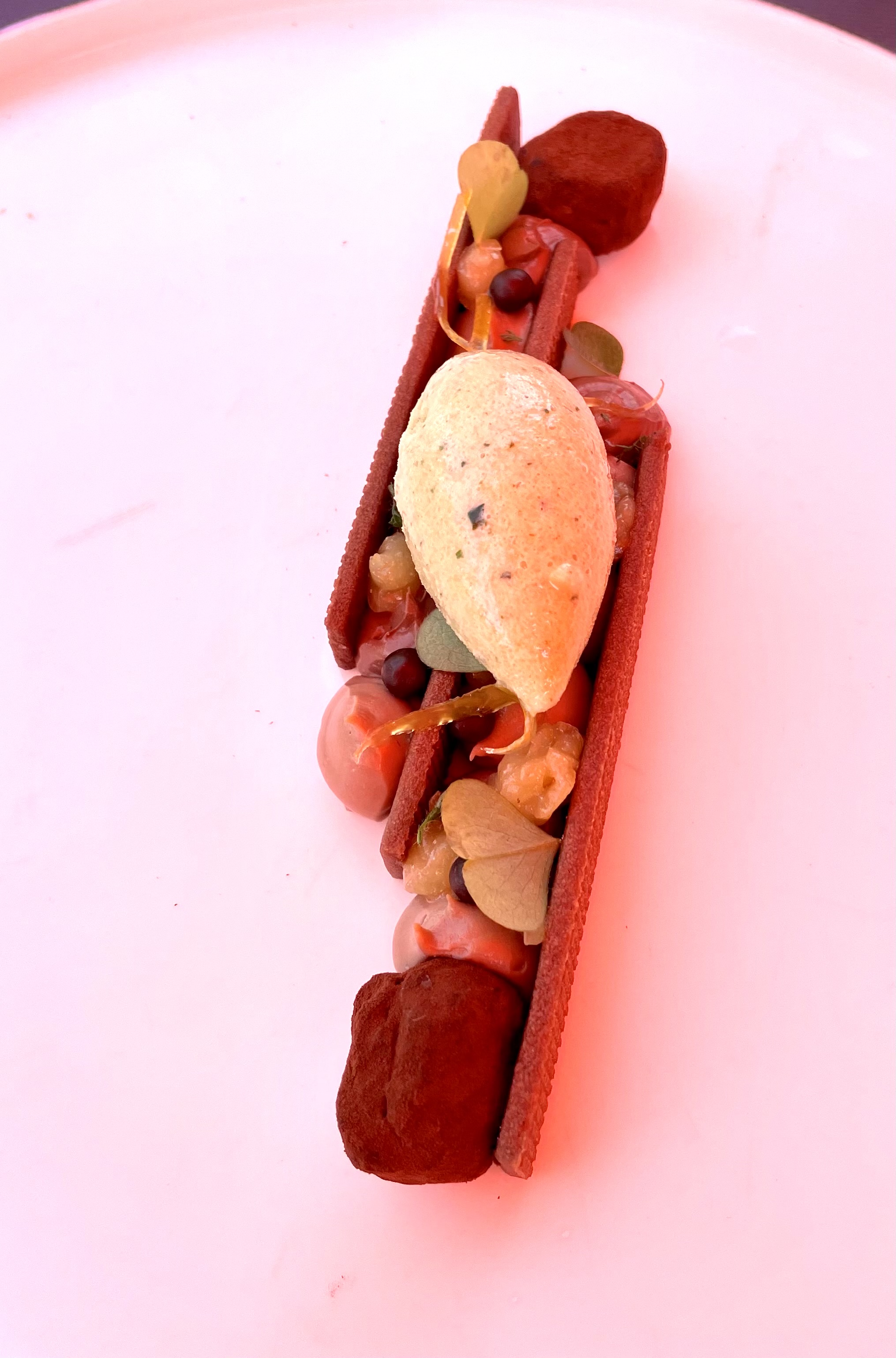 Un service sympathique, des plats très bien présenté, très bien pensés et des accords de saveurs très intéressants. Une petite retenue, sur les cuissons (carotte pas assez cuite par exemple) et l'équilibre des saveurs( trop de framboise et de betterave par rapport au poisson qui aurait dû être le maître de l'assiette). Les plats étaient tout de même très bon et nous avons tout manger, mais il y a toujours matière à s'améliorer.