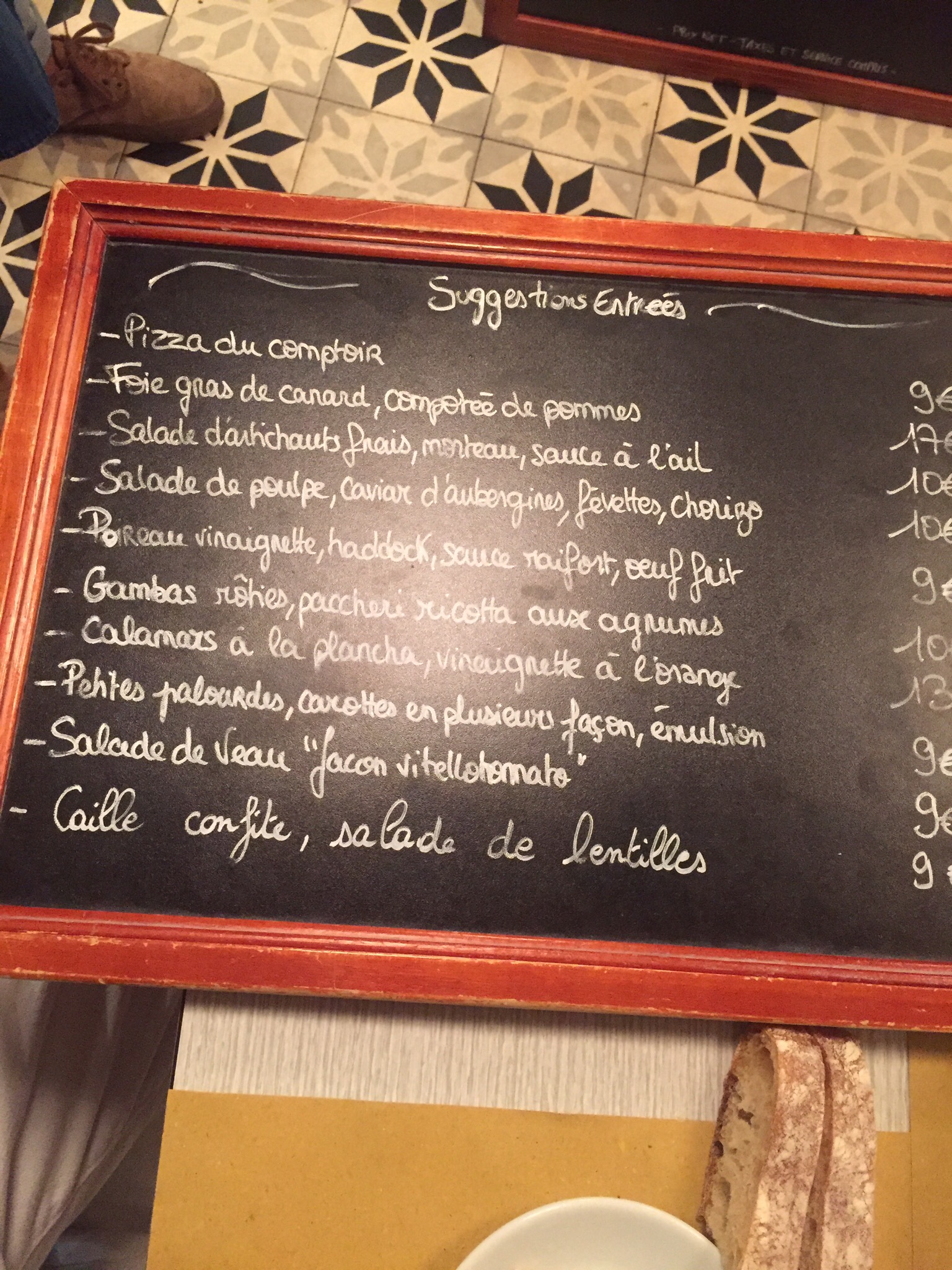 Excellente nourriture et service (presque parfait). Le personnel anglophone et le serveur masculin nous ont expliqué chaque élément du menu car il savait que nous aurions du mal à lire leurs tableaux français et il l'a fait avec le sourire ! La nourriture était délicieuse !! Nous avons raté le canard et nous sommes arrivés à 8 heures ! Ils acceptent également les visites sans rendez-vous. Nous avons eu le poulpe et le filet de steak. Je recommande vivement cet endroit. Une chose cependant ; nous avions l'impression que nous ne pouvions pas communiquer avec la serveuse ce soir-là car nous ne parlions pas français, et elle se précipitait devant nous car il y avait beaucoup de monde. Mais ne laissez pas cela gâcher votre chance de manger ici ! J'y retournerais juste pour la nourriture ☺. De plus, si vous aimez prendre des photos de votre nourriture pour des critiques en ligne, ne vous asseyez pas à proximité des autres car ils vous regarderont et ne s'occuperont pas de leurs propres affaires ! Le couple à côté de nous nous a mis vraiment mal à l'aise. Les tables sont rapprochées ! Mais le couple de l’autre côté prenait aussi des photos. Cela ne dérange pas la plupart des gens... je suppose que c'était juste notre expérience ce soir-là.