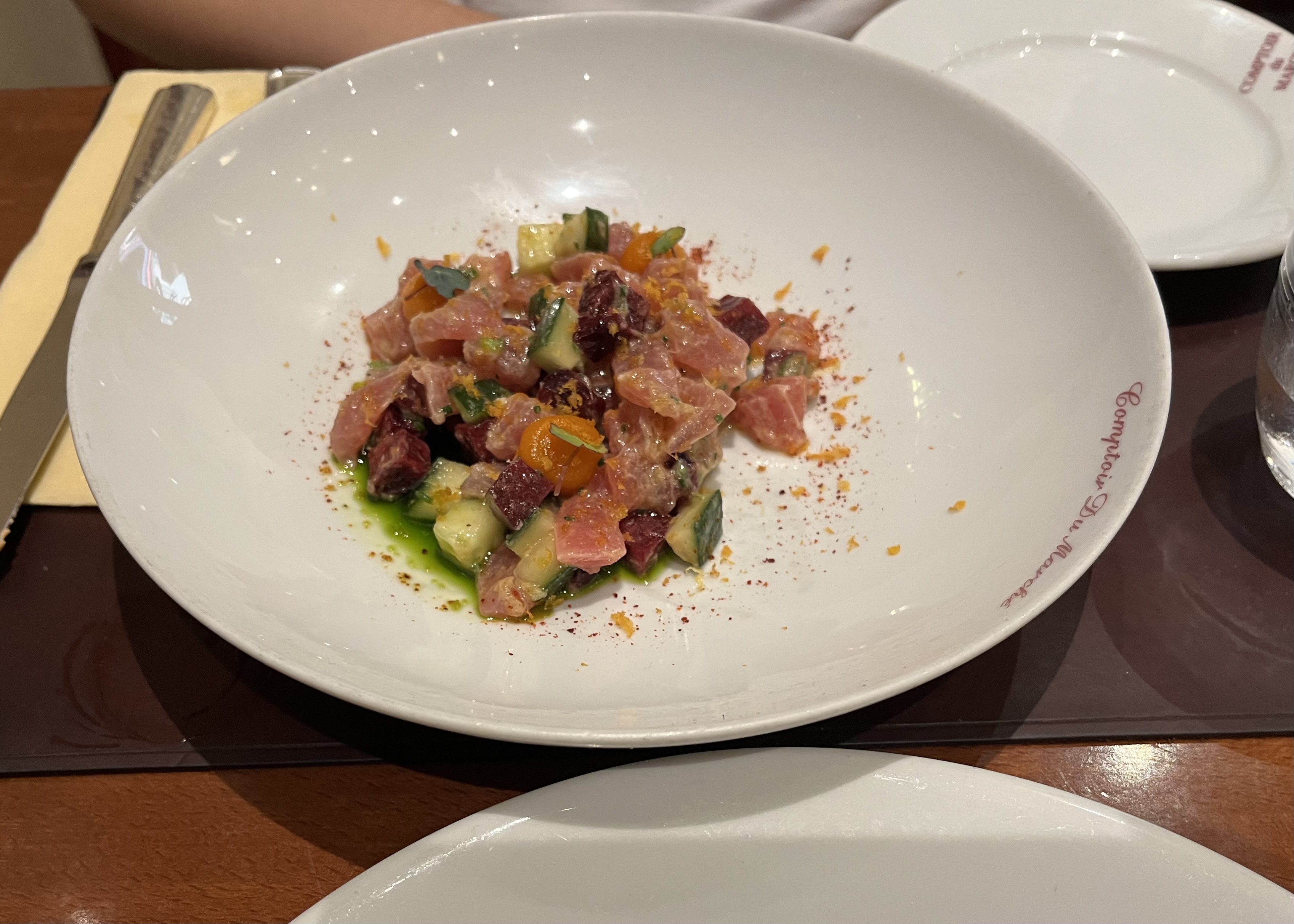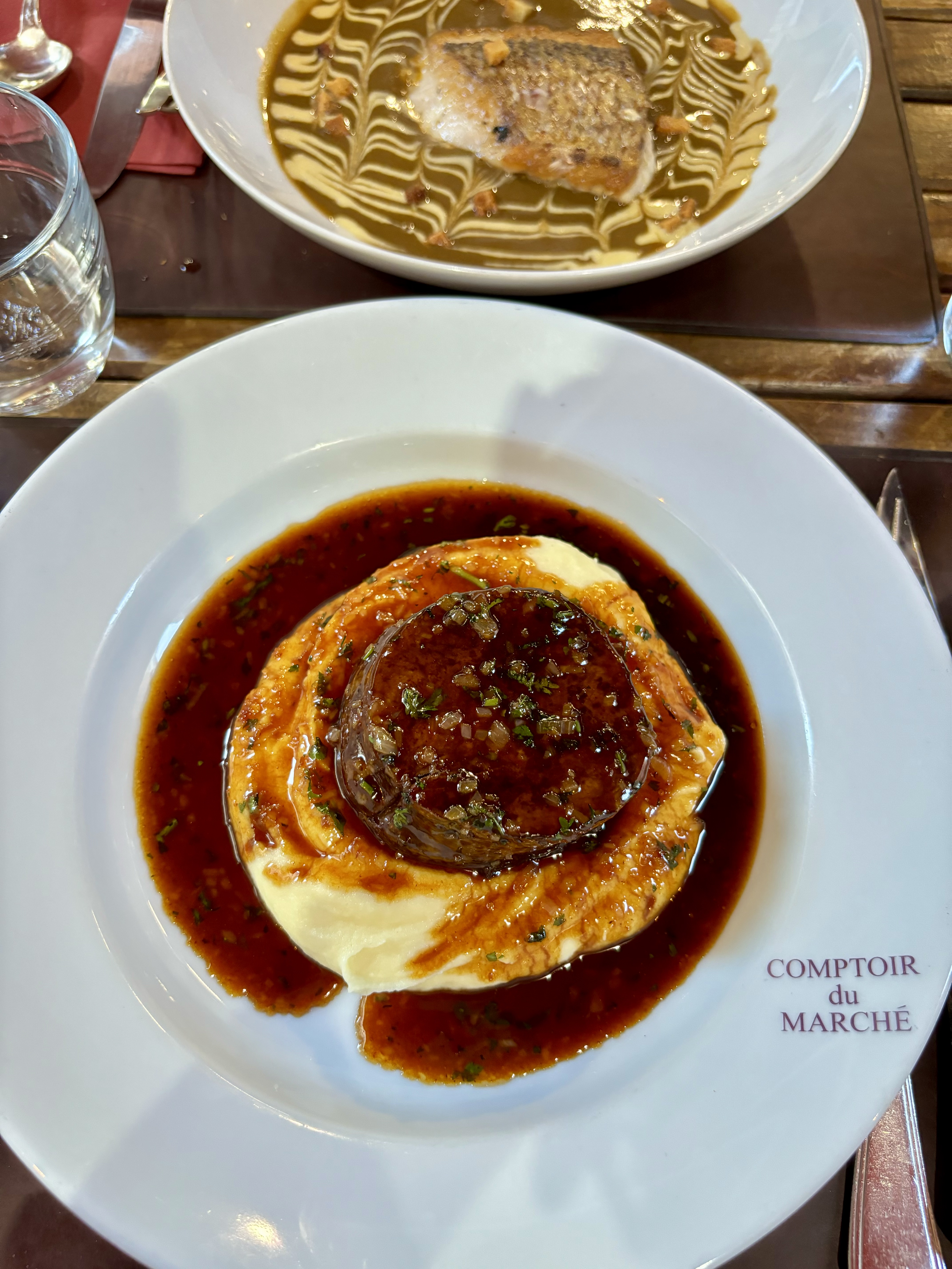 Délicieux dîner au comptoir du marché Entrée plat dessert, c'est le sans faute ! La joue de bœuf est une des meilleures que j'ai pu manger à ce jour Fondante et délicieuse !