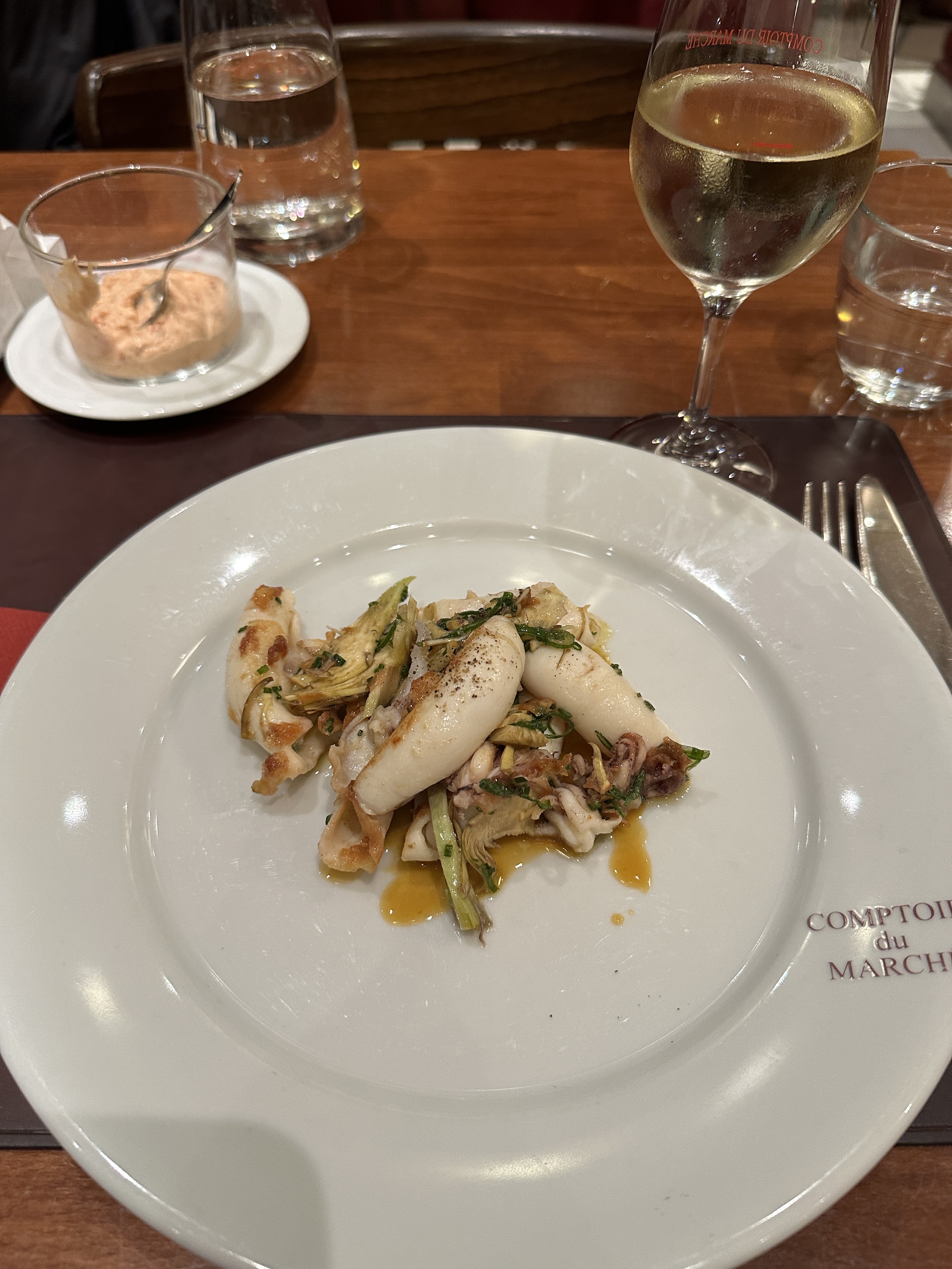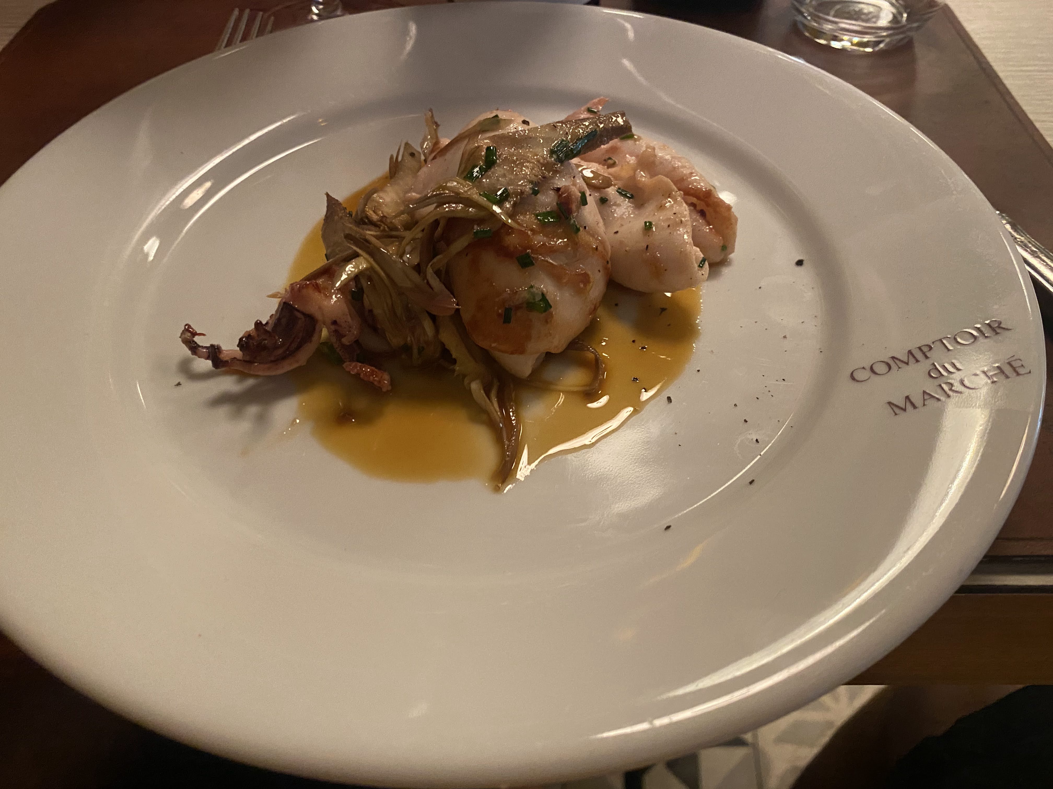Je ne saurais trop recommander le Comptoir du Marche. Nous y sommes allés dîner pour notre anniversaire de mariage. L'attention portée aux détails et l'efficacité du personnel étaient de premier ordre. Chaque plat était excellent. Notre plat préféré serait les calamars grillés. Le meilleur que nous ayons jamais eu.