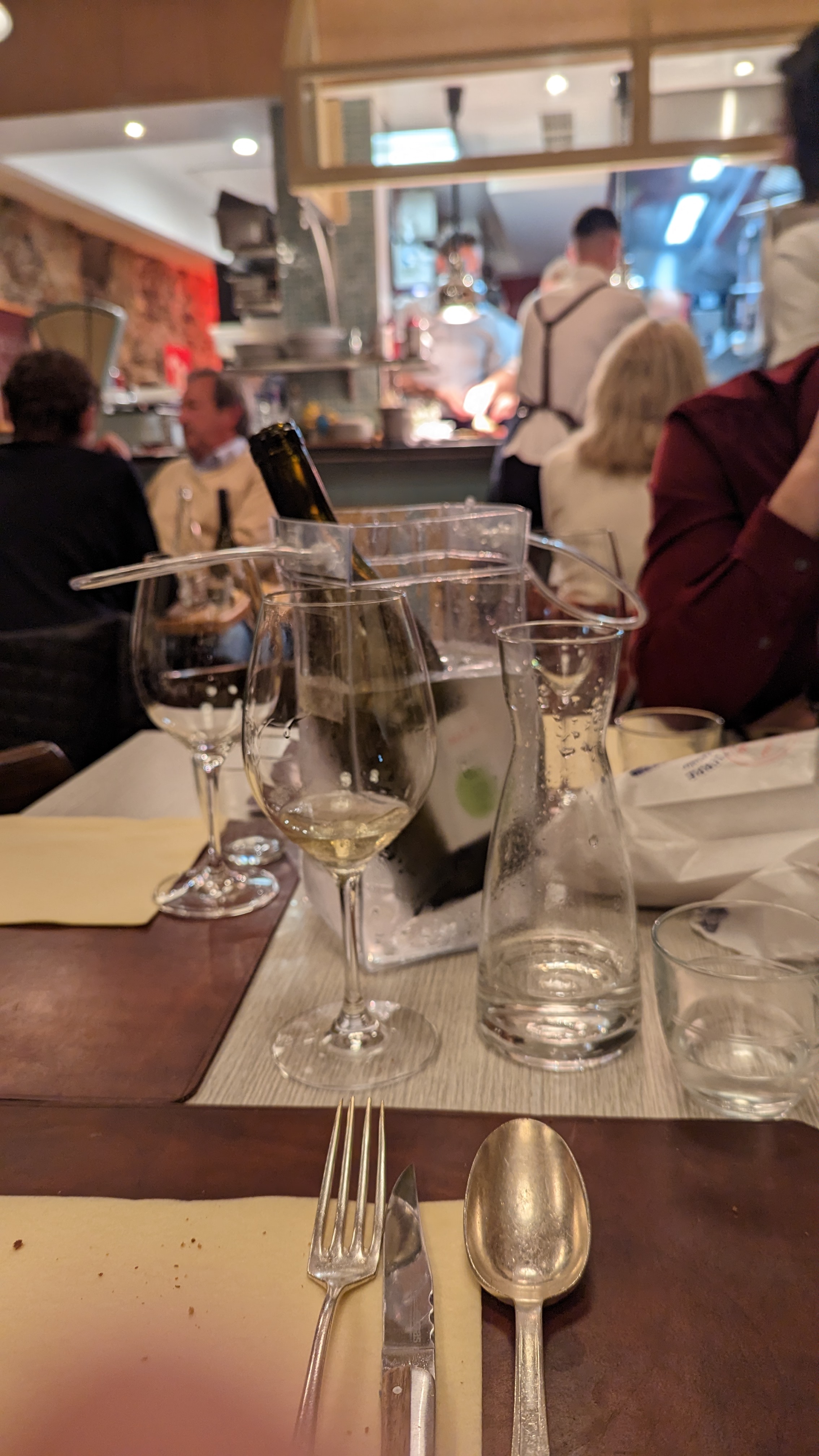Restaurant avec de bon plat bien que je reste sur ma faim, peu copieux. Salle du fond extrêmement bruyante entre les tables et la cuisine ouvert sur la salle, non agréable. Manque de chance on était à la table où les employés doivent vous pousser pour prendre couverts et verres tout le long de notre dinner! Je comprends pas trop cet agencement inconfortable pour le client. Service sans plus, employé sans sourire et responsable encore moins. Je ne recommande absolument pas cette adresse.