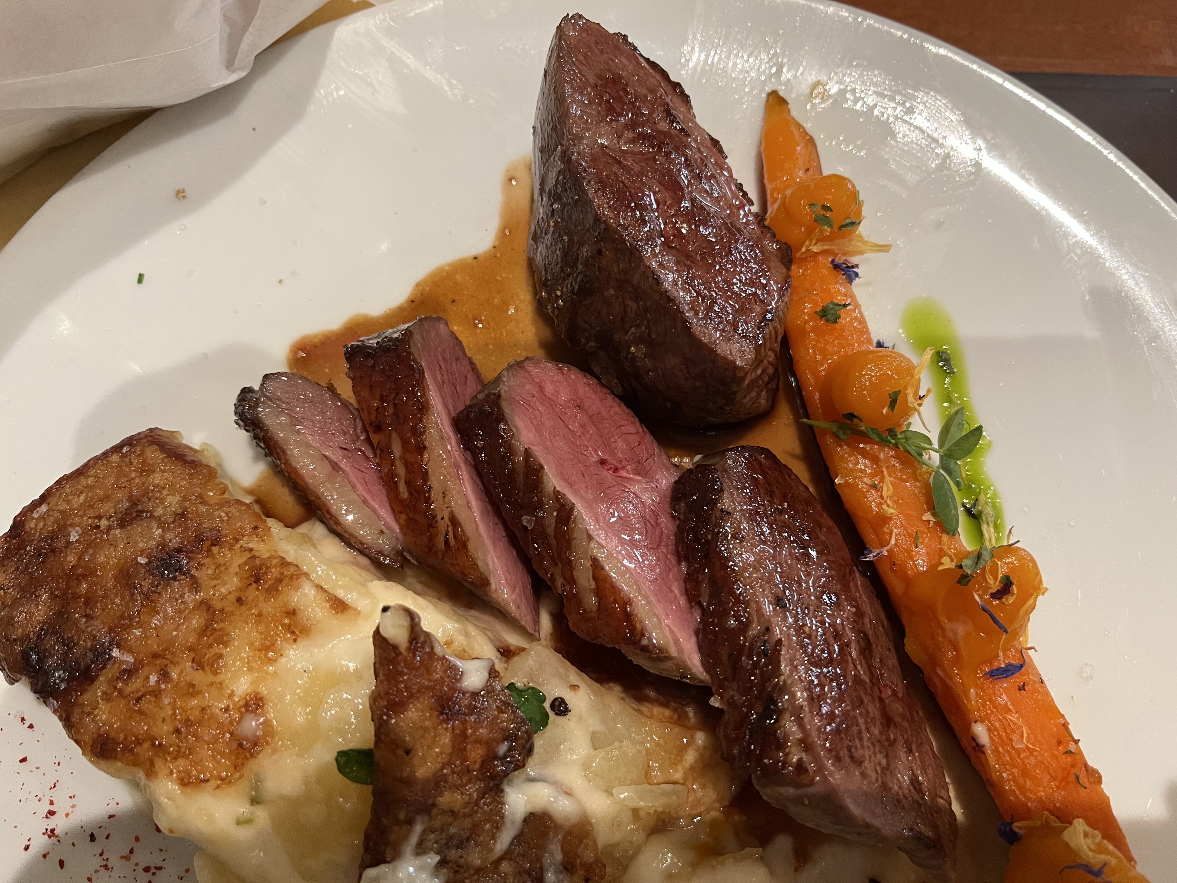 J'ai oublié de prendre une photo car après avoir essayé notre nourriture, nous ne pouvions pas nous arrêter de manger. Les joues de porc à la polenta sont incroyables. Le risotto aux crevettes du chef est très bien équilibré. Je recommande vivement cet endroit.
