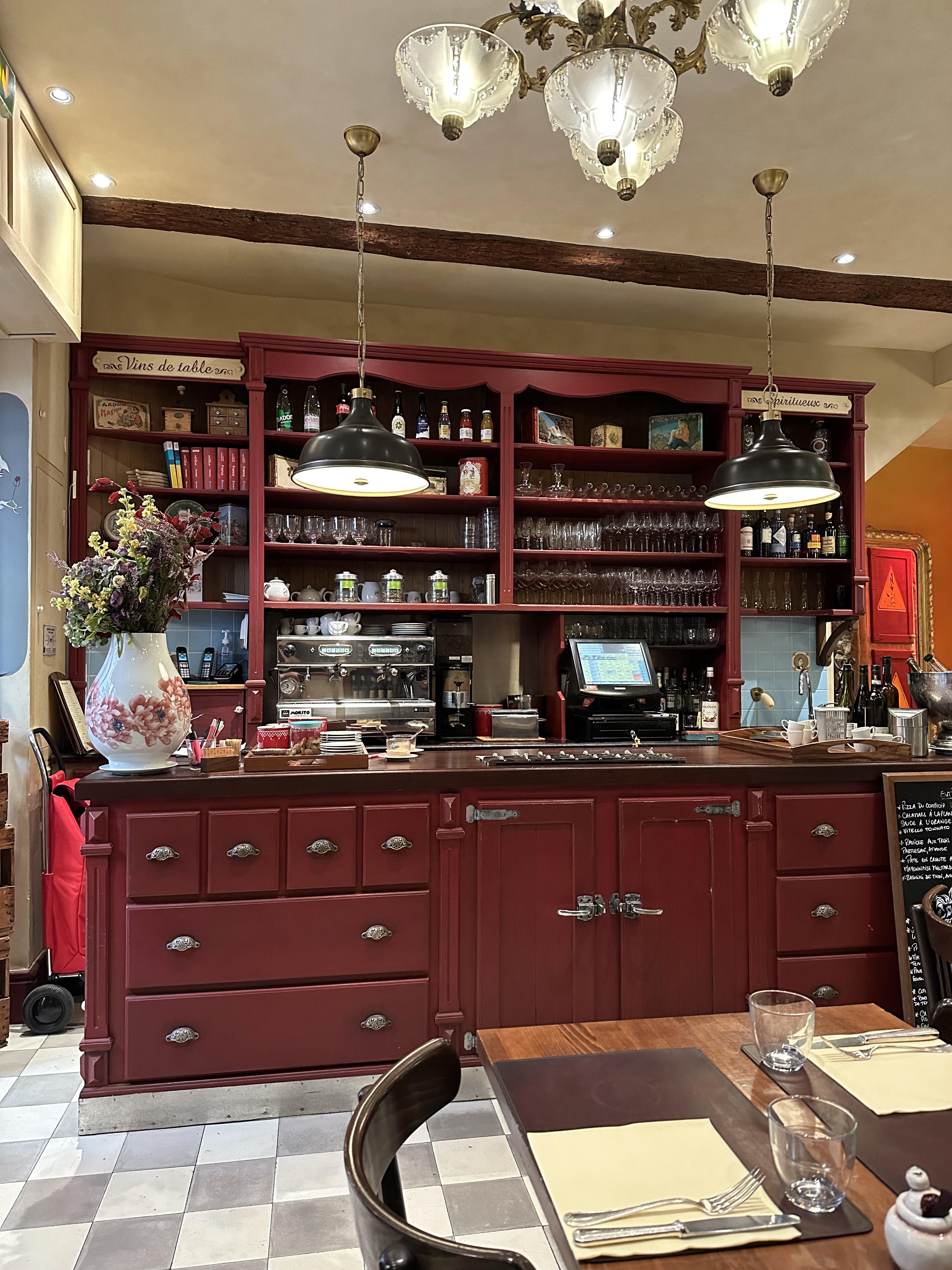 Nous avons mangé dans la salle du fond avec vue sur les cuisines, dans une ambiance rétro très sympa. La carte nous a mis l'eau à la bouche et nous n'avons pas été déçus ! Un délice : de la petite pizza de ma fille aux coquilles saint Jacques avec ses légumes. Tout était délicieux et le service adorable. Un vrai bon moment !