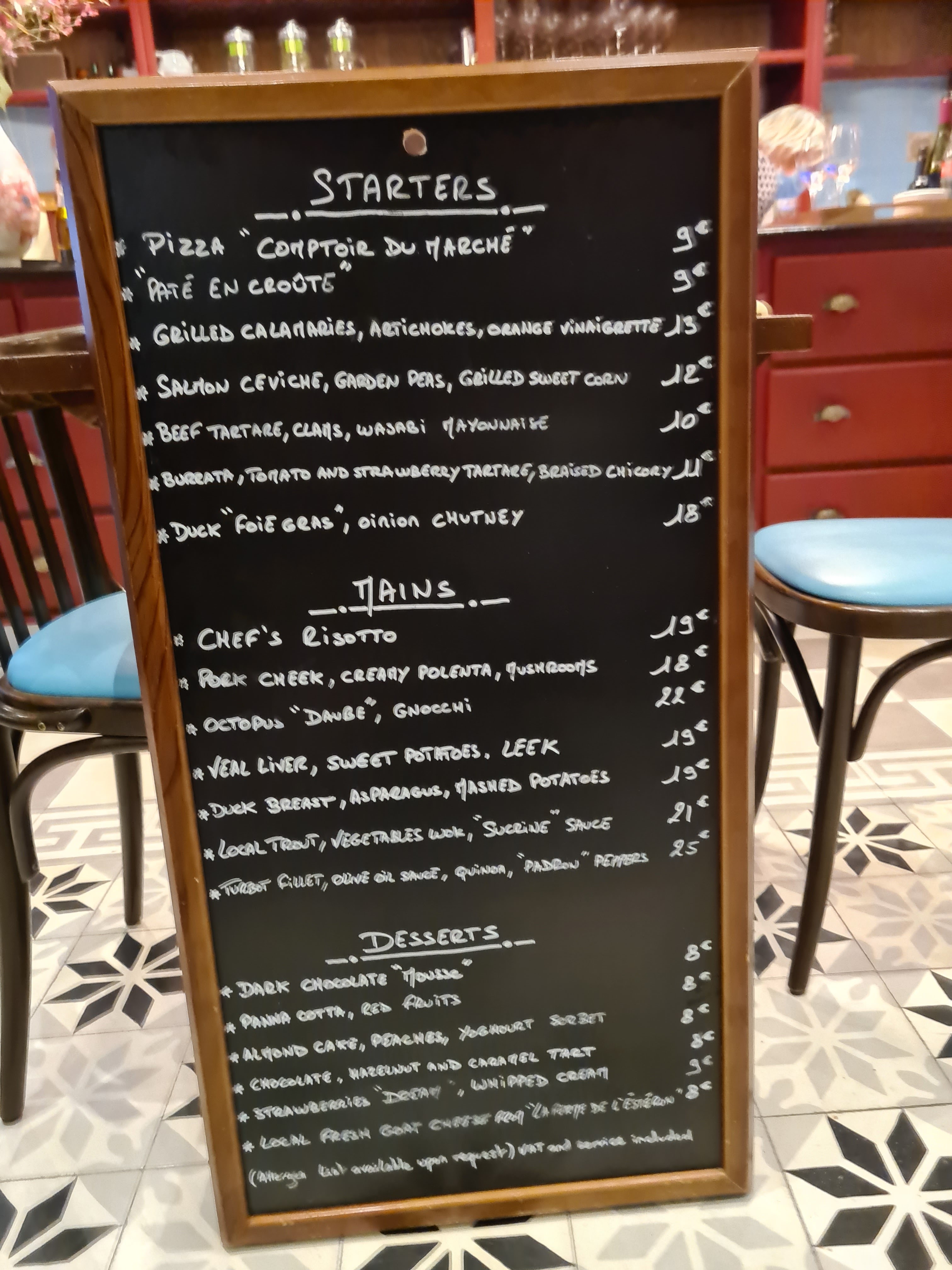 On reconnaît tout suite un bon restaurant : un cadre agréable, un accueil chaleureux, un personnel souriant et efficace, une carte contenue avec des plats fait maison. C’est ça Le Comptoir du Marché ! 😊