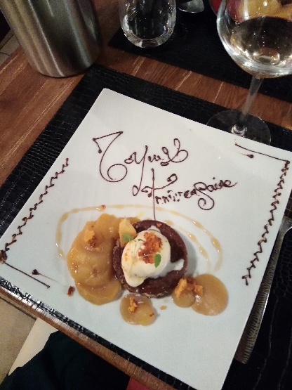 Que dire ... de la créativité, de bons produits, le talent de Xavier (le Chef), et un accueil très sympa. Merci à Xavier et Amandine pour notre excellent dîner hier soir. Même sans gluten et sans lactose nous avons très très bien mangé et que dire du fondant au chocolat ! Il nous a suffit de prévenir en réservant !!!!