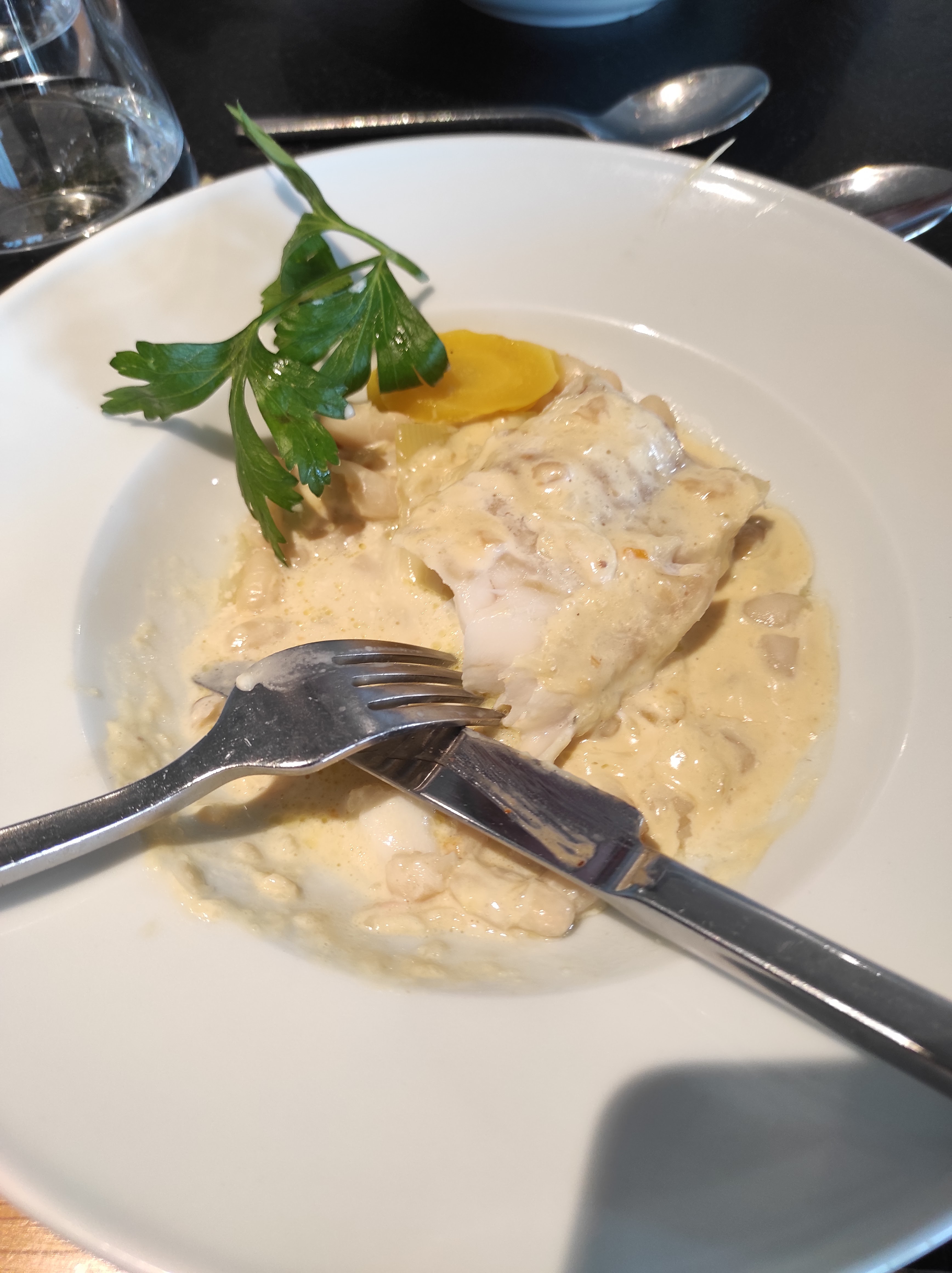 Enfin un restaurant qui nous laisse le temps de prendre l'apéritif avant de nous servir le plat, dos de cabillaud très bon. Grand espace entre les tables qui permet une bonne intimité et surtout une vue magnifique sur la plage.