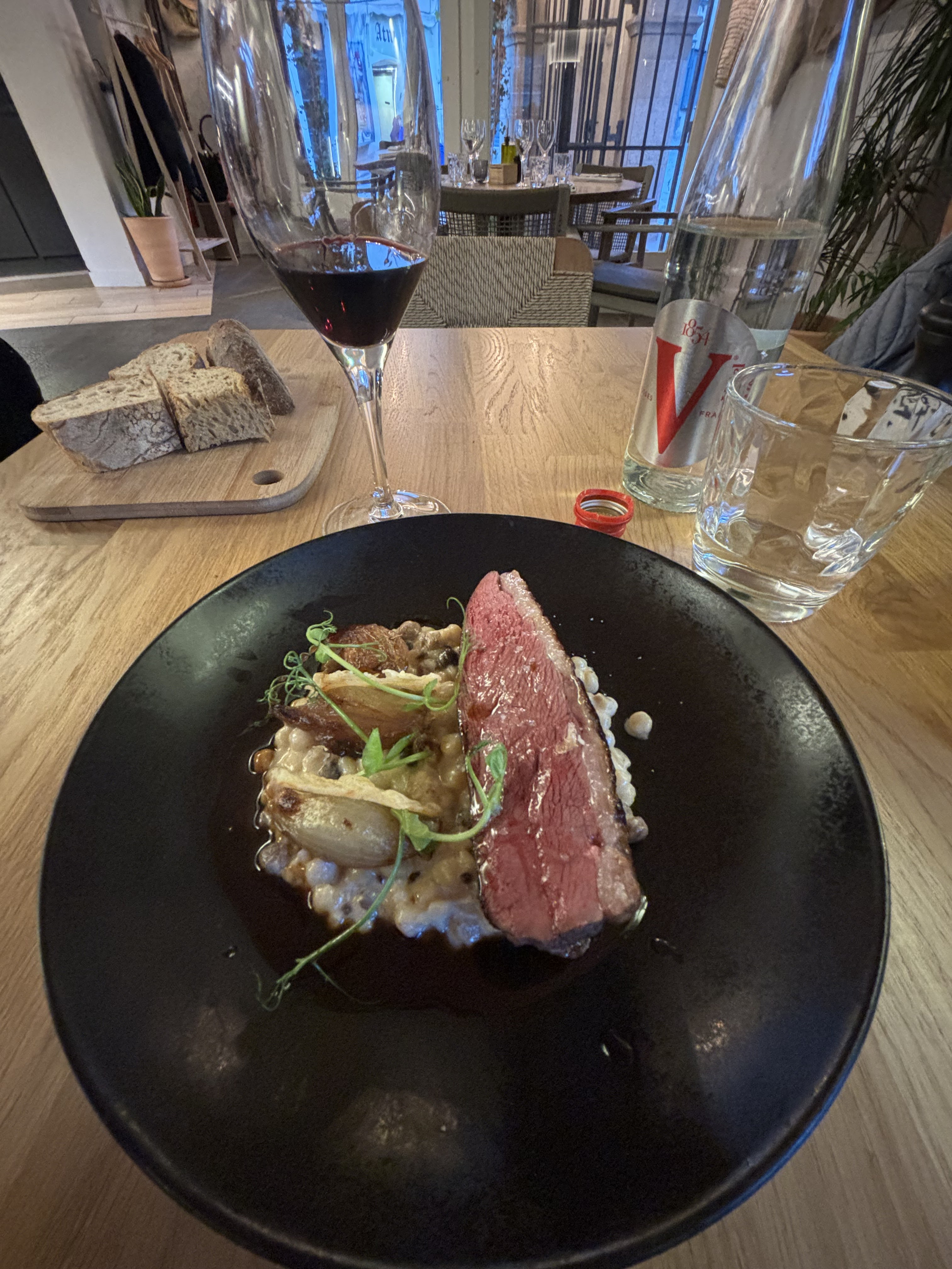 Alors que dire … pour le même prix presque, nous avons mangé dans un étoilé dans cette ville. La terrasse est sympa mais vite remplie (trop…) le soir. Les plats sont bons mais voila … pas gastros.., bref un dîner sympa mais je ne reviendrai certainement pas. PS : les quelques feuilles de salade fatiguées servies avec tous les plats sont en trop