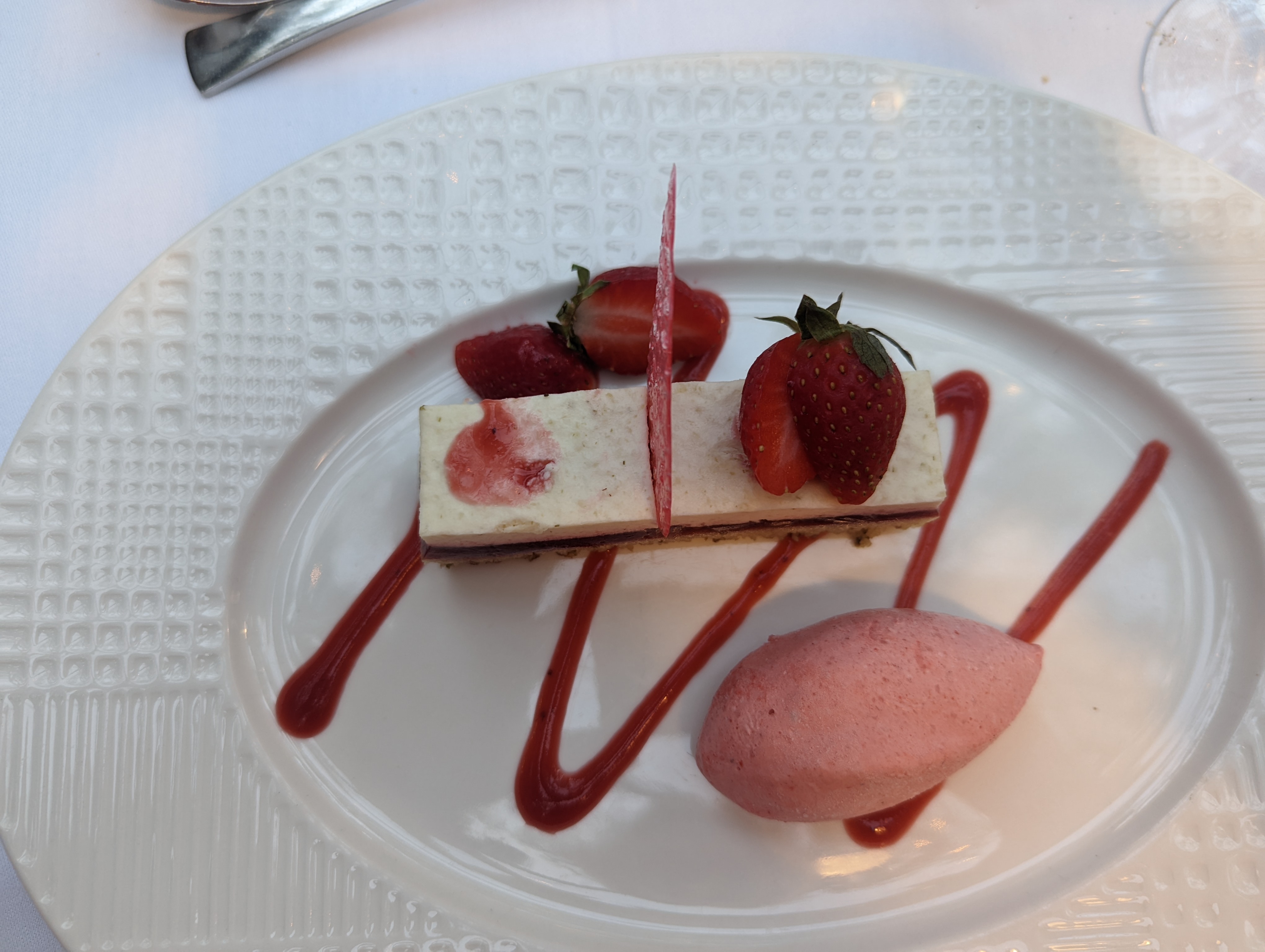 Absolument magnifique! La nourriture était excellente et intéressante - magret de canard avec différentes versions de maïs et de cerises, une soupe de fruits de mer vraiment merveilleuse et des interprétations passionnantes de foie gras. Une ambiance très conviviale et un excellent service. Hautement recommandé.