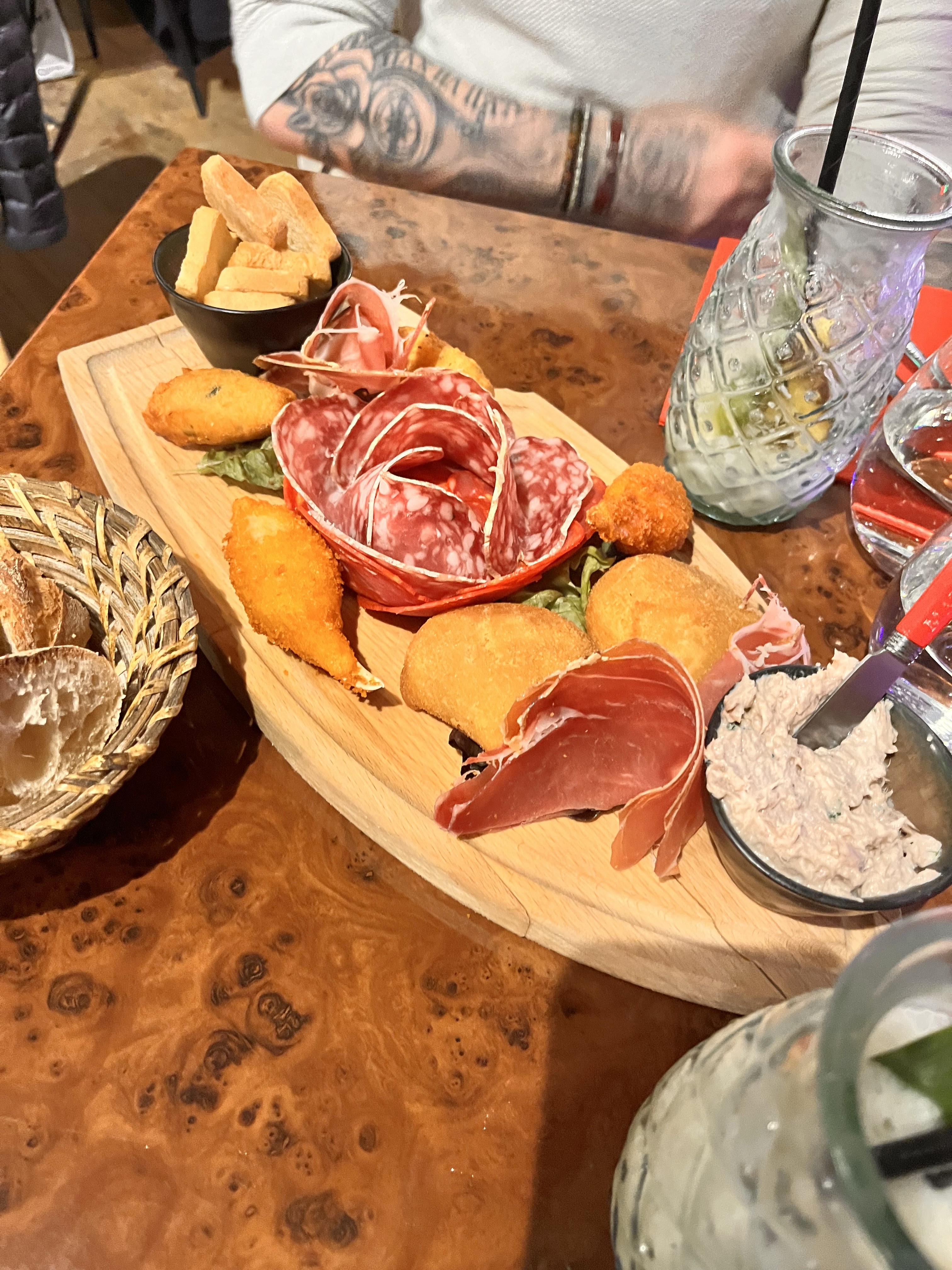 Nous avons passé un bon moment ! Mes amis ont pris de la morue et poulpe, j'ai pu goûter c'était généreux et bon . J'ai pris un burger c'était moyen et un peu grossier par contre les cocktails sont pas mal et la tarte tatin était top . L'ambiance est sympa même si les sons c'est un peu aléatoire et un peu fort . Je recommande 👍