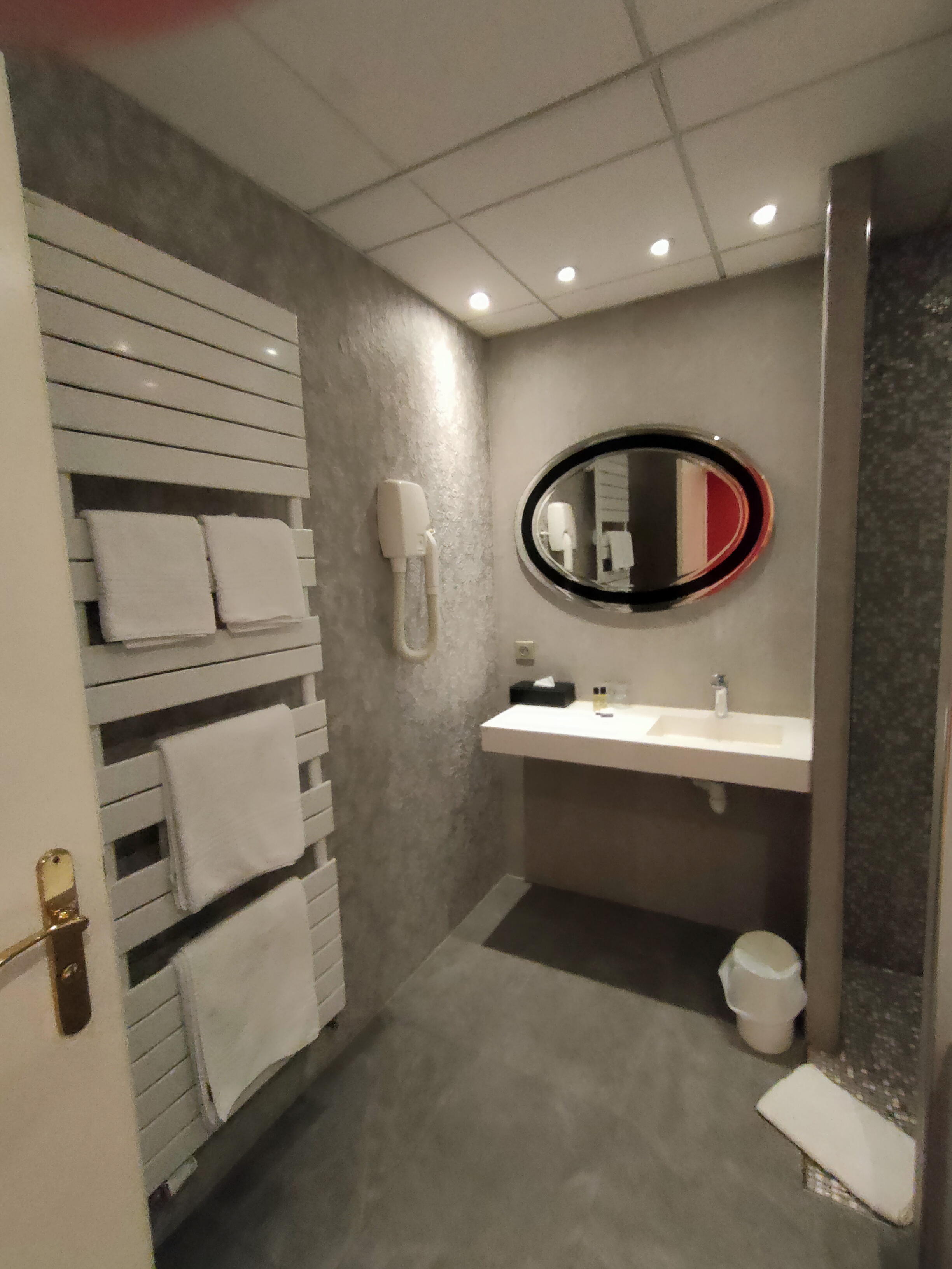 Nous avons adoré chambres spacieuses salle de bain très grande très jolie. Personnel très sympathique petit déjeuner bon rapport qualité prix. Nous y retournerons avec plaisir et je le recommande