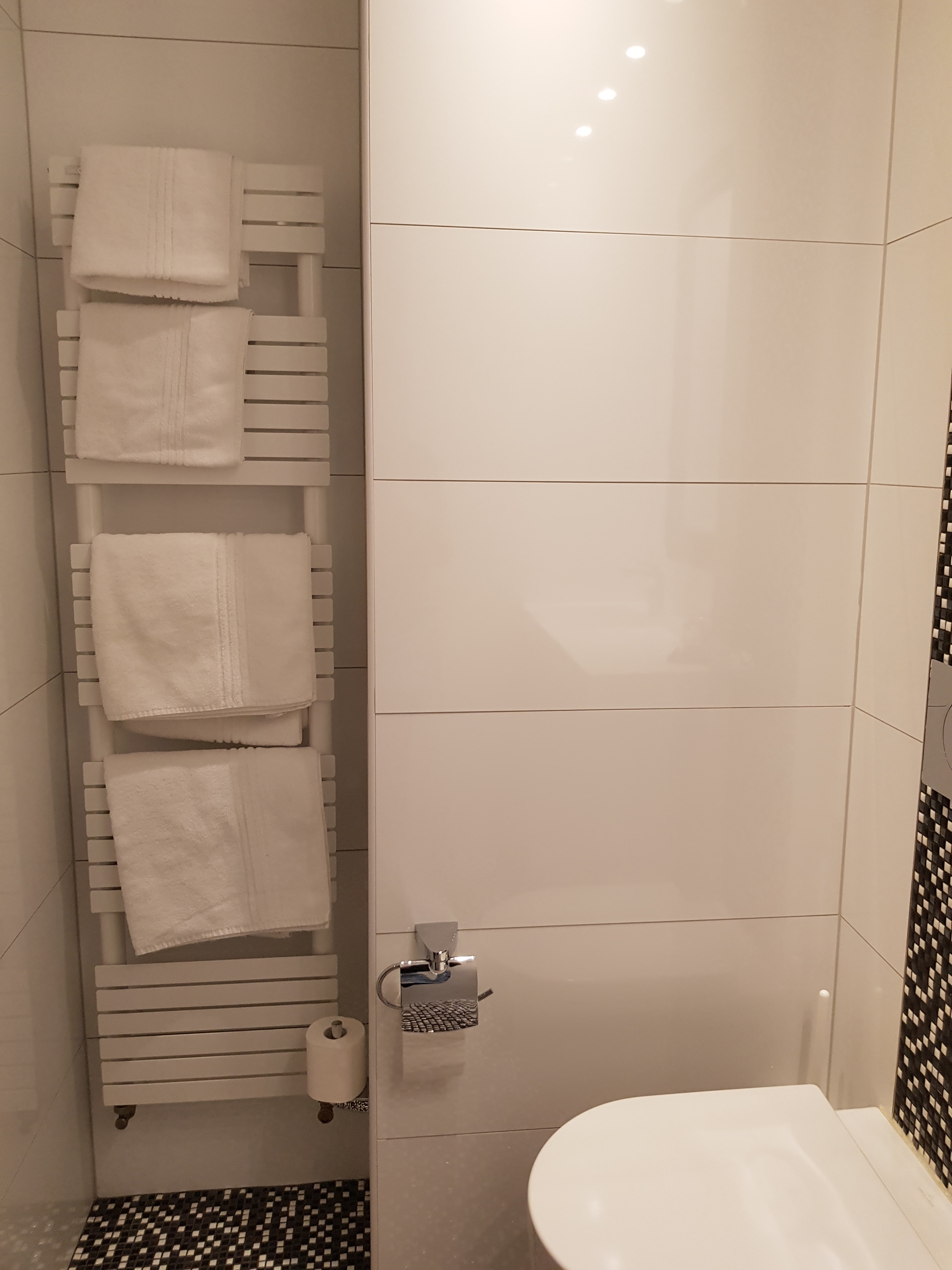 Voilà l’hôtel parfait : emplacement, accueil, chambre spacieuse avec wc séparés et porte-linges chauffants ; de plus le petit déjeuner était varié.