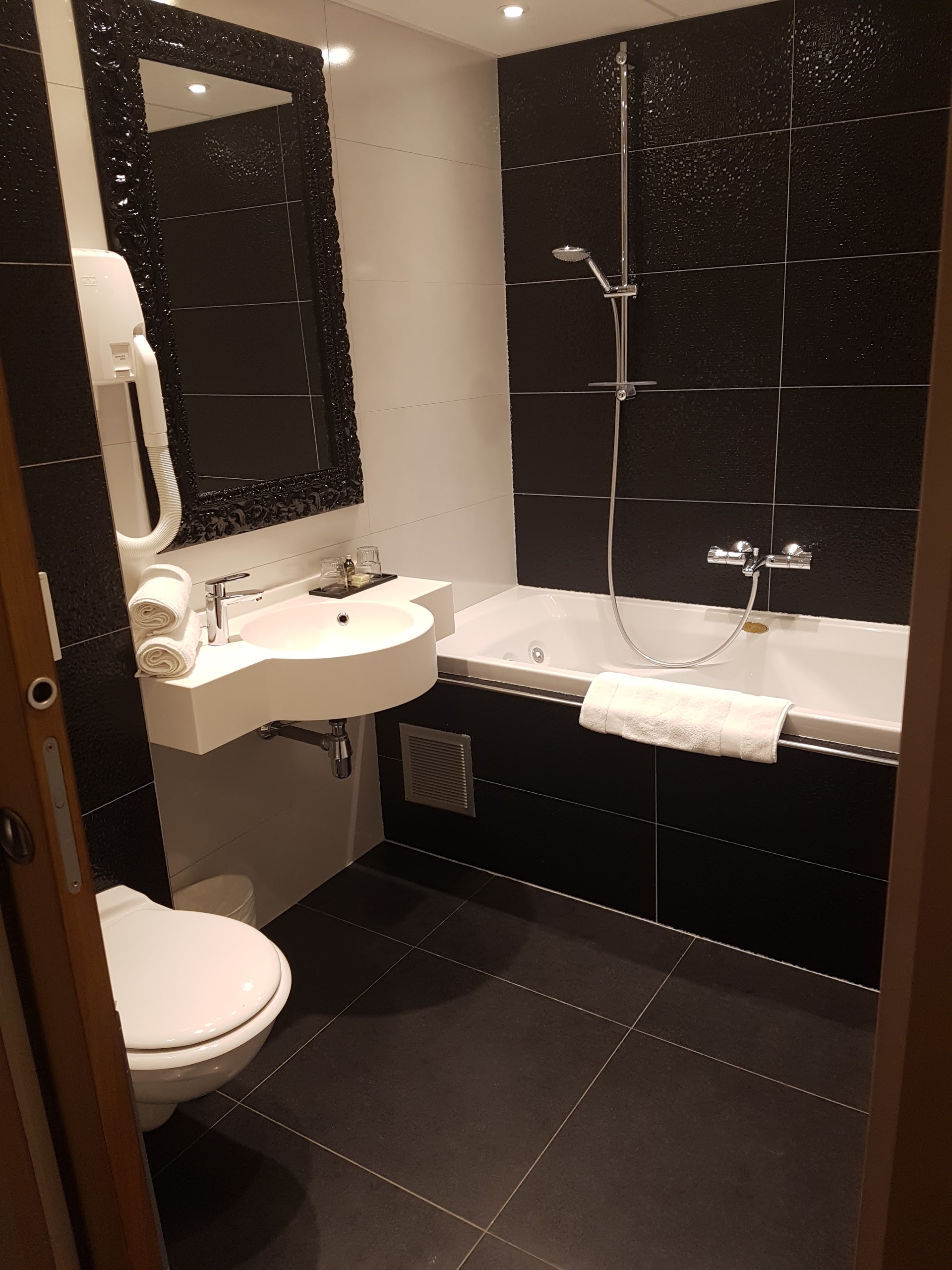 Nous avons passé un excellent séjour ! Notre chambre était la chambre confort. Il y avait un bon espace pour 2 personnes. Le lit/matelas était très confortable et les draps étaient de bonne qualité. La fenêtre occultante est parfaite et elle dispose également d'un voile et d'un rideau occultant ! Parfait! Il y avait un petit mini-bar dans la chambre et des équipements pour préparer du café et du thé dans la chambre. Le seul bémol est qu'il n'y avait qu'une baignoire - un jacuzzi très agréable - mais sans aucune protection pour que l'eau ne mouille pas la salle de bain (rideau ou cabine de douche). Nous aurions préféré une douche à l'italienne, mais c'était correct pour une nuit ! ☺️ Les serviettes étaient très bonnes et propres ! Il y a un parking à l'intérieur de l'hôtel et la réception est accessible depuis le garage (pas besoin de traverser la rue). Le service était très, très sympathique et attentionné. J'ai réservé la chambre, en anglais, par téléphone. Tout était facile et sans effort. Merci! Le petit-déjeuner buffet offrait une bonne variété d'options et un prix raisonnable. Nous reviendrons! ☺️