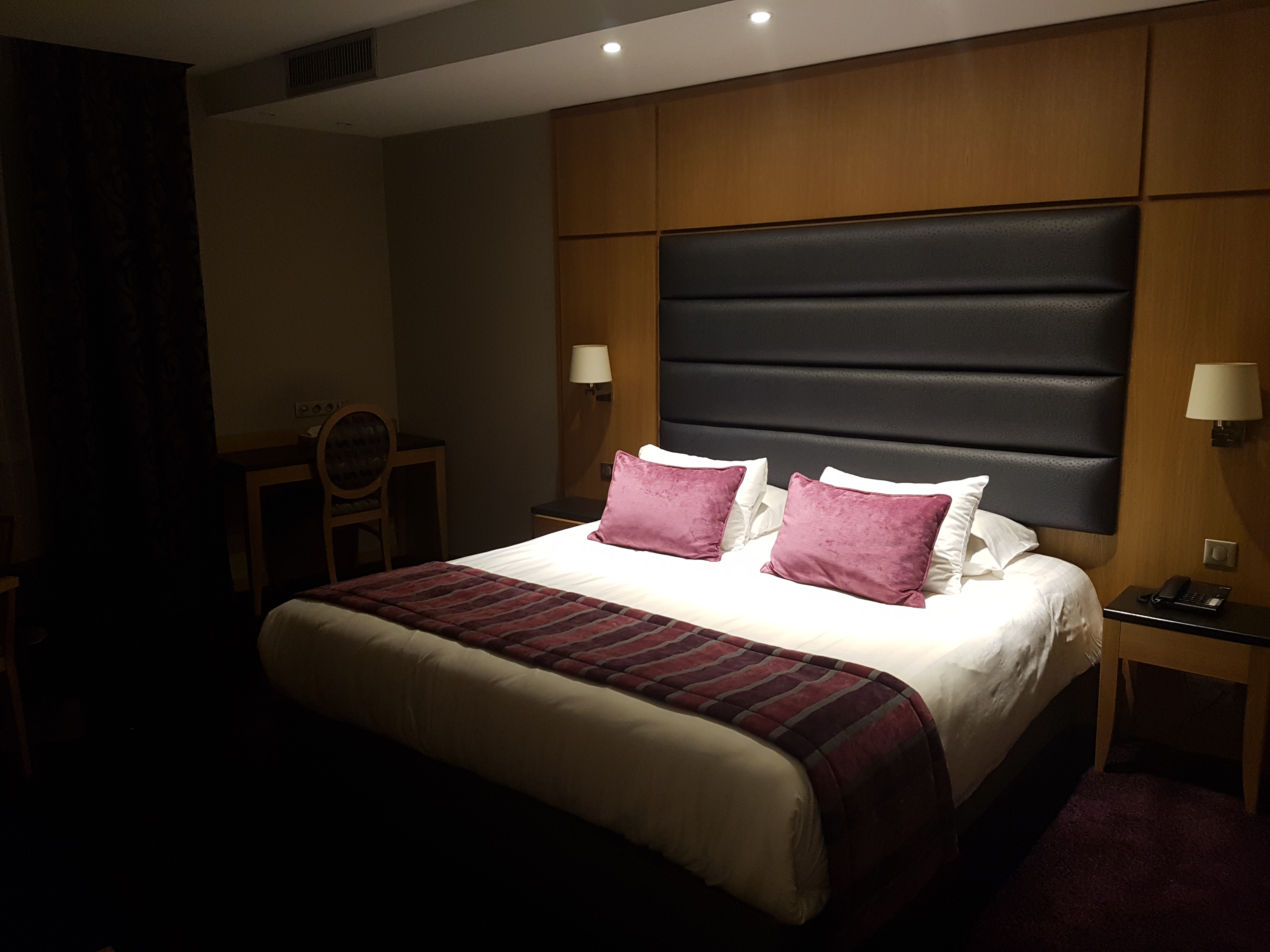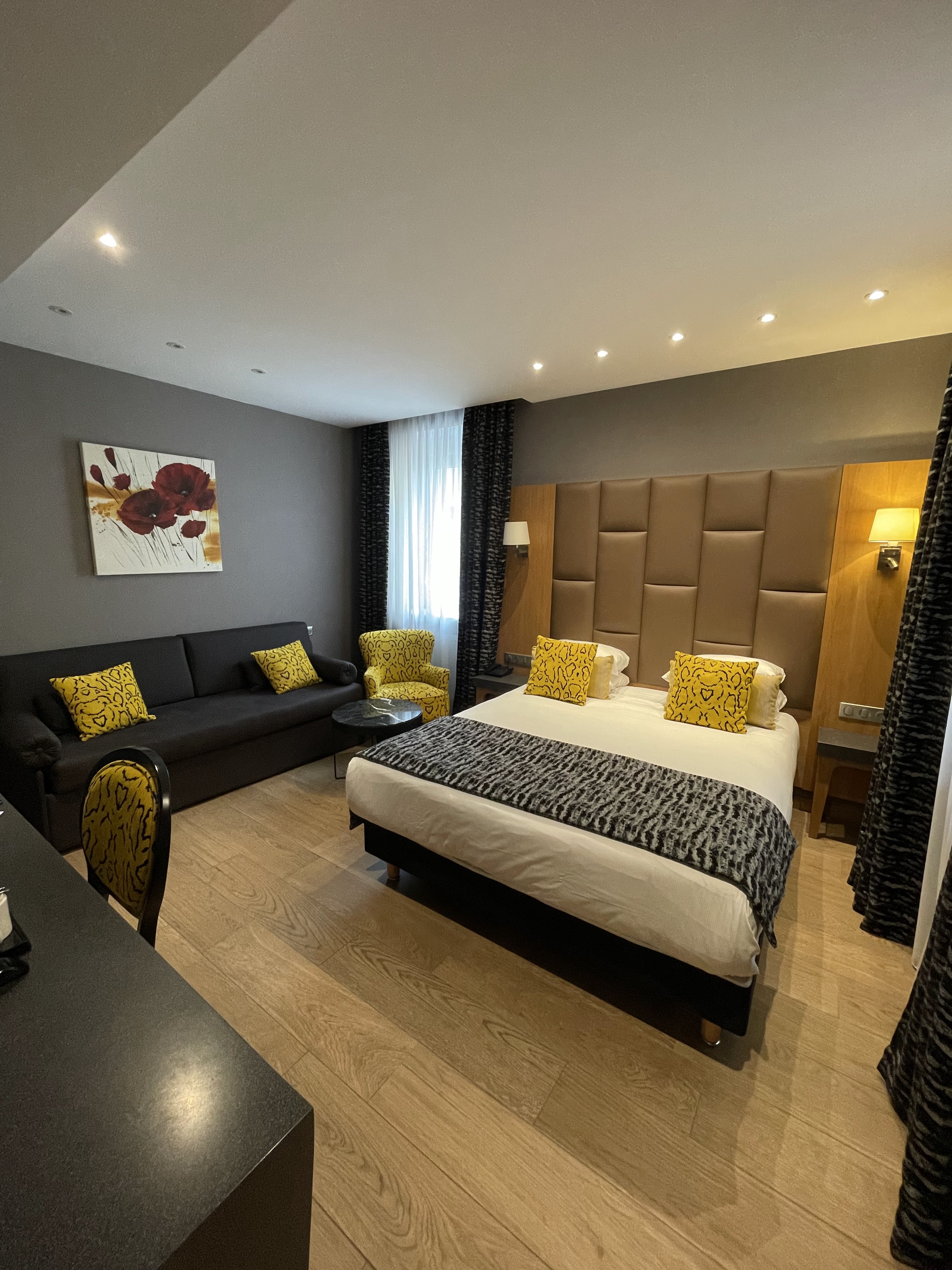 Les nouvelles chambres de l'hôtel sont vraiment somptueuses ! Très spacieuses, elle offrent un lit king-size, un petit salon et un jacuzzi dans la salle de bain. Rien à dire et le petit déjeuner est très correct 👍 Edit du 08/03/2018: je revois mon avis 2 étoiles en moins car quand vous tombez dans l'ancienne partie de l'hôtel c'est vraiment vieillot ! Les chambres sont très grandes mais ça respire pas la modernité... Bref pas mal de travaux 😕 Edit du 06/2019 : la partie récente de l'hôtel est vraiment somptueuse, les chambres du 5eme étage à tomber 😍