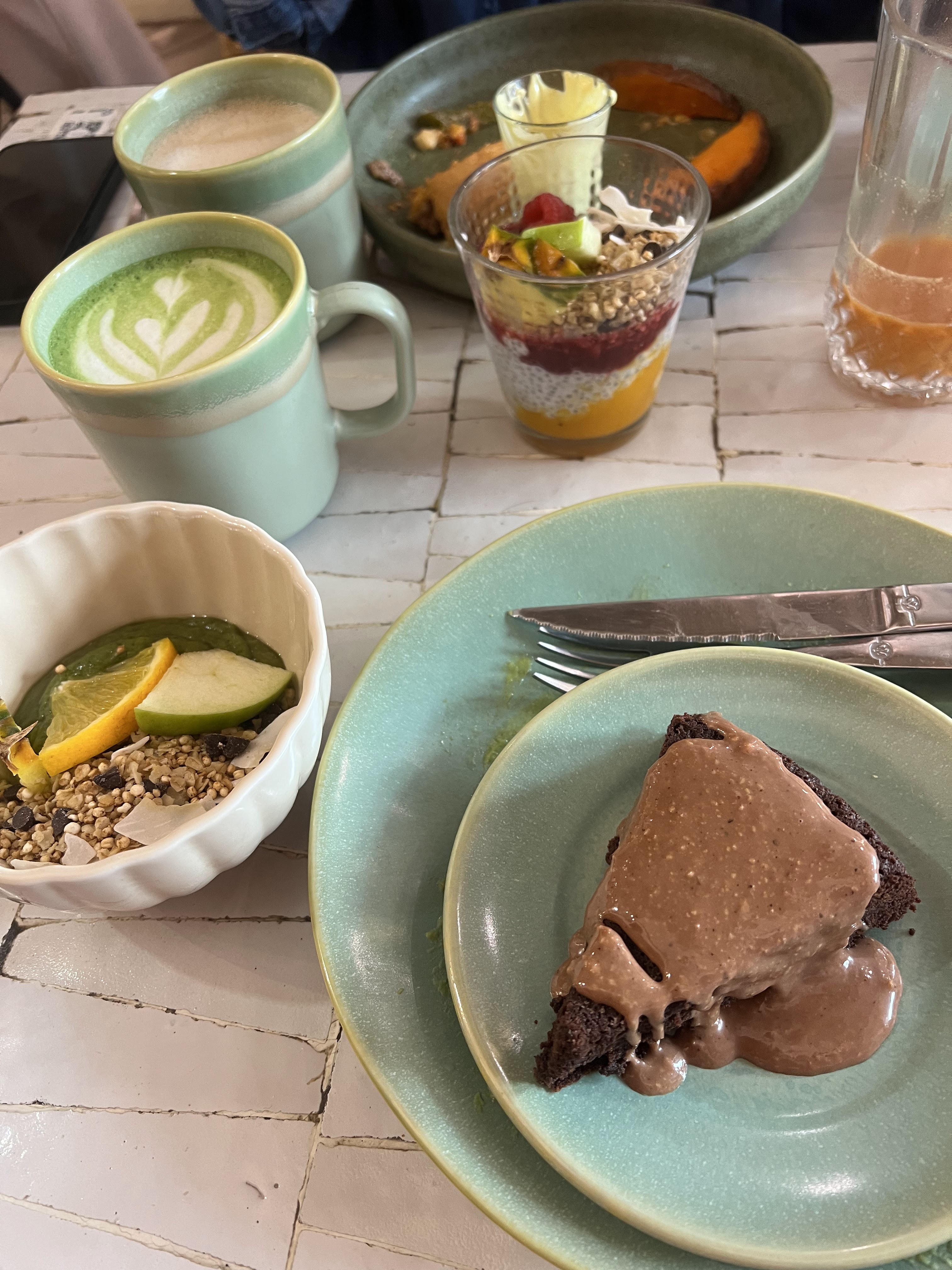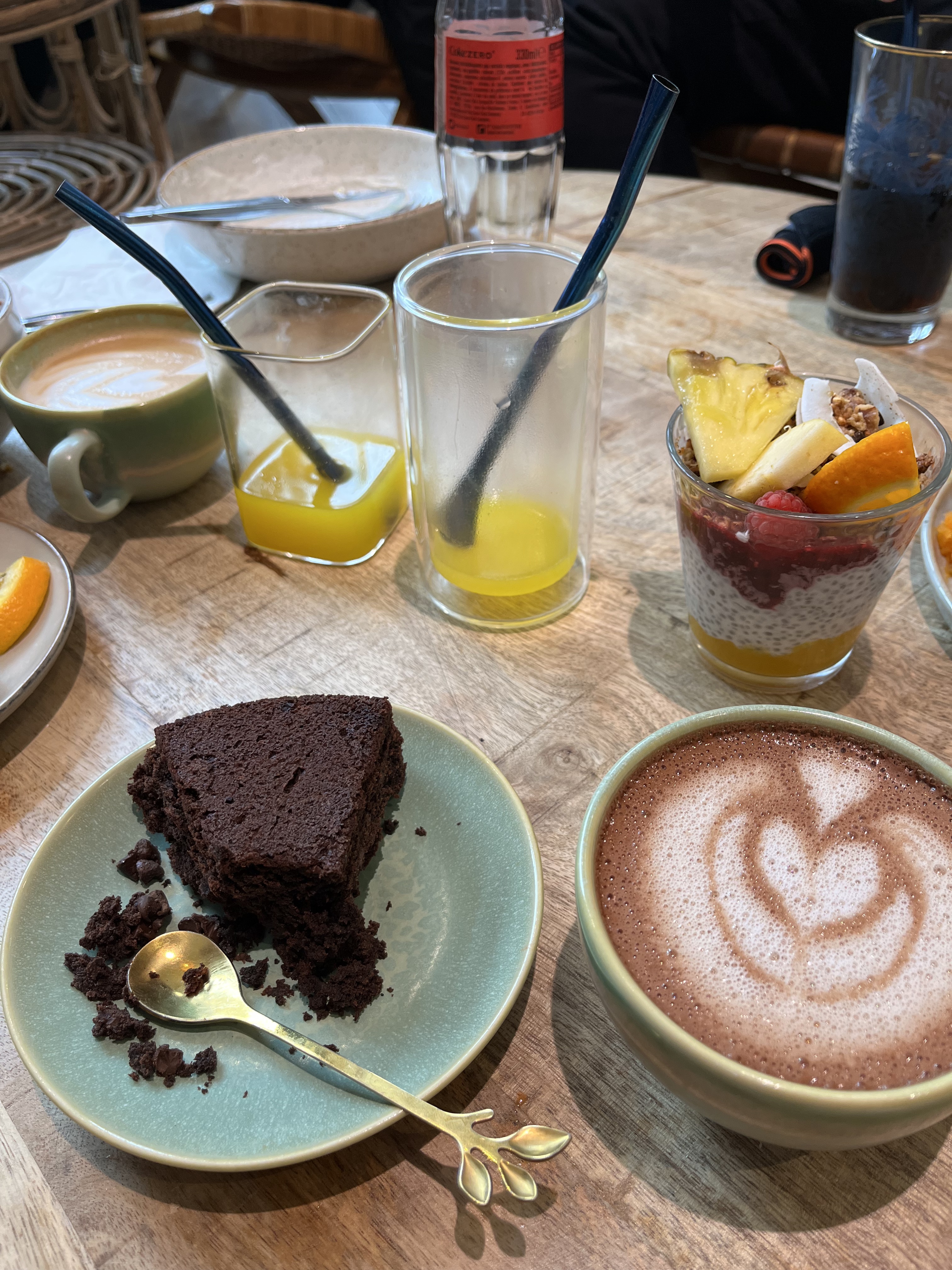 Super endroit ! Très bien décoré ambiance cosy Très bon accueil du personnel QR code pour le choix des boissons et pâtisseries exposées par la serveuse Dommage que les brunch ne soient pas servis toutes la journée nous reviendrons plutôt pour tester cela. Carottes cake Gâteau chocolat Chai Latte Thé vert menthe Cappuccino Nous reviendrons