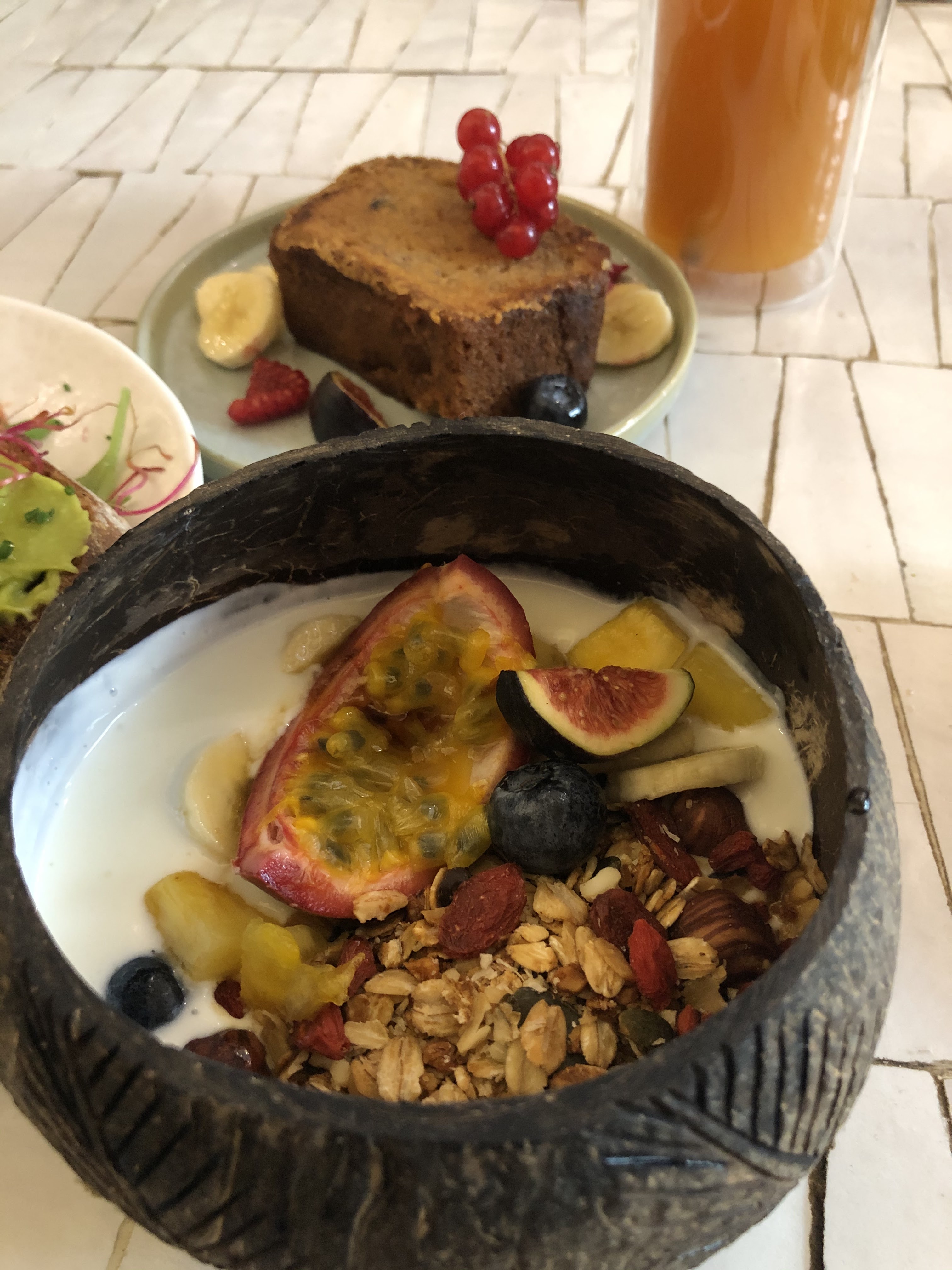 Brunch bon! Mention spéciale pr le granola au quinoa soufflé ! (Ce serait trop bien de pouvoir en acheter pr chez nous). Déçu par le banana bread