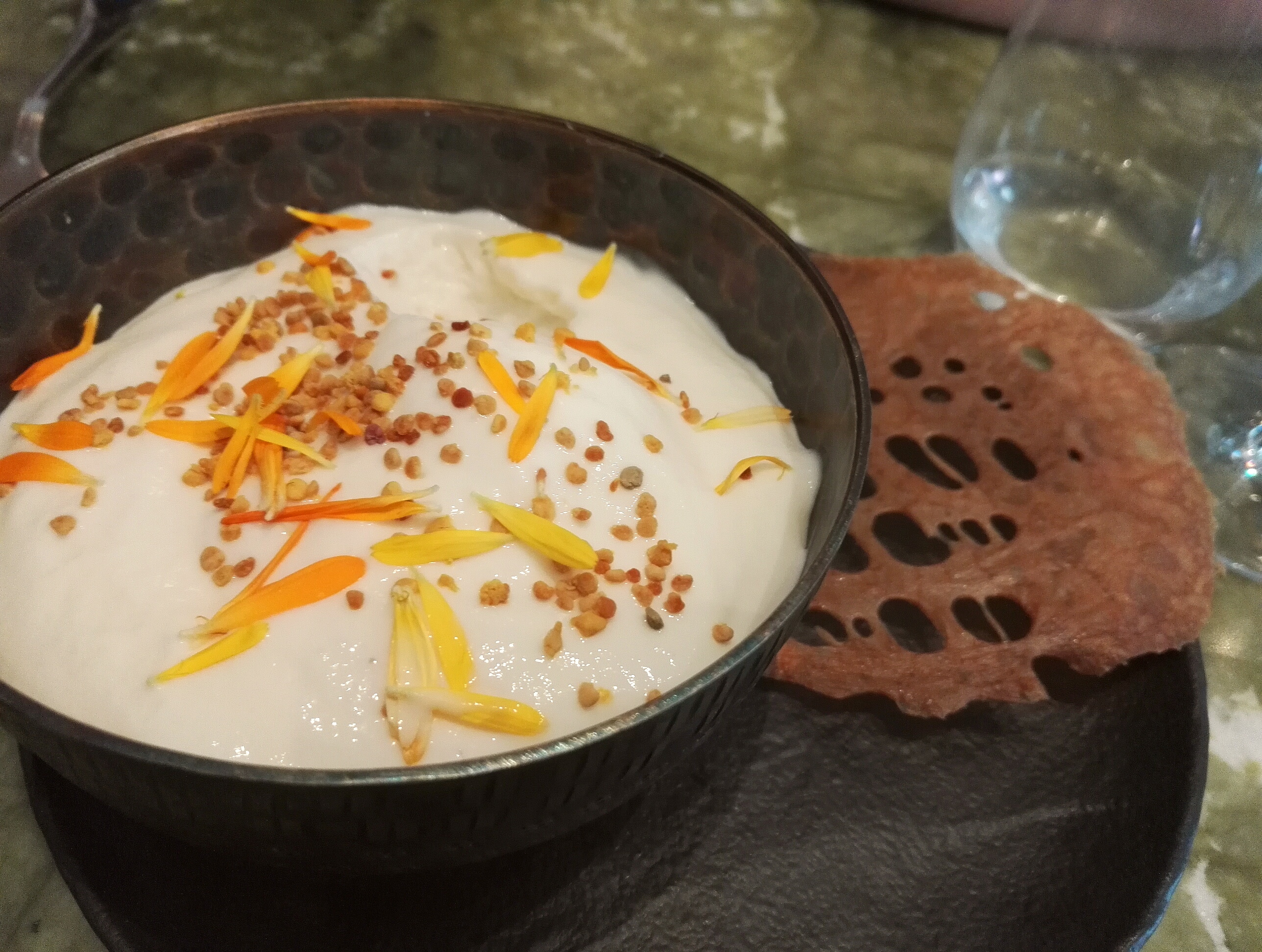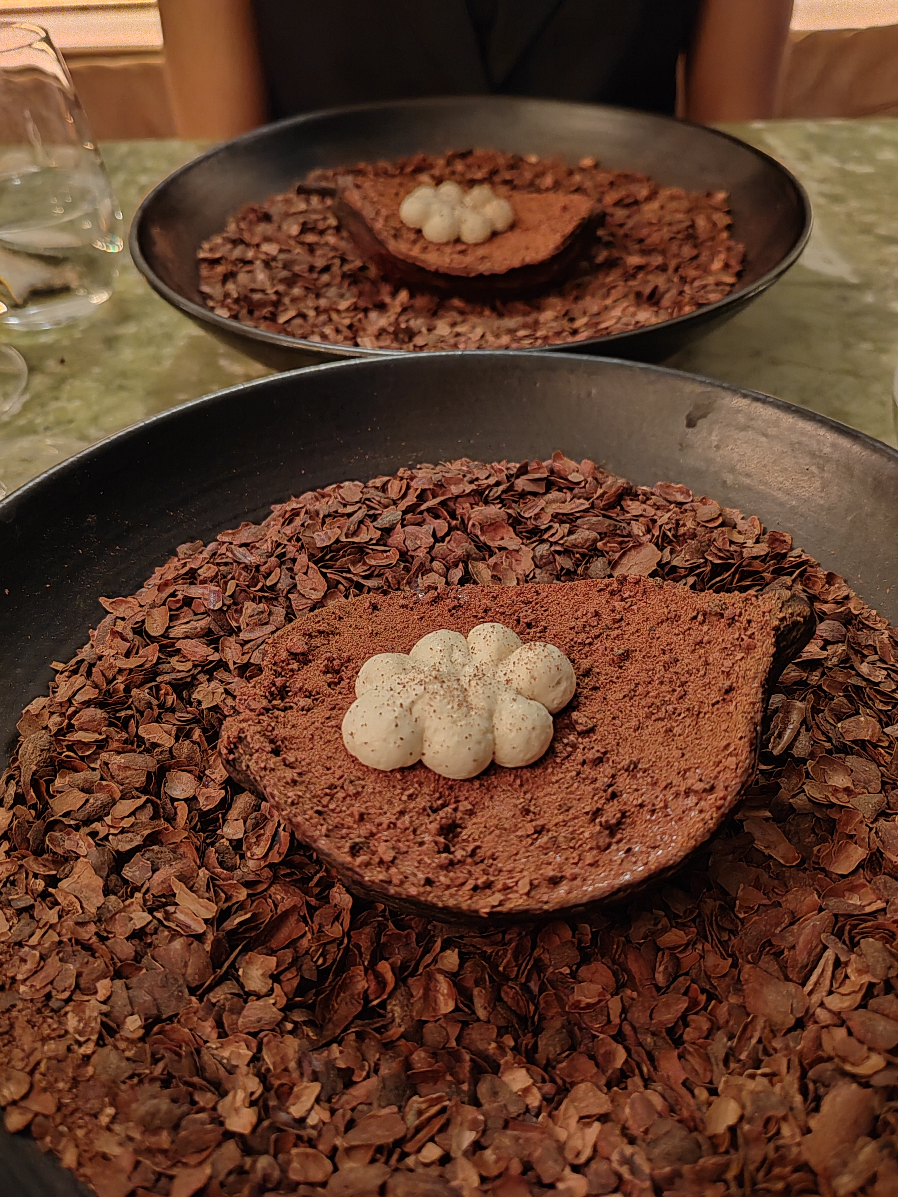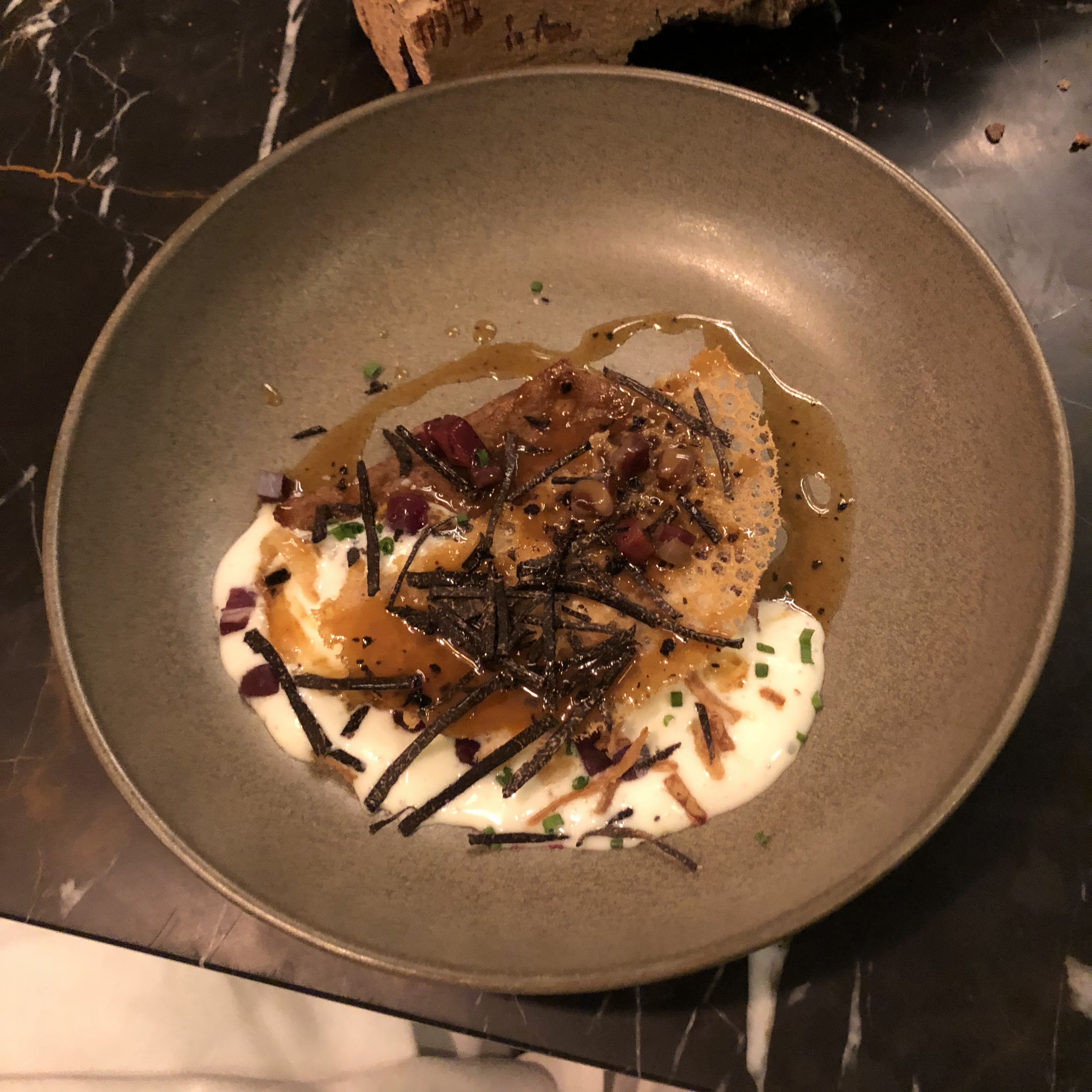 Une cuisine savoureuse, contrastée (bien sûr !) et tout en équilibres subtils. De l'acide, du piquant, du fumé, tout y est ! Coup de cœur pour les œufs de l'entrée, et pour le dessert tout chocolat avec un twist surprenant.