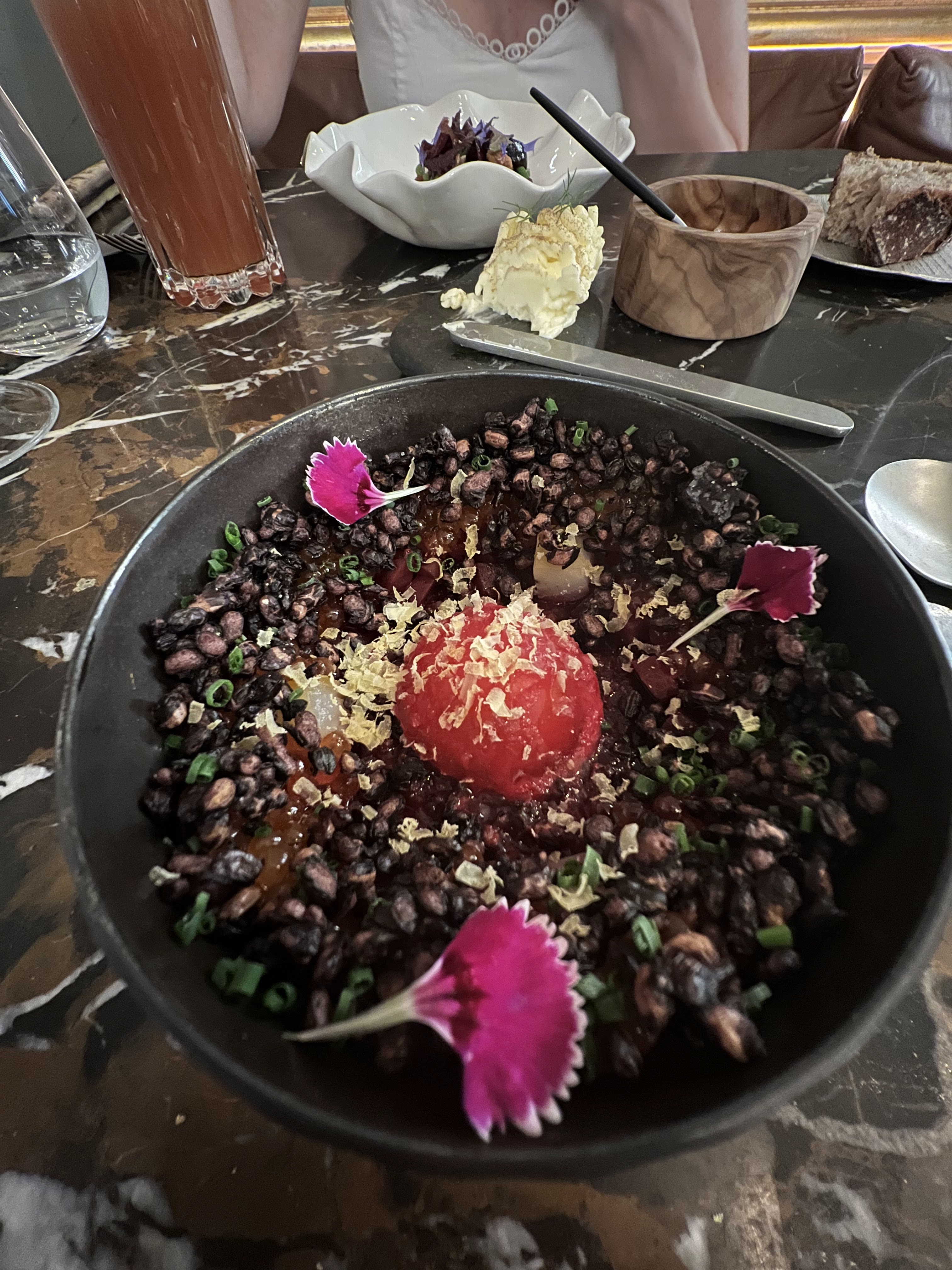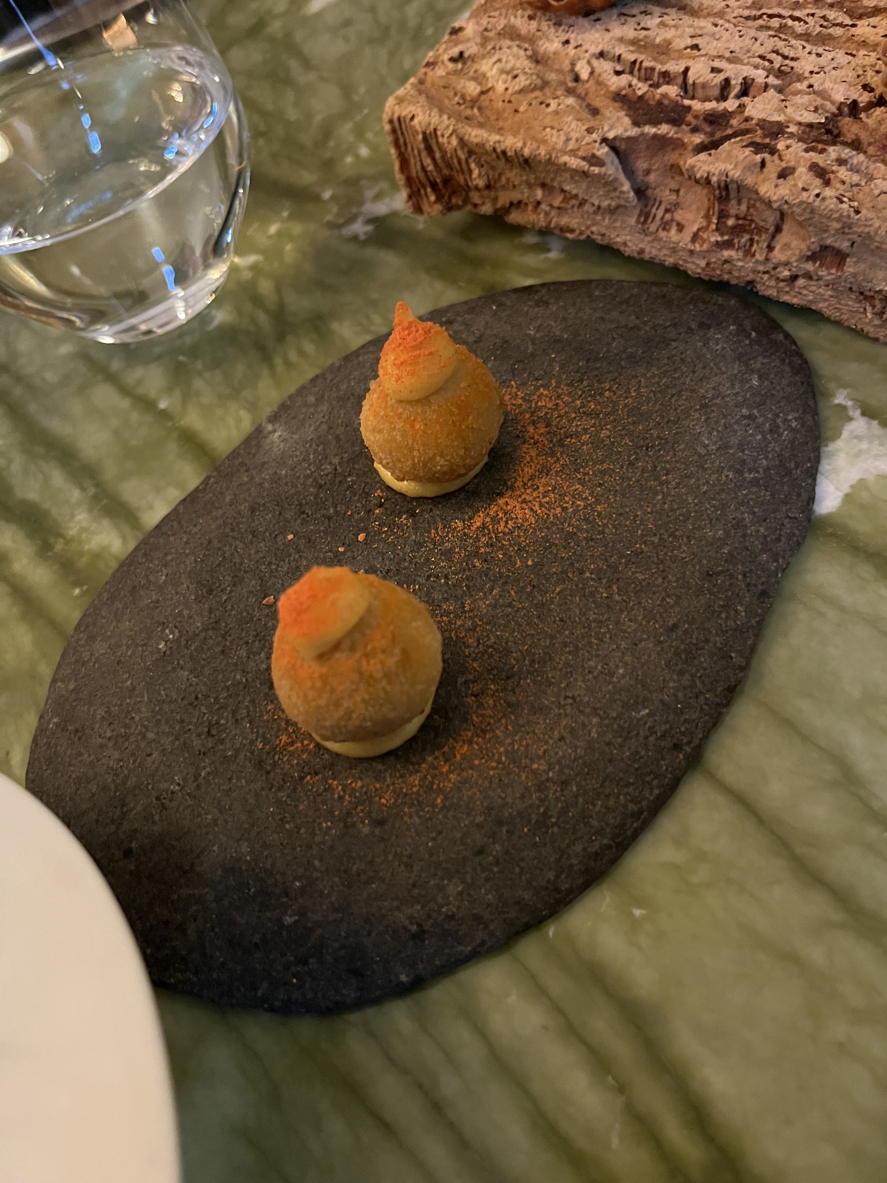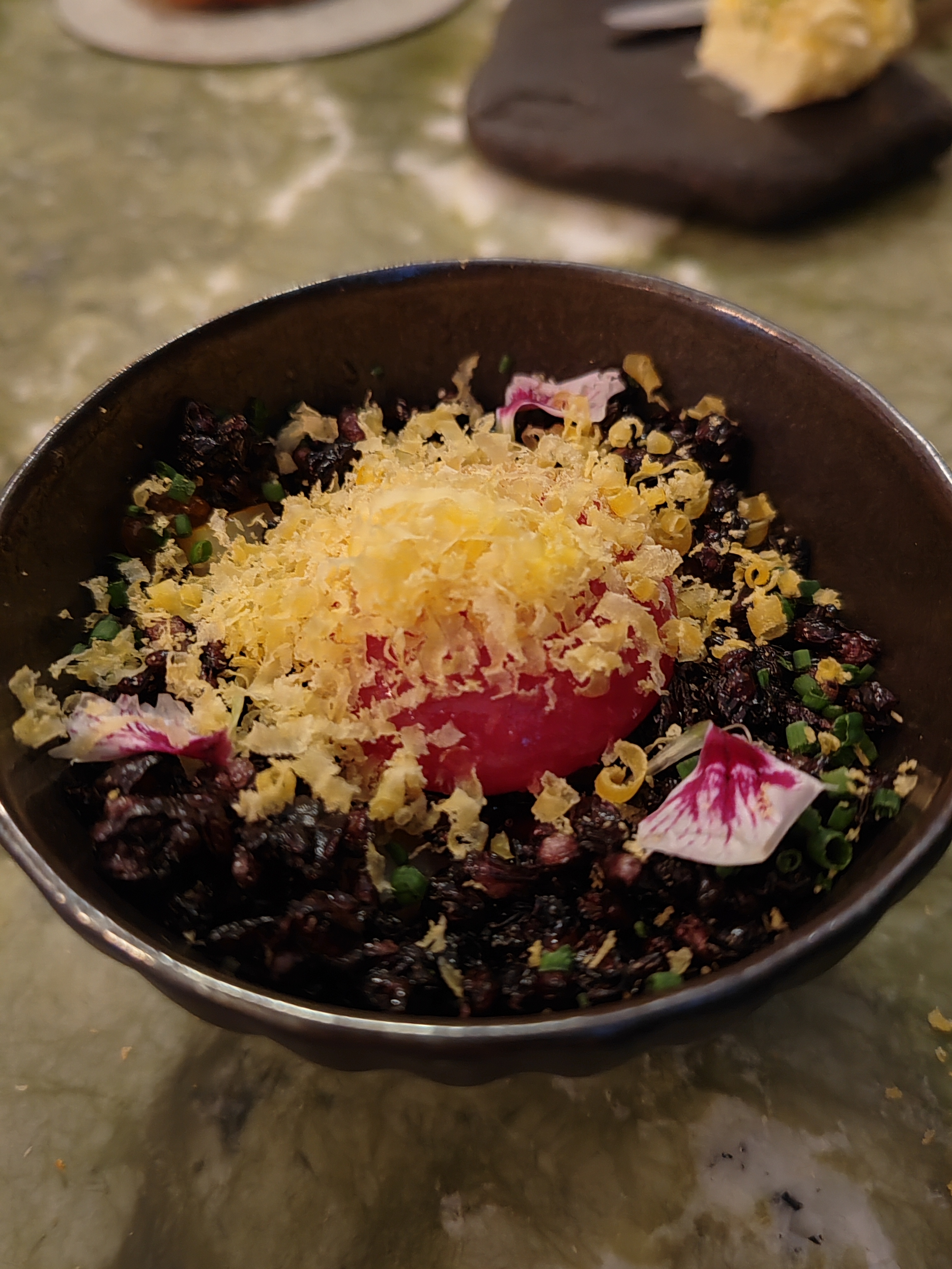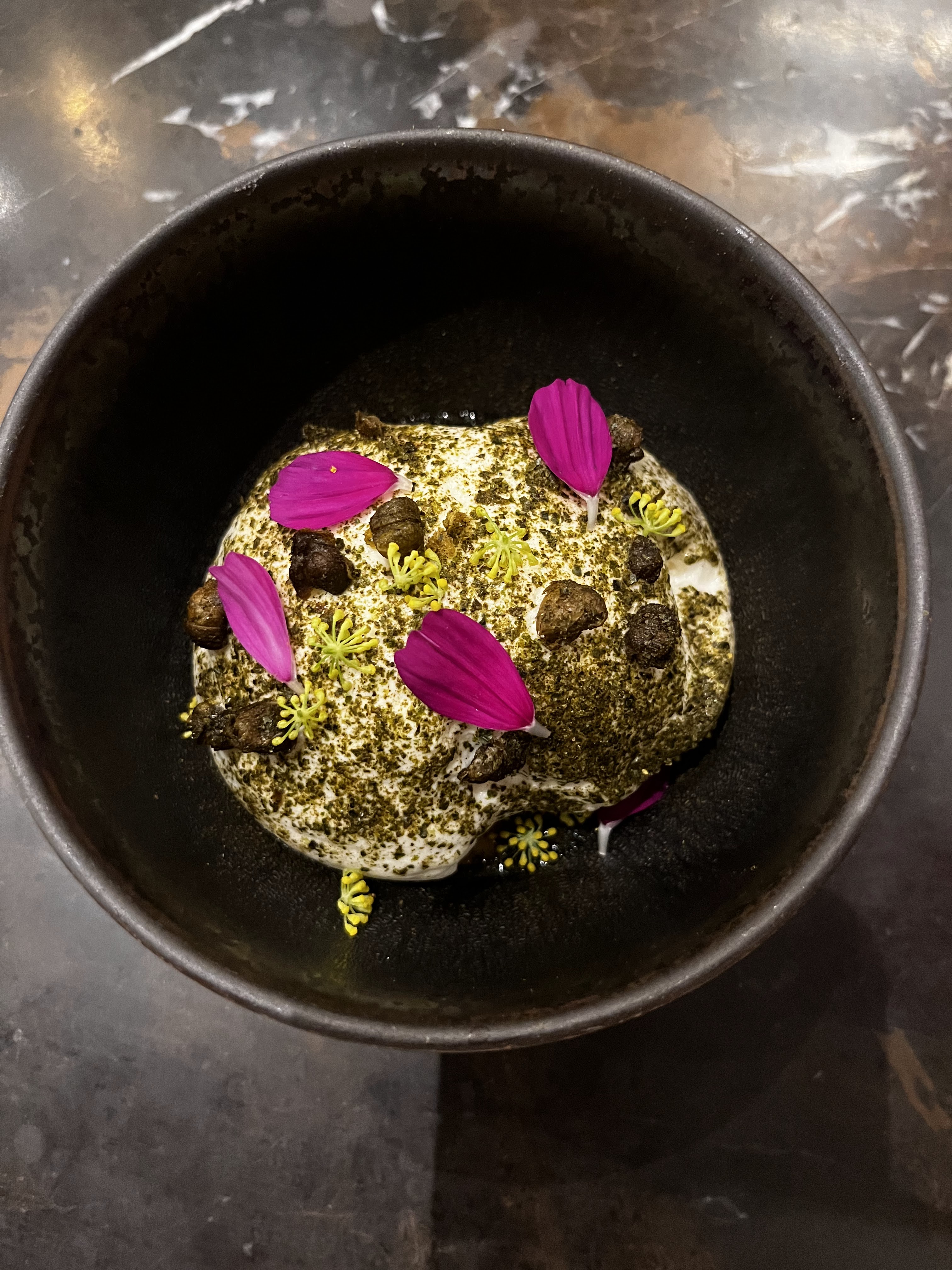 Une cuisine savoureuse, contrastée (bien sûr !) et tout en équilibres subtils. De l'acide, du piquant, du fumé, tout y est ! Coup de cœur pour les œufs de l'entrée, et pour le dessert tout chocolat avec un twist surprenant.