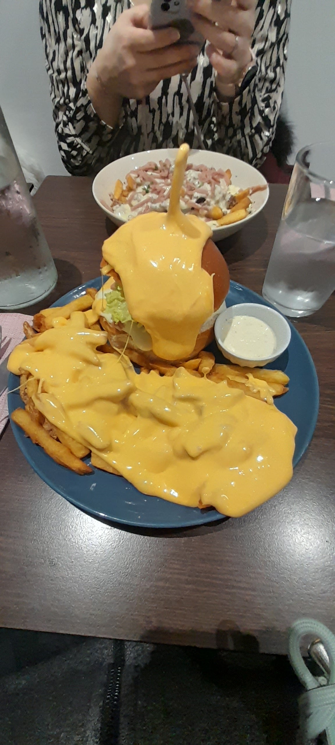 Encore a table en ce moment je n'ai pas pu m'empêcher de prendre mon téléphone pour mettre un avis! 😆 Burger incroyable avec ses frites maisons et son cheddar fondue! Si je veux être tatillon je dirais peut-être que les frites était légèrement trop cuite mais ça n'enlève en rien la qualité du plat qui était incroyable !! Je n'ai pas encore goûter de dessert mais ce seras a emporter pour moi pour cette fois 🤣🤣 Très très bon accueil,rien a redire, je recommande totalement les yeux fermés vous ne serais pas déçu(e)s!