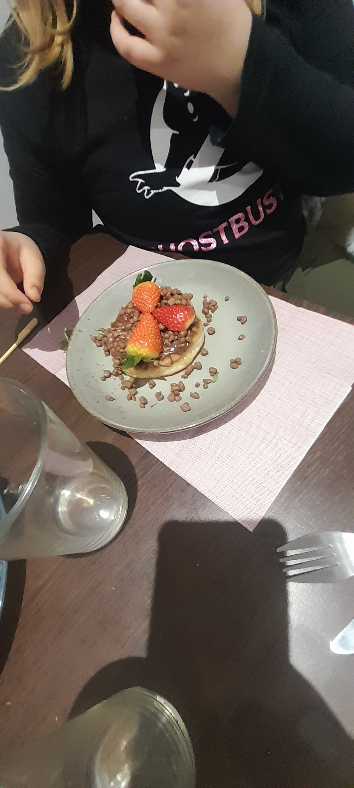 Repas copieux, très bon. Les menus enfants parfaits, les tenders sont d'une excellence! Concernant les desserts j'ai opté pour les pancake tower, une tuerie et très très très copieux on a pu manger le dessert à 4. Je recommande +++. Personnels très professionnels.