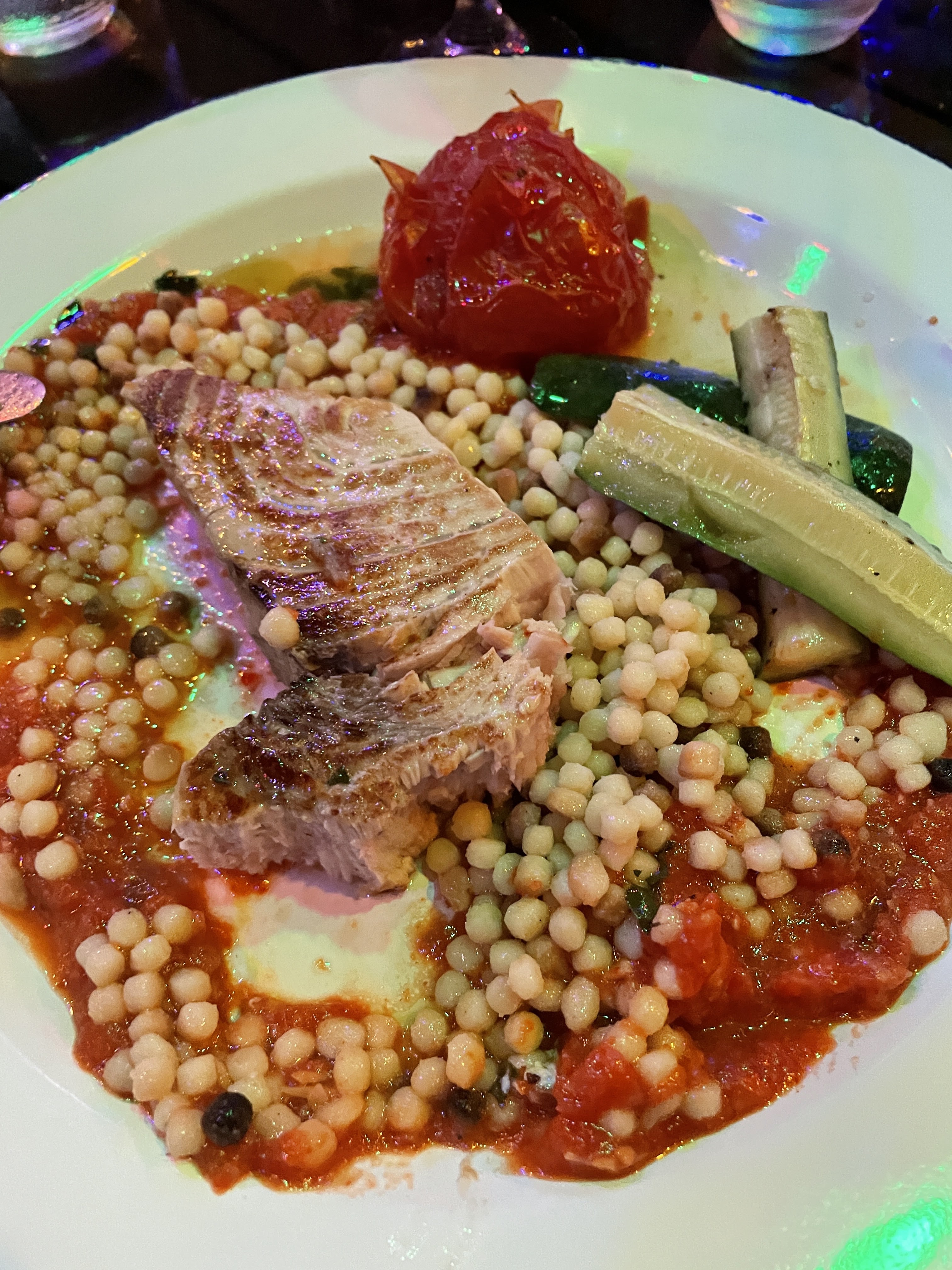 Ce restaurant dans un jardin était un vrai délice ! Le cadre était incroyablement charmant (mais oui, portez et apportez un anti-moustique !) et l'hôtesse était très sympathique et gentille et nous parlait un anglais merveilleux et traduisait le menu. Notre nourriture était parfaite - j'ai mangé beaucoup de fruits de mer lors de ce voyage dans des restaurants plus chics et celui-ci se démarque comme le poisson le mieux cuit que j'ai mangé. Je ne suis pas vraiment un amateur de desserts, mais notre groupe a partagé les deux desserts proposés et ils étaient tous les deux extraordinaires. Mon repas préféré lors d'un voyage d'une semaine dans la région et un excellent rapport qualité-prix également.