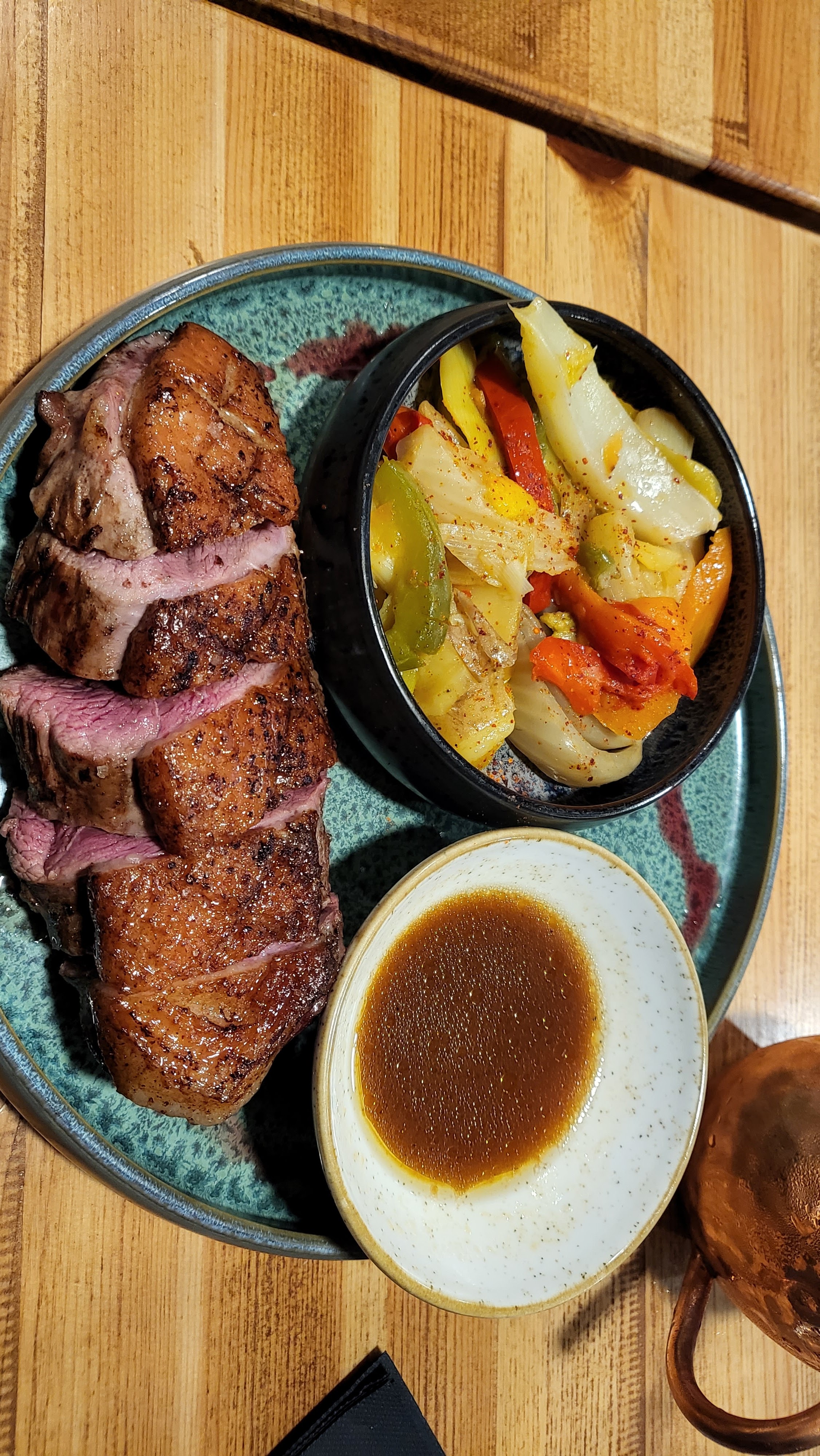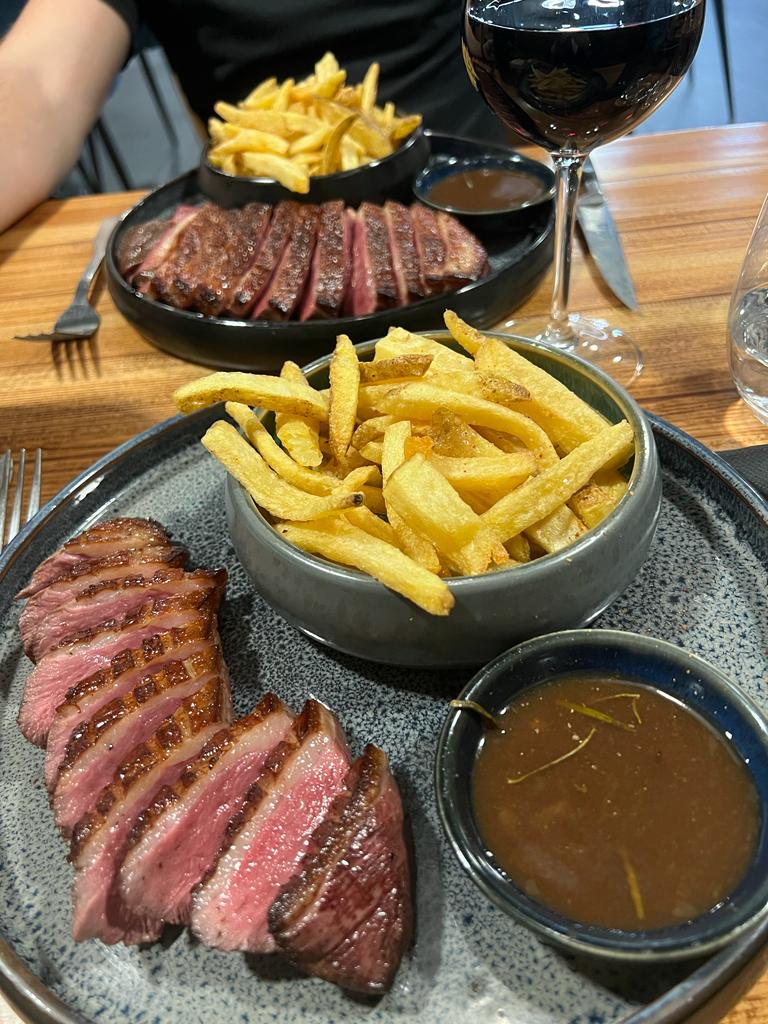 Un magret de canard exceptionnel ! Peau parfaitement saisie et une cuisson parfaite. Un beau choix de vin et de cocktail pour accompagner !