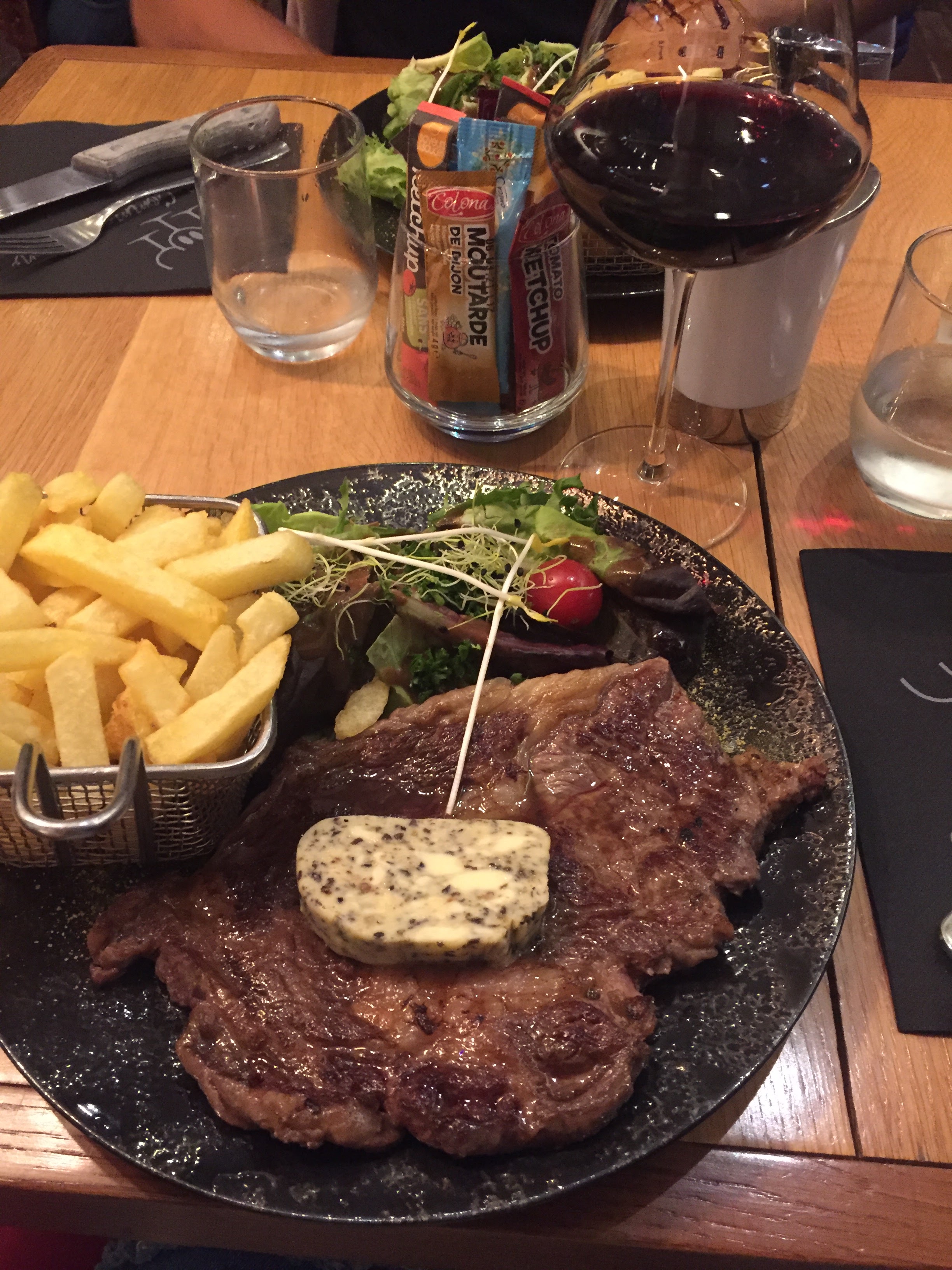Serveur très sympa ! Bonne entrecôte et bon vin rouge 👍🏻