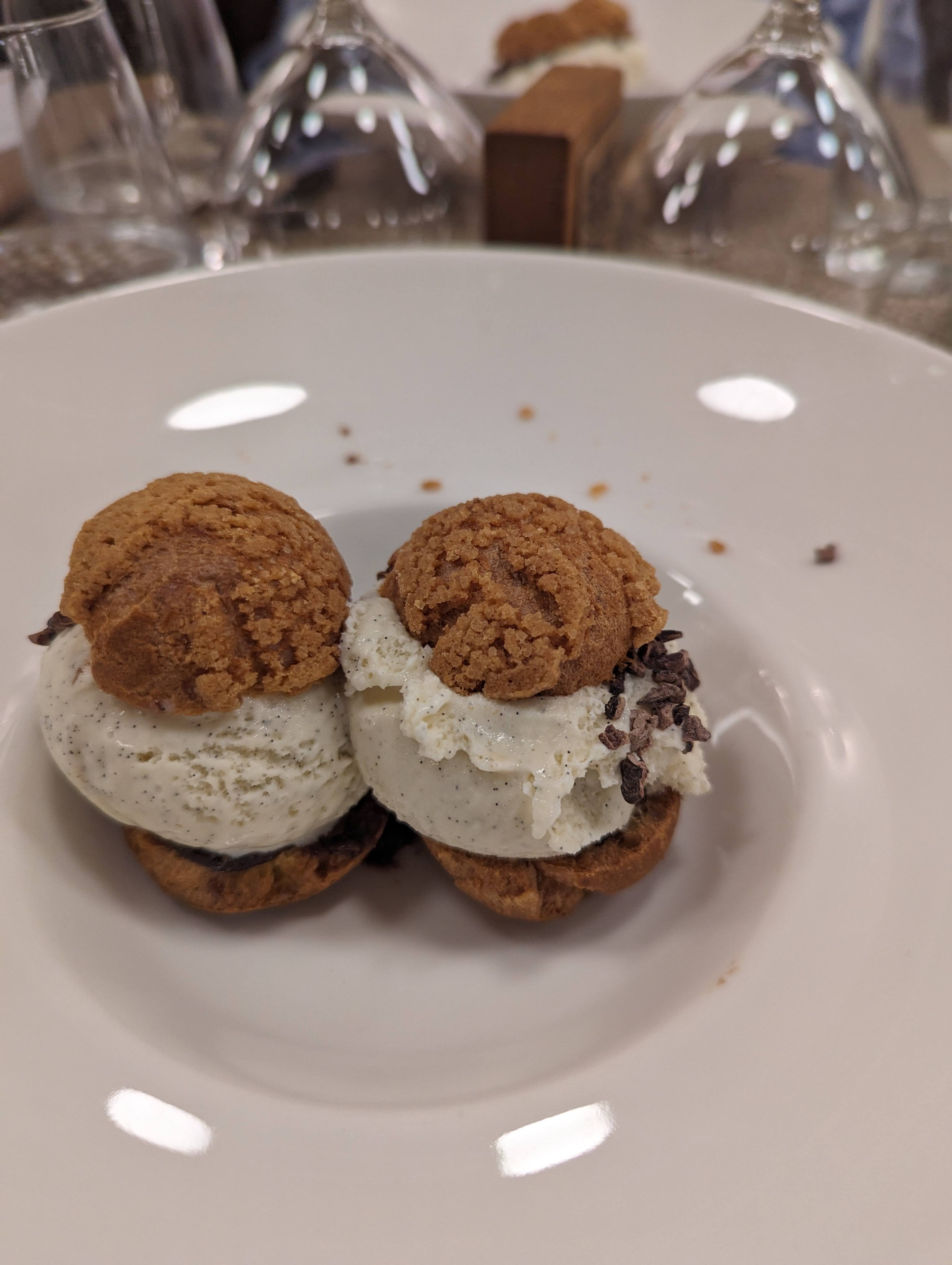 Nous avons eu la chance d'avoir une table juste au passage sans reserver - merci les vacances scholaires et les ski. 😀 Le repas etait tout simplement parfait. Les seiches - un melange des saveurs, parfums et couleurs incroyables, texture douce du mais est un plus. Les profiteroles sans blague les meilleurs que j'ai jamais mangé- avec de la glace a l'intérieur et du vrai coulis de chocolat....