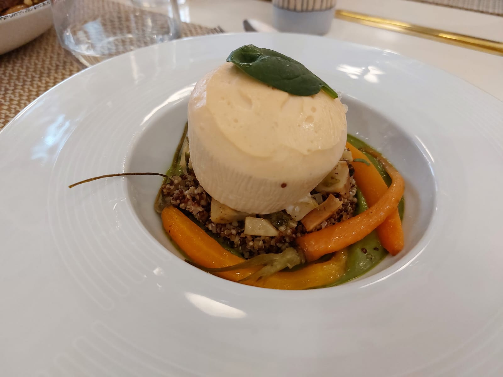 cuisine raffinée mais sans maniérisme. tout a été délicieux, entrée , plat et dessert service prévenant et gentil je recommande chaudement ce restaurant