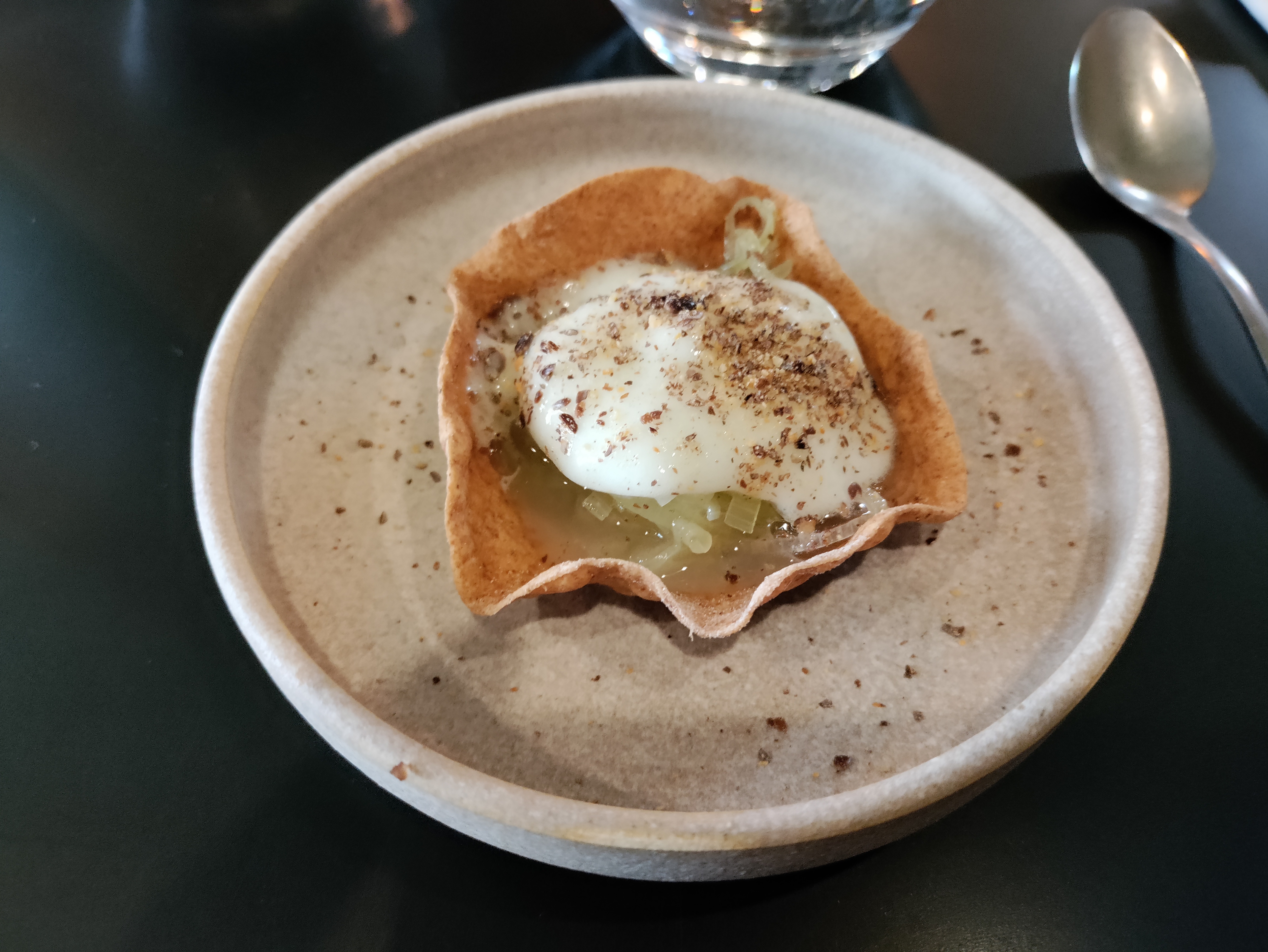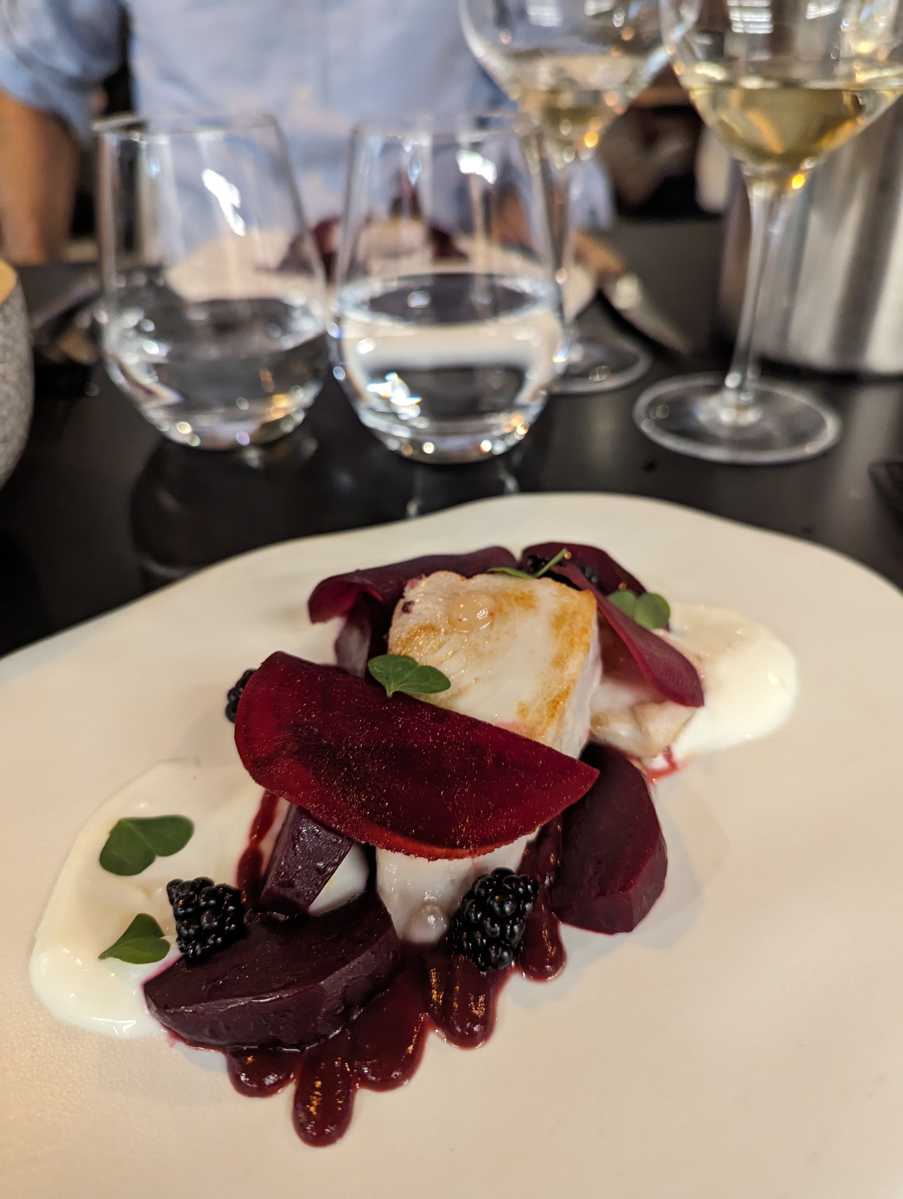 Nous avons dîné ici hier soir. Il s'agissait d'un menu découverte de 4 ou 6 plats avec des options d'accords mets et vins, ce qui signifie que vous ne savez pas ce que vous obtiendrez (ils vous demandent si vous avez des allergies avant que le chef ne cuisine). Tous les cours étaient vraiment charmants avec une touche de surprise ou un élément de surprise. La serveuse gère pratiquement les lieux seule avec beaucoup de connaissances et de patience. Dans l'ensemble, c'est un beau petit endroit pour manger, et ce sera l'endroit qu'il vous faut si vous avez envie de découvrir vos saveurs.