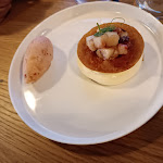 Excellent accueil, 9 euros le verre de vin, pas un pti truc à grignoter à l'apéro, plats jolis, pas grand chose à manger. Concernant le thon mi-cuit, compotée de poivrons, épices et mangue rôtie : poivrons rouges + 4 épices et carotte rôtie = que du sucre en bouche ! Le thon a été complètement effacé, aucun équilibre de saveurs, très déçue. Concernant le bar rôti, girolles, fèves et coques : 2 minuscules morceaux de girolles... 2 verres de vin + 2 plats pour 64 euros ? 1 fois mais pas 2, merci. On est rentrés à la maison on s'est mangé un plateau de fromages avec une bonne bouteille et une coupe de glaces, seul moyen de bien finir le repas.