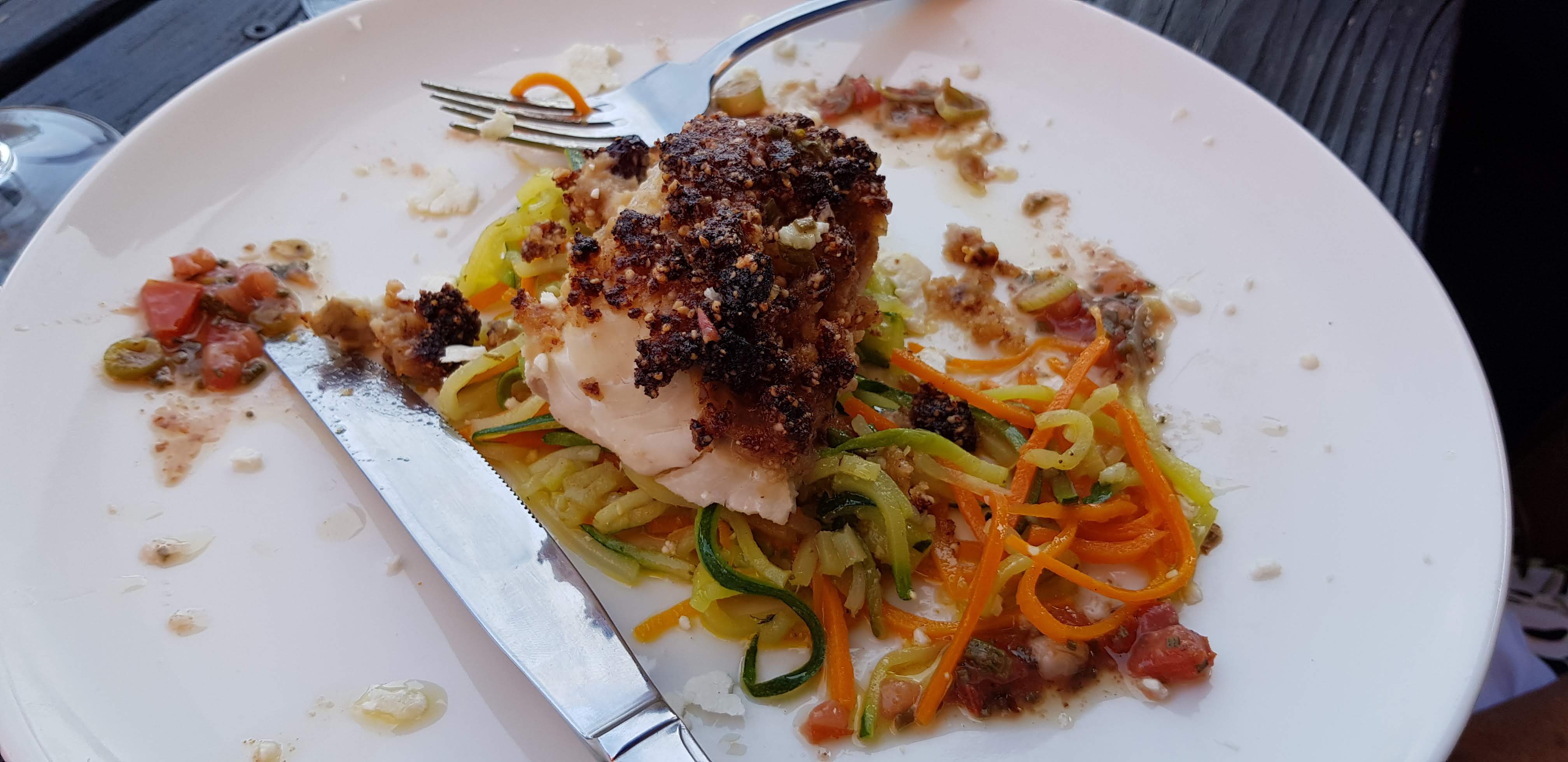 Plat super bon ! J'ai testé la lotte frottée aux épices et le pain perdu, un plaisir régressif. Il manquait un peu de soleil mais largement compensé par la gentillesse de la serveuse 😉