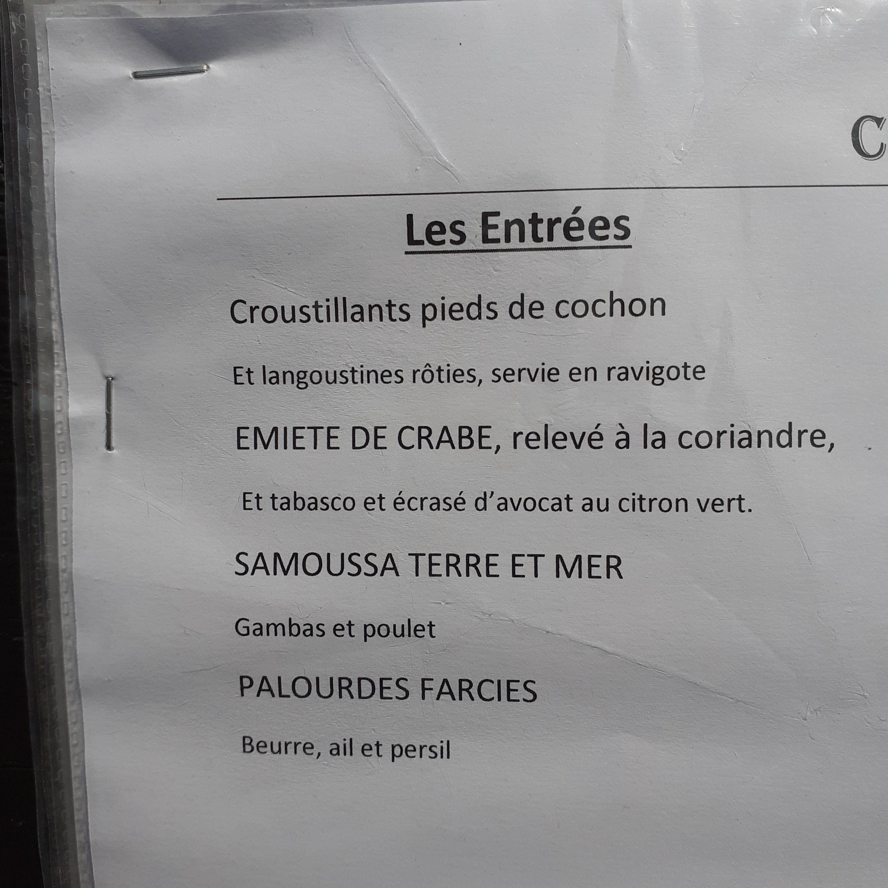 Decue, Très cher, rien à manger ( les entrées tiennent dans un cuillère à soupe) C est affiché frites maison or ce sont des frites surgelées tout comme le crabe industriel d ailleurs vendu 26€ Avec un mayo industrielle