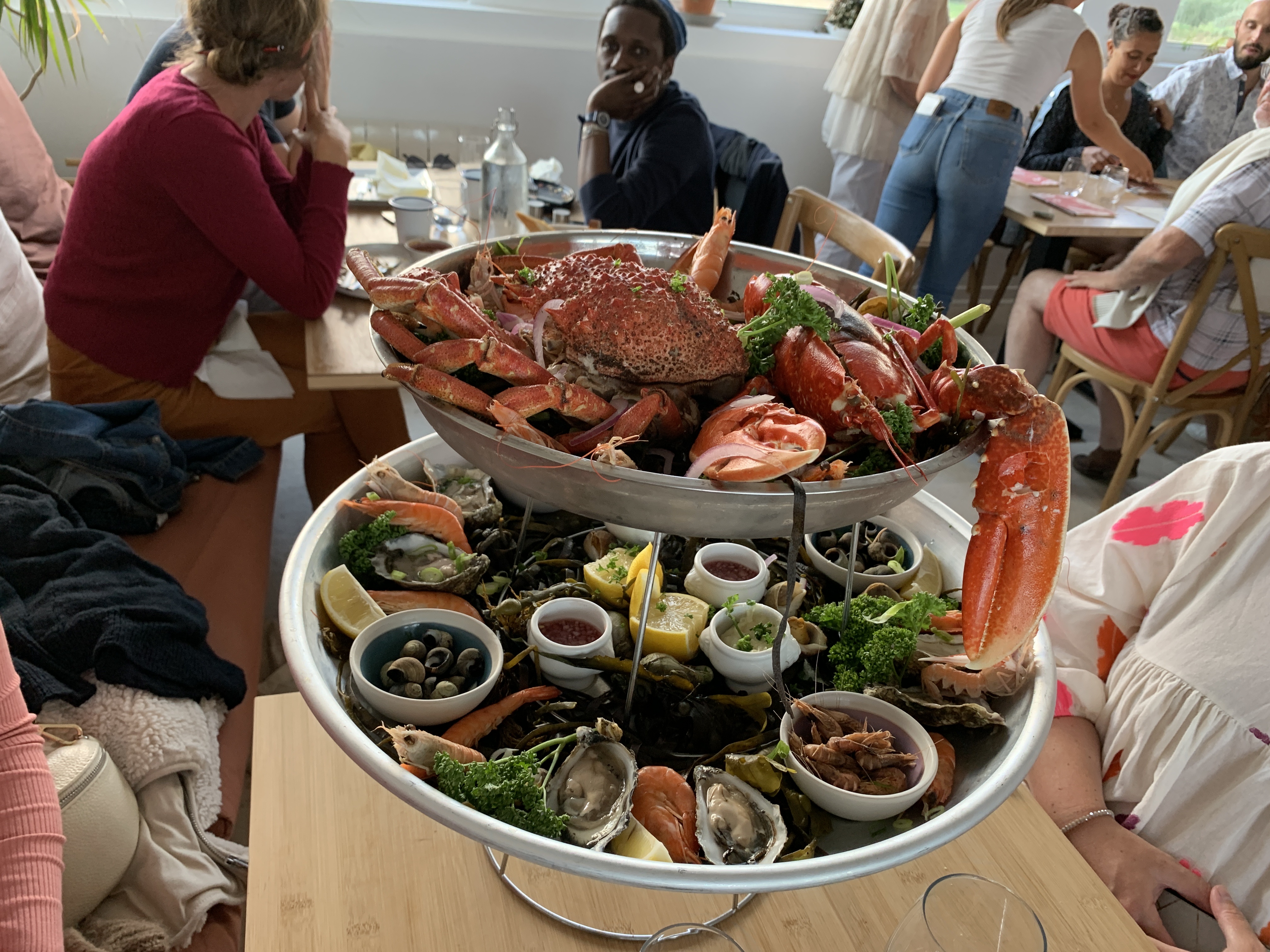 L’expérience globale était tout à fait correcte… il y a un énorme potentiel, mais il manque quelques points. Goût: 2/5 - le menu propose une sélection décente, mais dans l'ensemble, certains ingrédients n'avaient pas un goût frais. Quelques assiettes que nous avions jetées, les huîtres étaient encore sales, les entrées devaient être assaisonnées un peu plus, les huîtres elles-mêmes n'étaient pas les meilleures, les entrées étaient tout simplement correctes et les desserts étaient les meilleurs de tous. Nous avons eu une bouteille de vin en compensation, ce qui était bien. Nous aurions aimé qu'il y ait des bavoirs pour le royal de fruits de mer. Ambiance : 5/5 - nous étions assis à l'intérieur et avions une vue sur les champs et l'océan. Dans l’ensemble, c’est probablement l’un des meilleurs sièges que j’ai eu avec des décorations bien placées. Le service était également exceptionnel et les serveuses étaient toujours souriantes. Prix: 2/5 - pour la nourriture que nous avons eue, c'était plus cher, ce qui semble normal pour un restaurant de plage. Cependant, la qualité des ingrédients n'était pas au rendez-vous, ce qui se voit au goût.