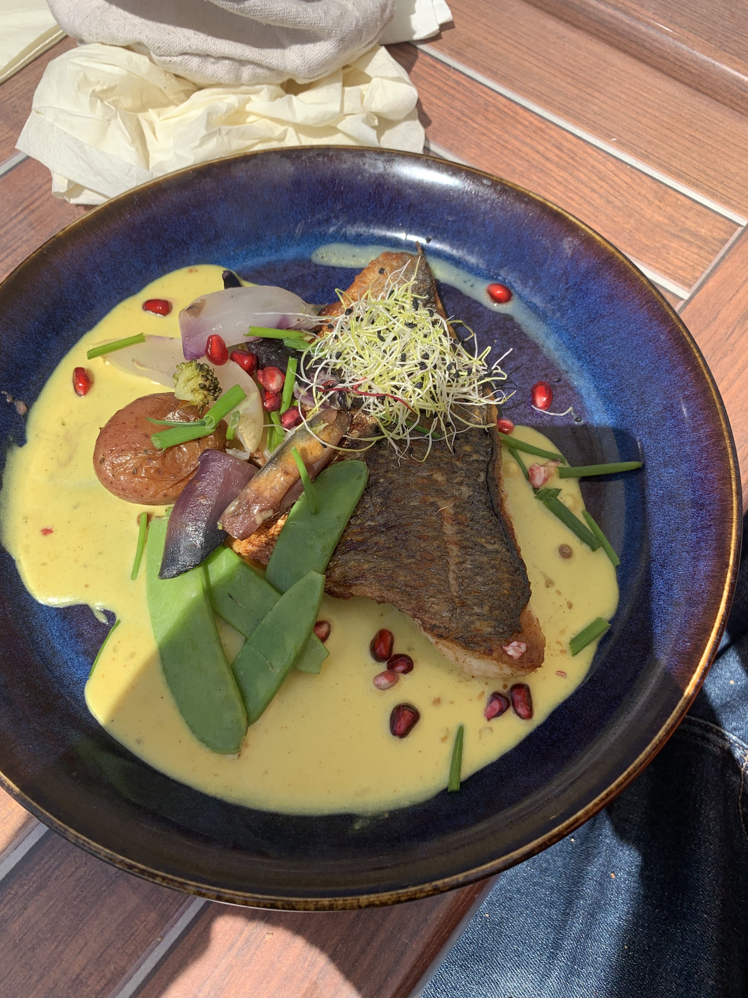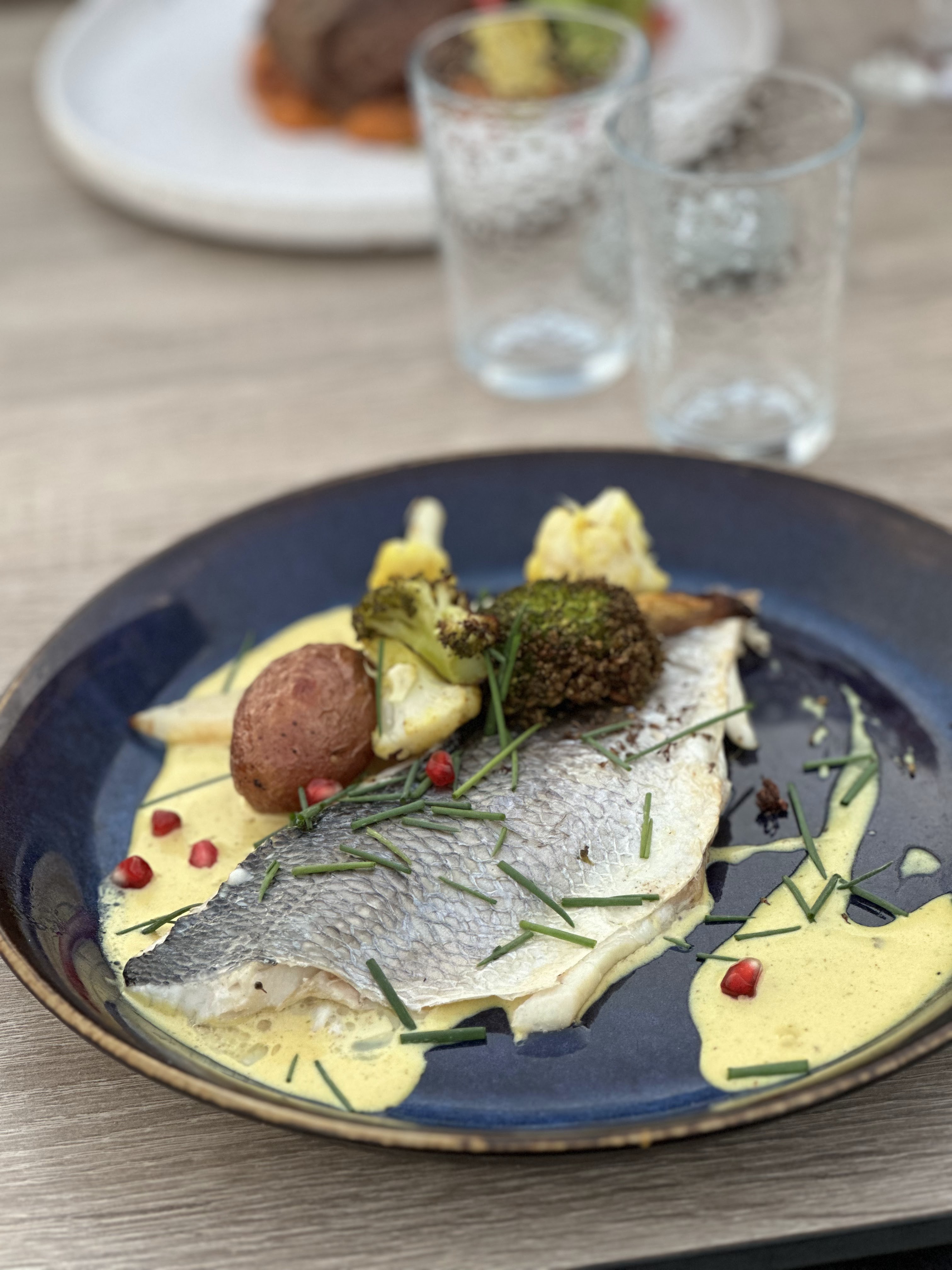 Bel emplacement avec vue sur la mer depuis la terrasse et l'intérieur. Bon service et nourriture excellente, principalement du poisson et des fruits de mer, mais suffisamment pour les non-amateurs de poisson. Très agréable de voir une bonne variété de légumes frais avec le plat principal également. Bon rapport qualité/prix aussi.