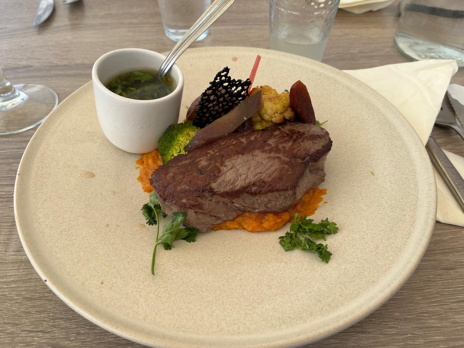 Très bon restaurant un peu déçu par la pièce du boucher mais beaucoup d'originalité dans la saveur des plats. Très belle vue sur la mer