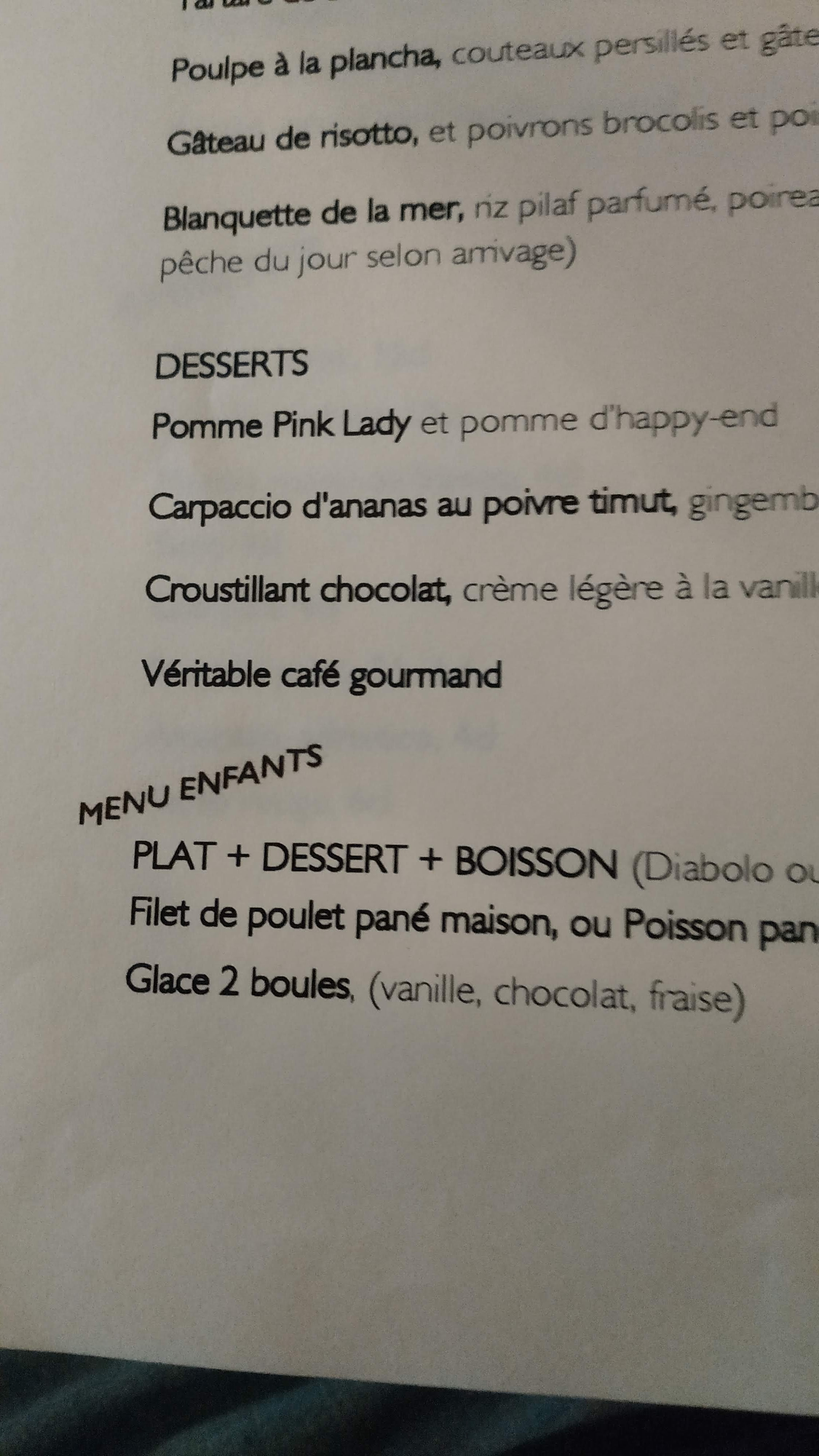 Très bon restaurant avec une vue à couper le souffle Les plats sont soignés, originaux et surtout très bons. Je recommande l’Opera revisité en dessert. Le service était également agréable avec une équipe jeune et sympathique. Je recommande le Corail les yeux fermés. Courage à toute l’équipe pour cette fin de saison. A bientôt Nicolas