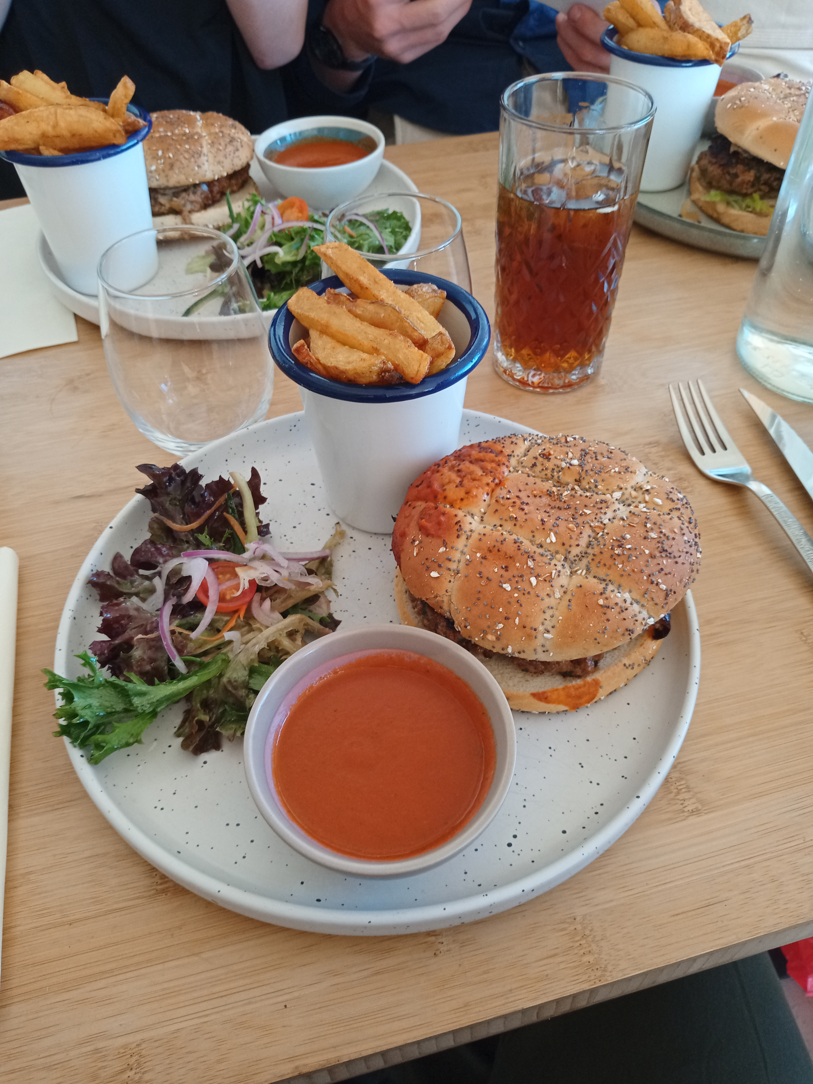 Très bon ( pris le burger breton) vu sublime sur la mer et de l autre côté la campagne. Mention spéciale au chef qui pour le café gourmand nous a fait 2 assiettes différentes. Encore merci