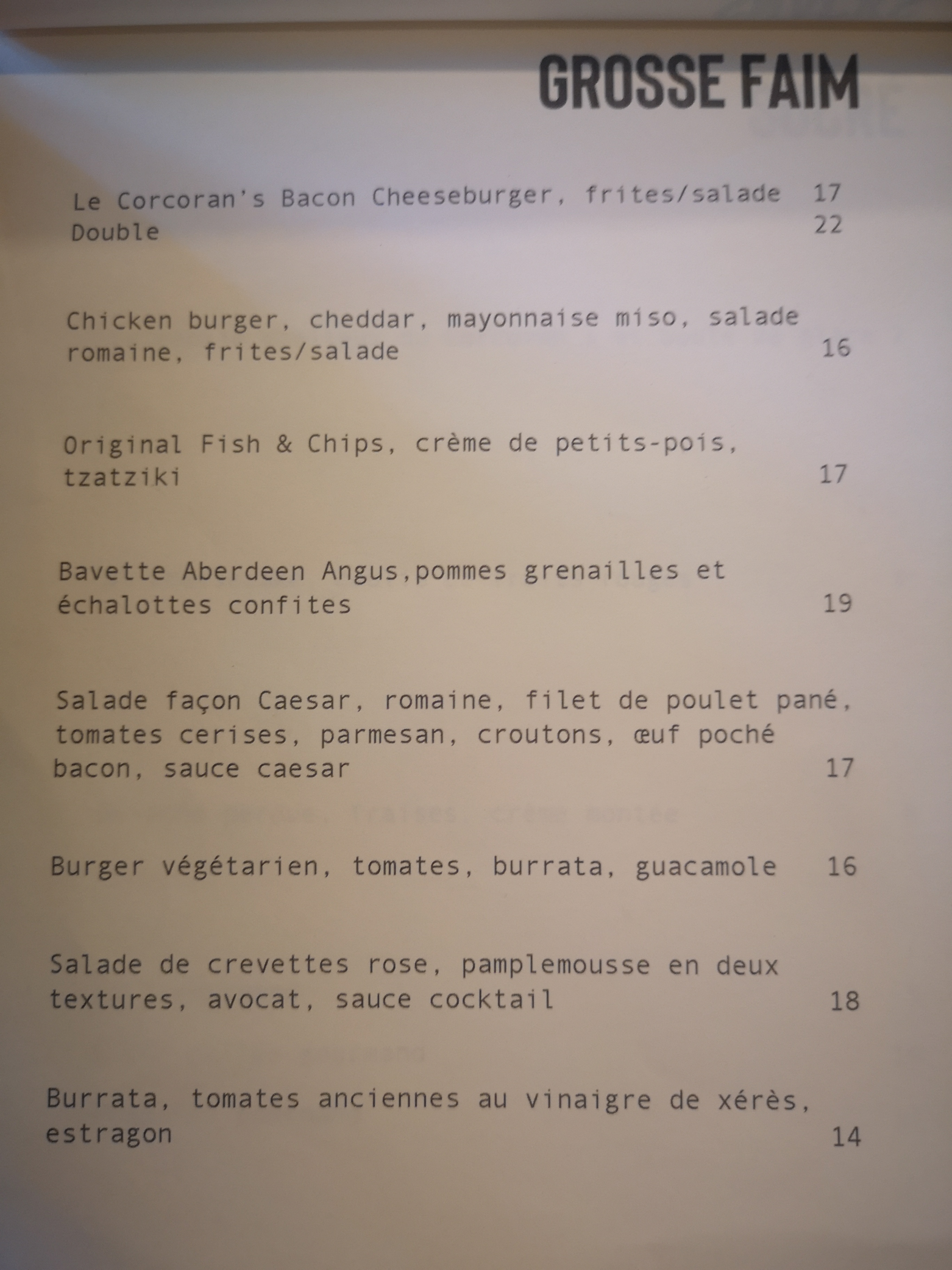 Visite pour le déjeuner. L'accueil est très bon, rapide, souriant. Le restaurant est calme. Les plats, un Fish'n'chips et un Corcoran's bacon cheeseburger sont délicieux, les frites sont très bonnes et généreusement servies. En dessert un cheesecake excellent et un moelleux au chocolat très réussi. Il existe un burger végétarien et c'est un gros point positif. Une très bonne expérience. Seul point un peu moins positif, on pourrait s'attendre à un choix de bières plus étendu dans un pub, mais je pinaille. 👍😁😉