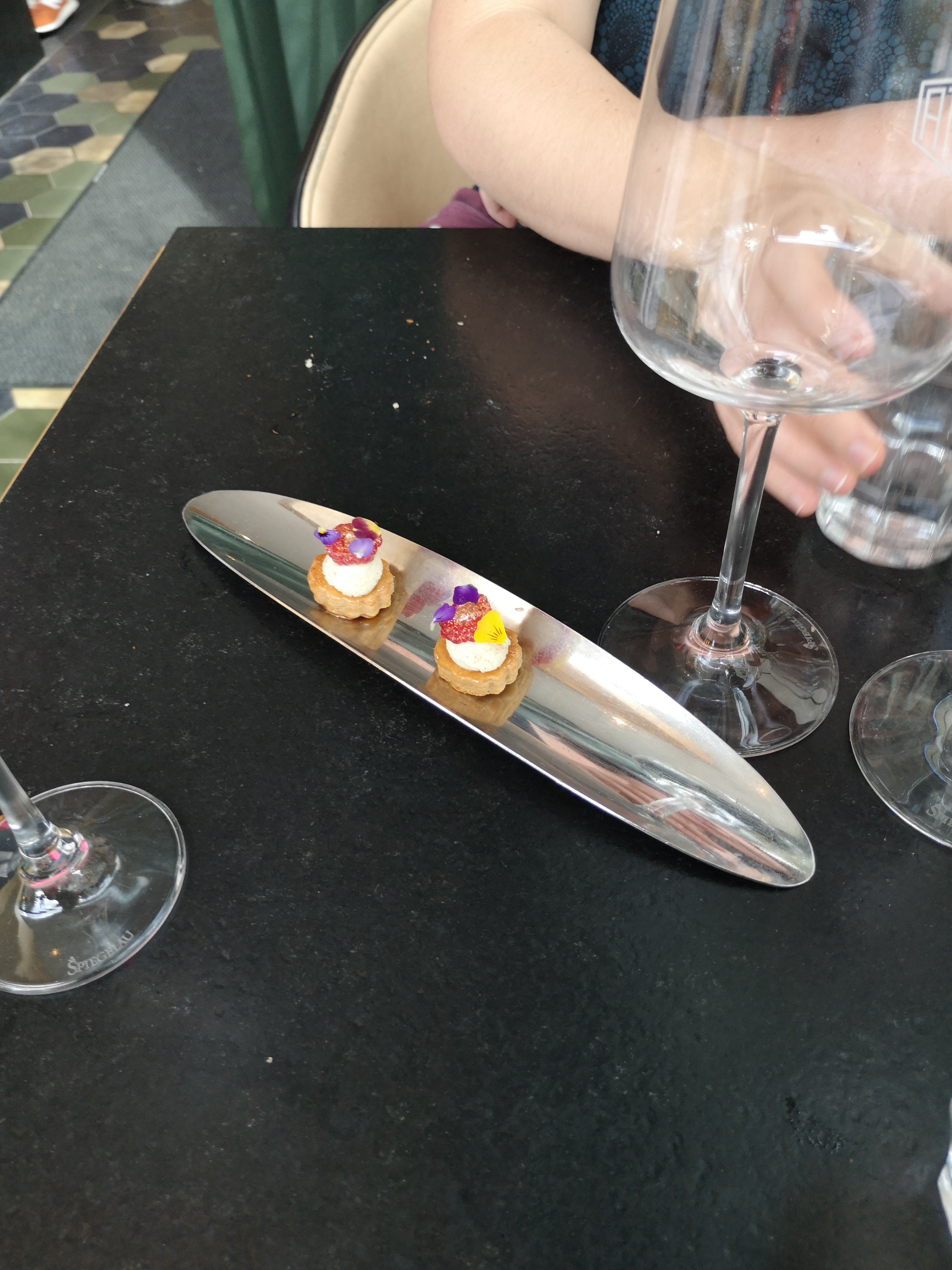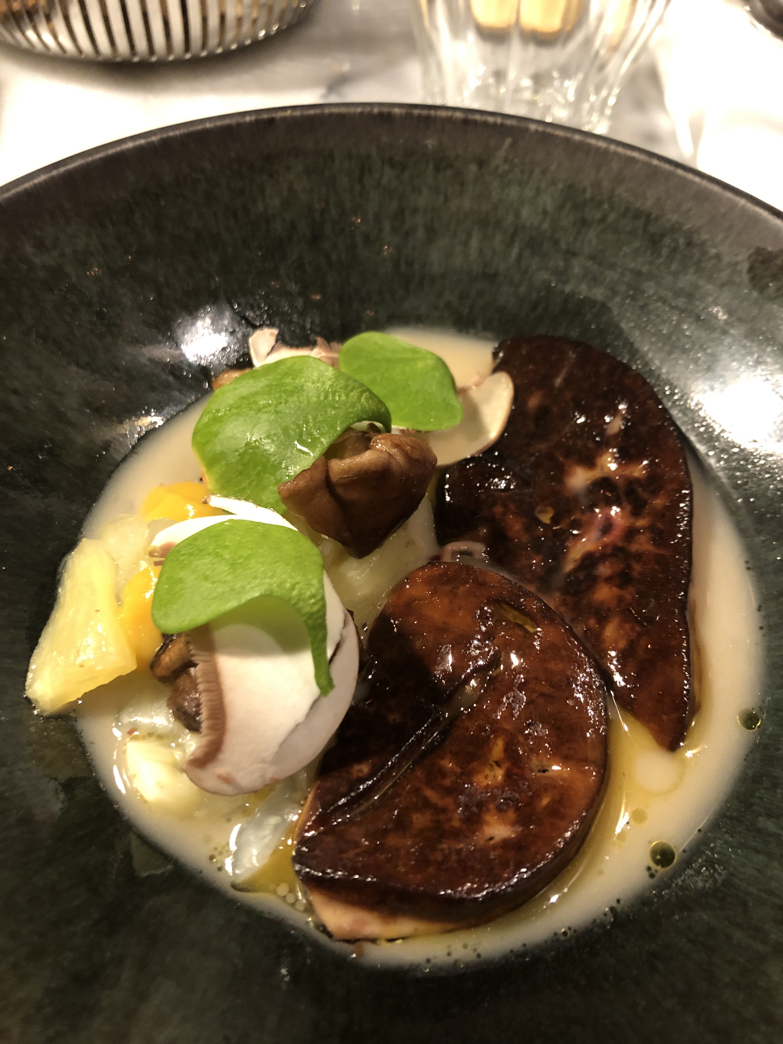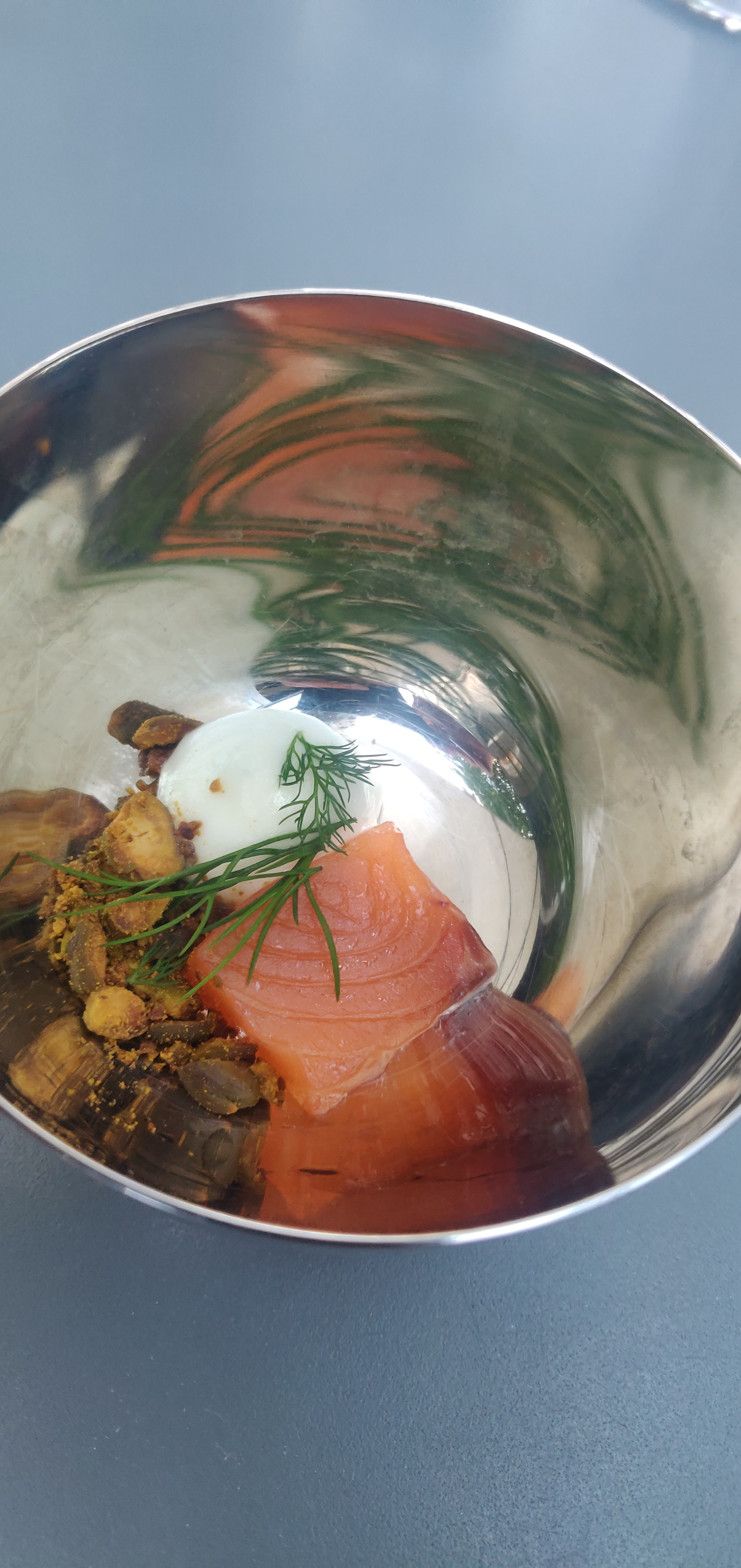 Toujours au top du visuel et créations renouvelées avec mélange gourmand gourmets de saveurs mélangées chef étoilé accueil et lieu chaleureux bravo à toute l équipe juste amuse bouche bienvenue avec Prosecco